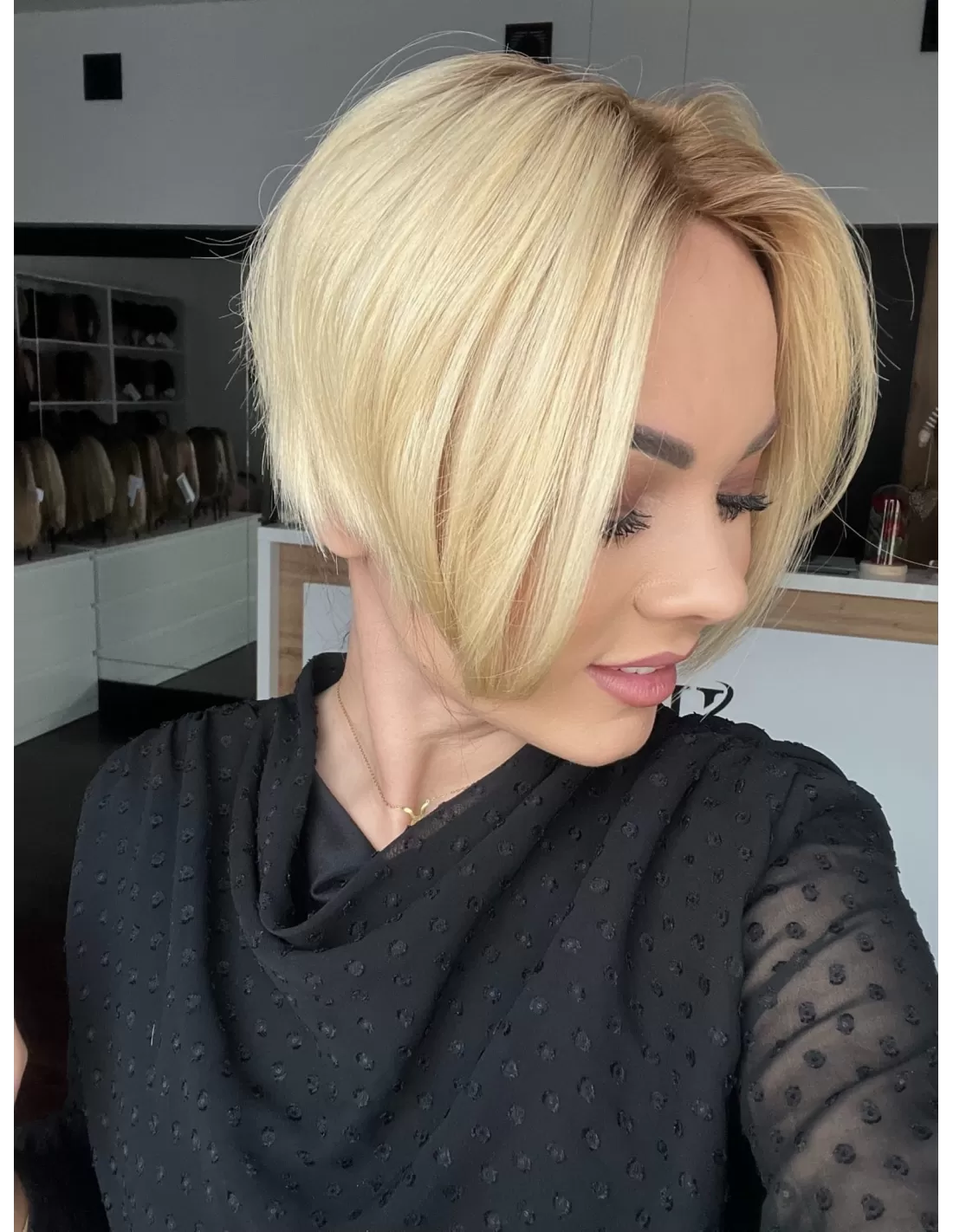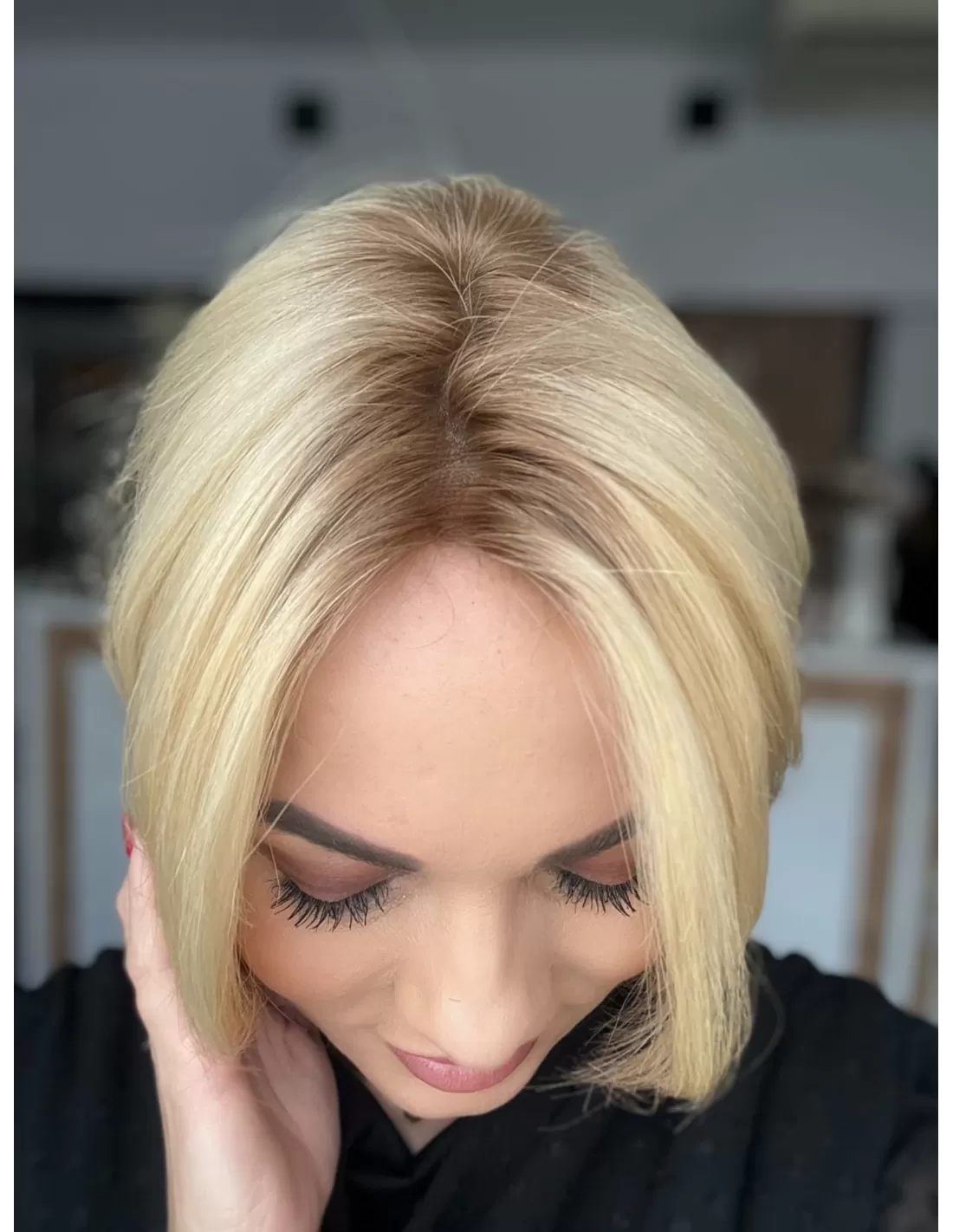 Konstrukcja bazująca na mono: Topper ten wyposażony jest w bazę mono, co oznacza, że włosy są ręcznie tkane do delikatnej siateczki, co zapewnia doskonałe naturalne wykończenie. Mono baza jest niezwykle delikatna dla skóry głowy i zapewnia efekt "scalp-like", co sprawia, że toper jest trudny do odróżnienia od własnych włosów.
