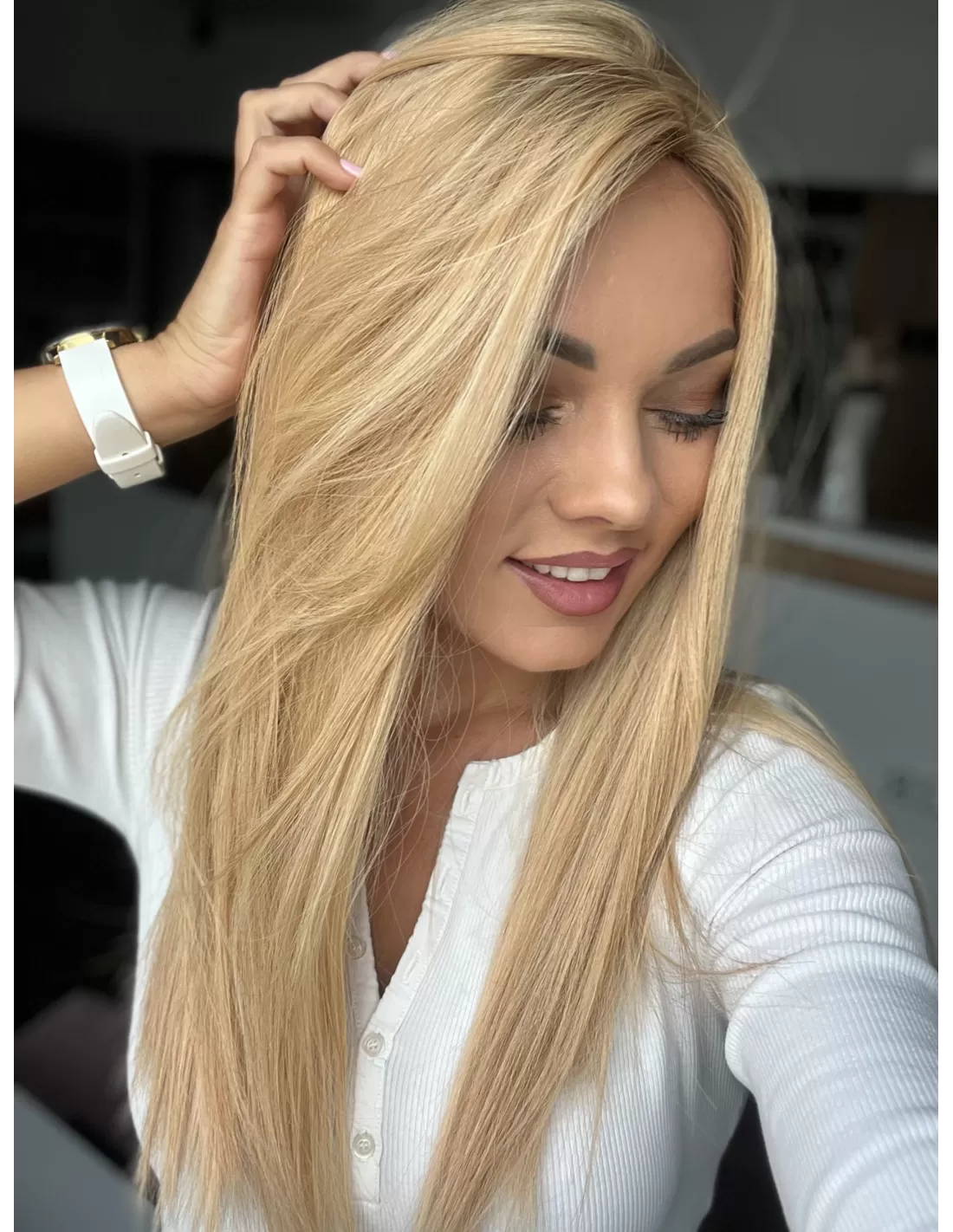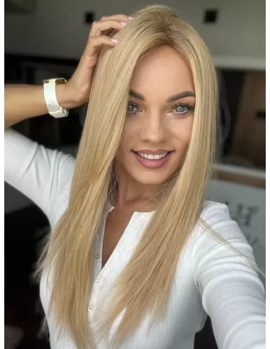 Peruka z włosów naturalnych Sheila – słoneczny blond z odrostem 50 cm