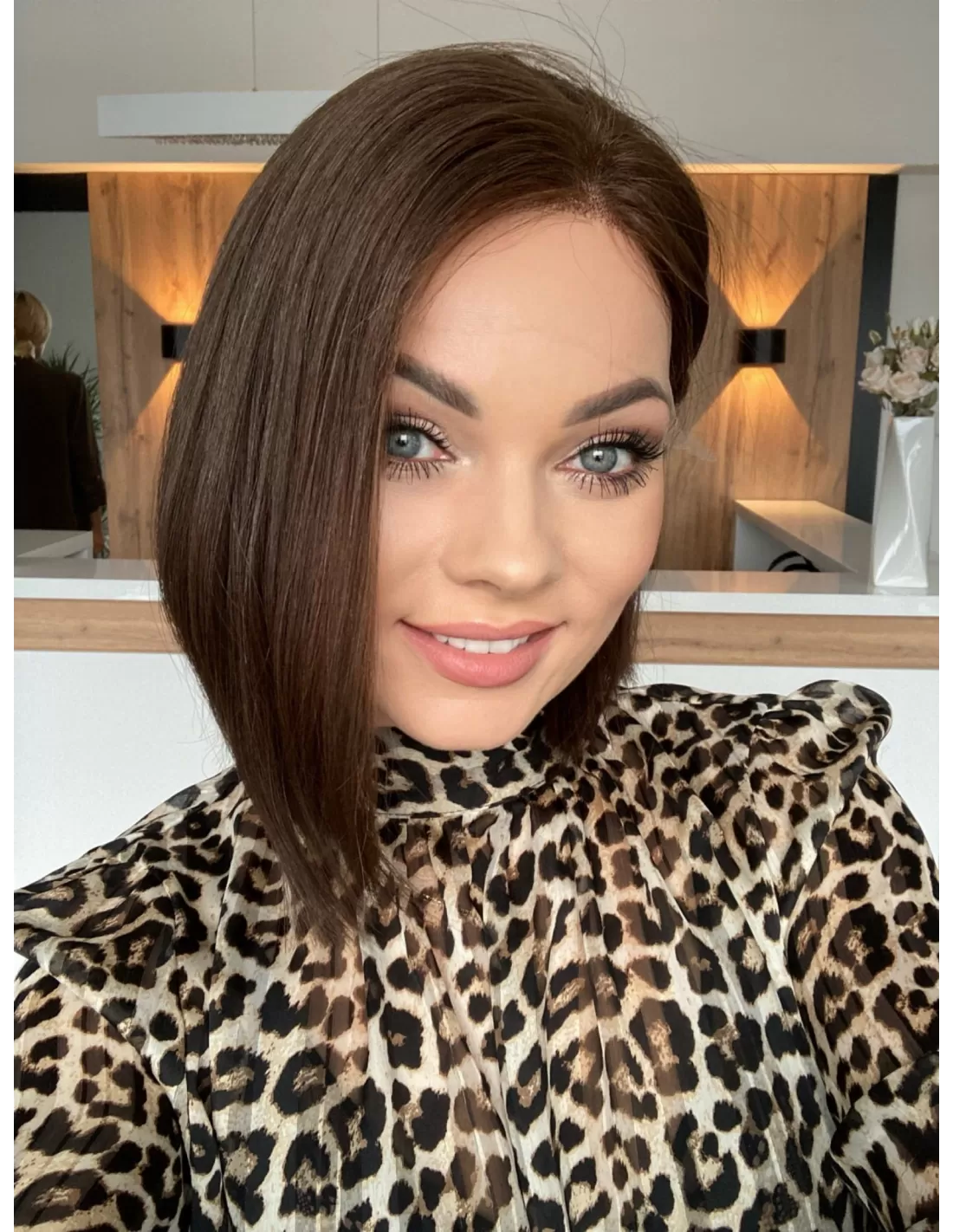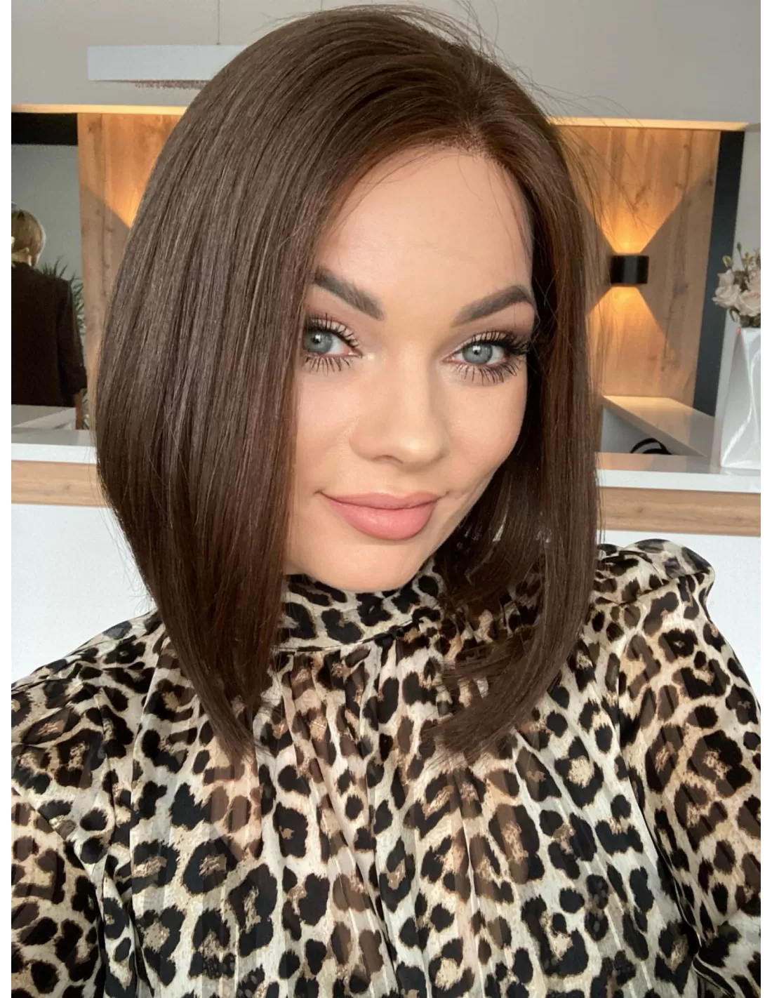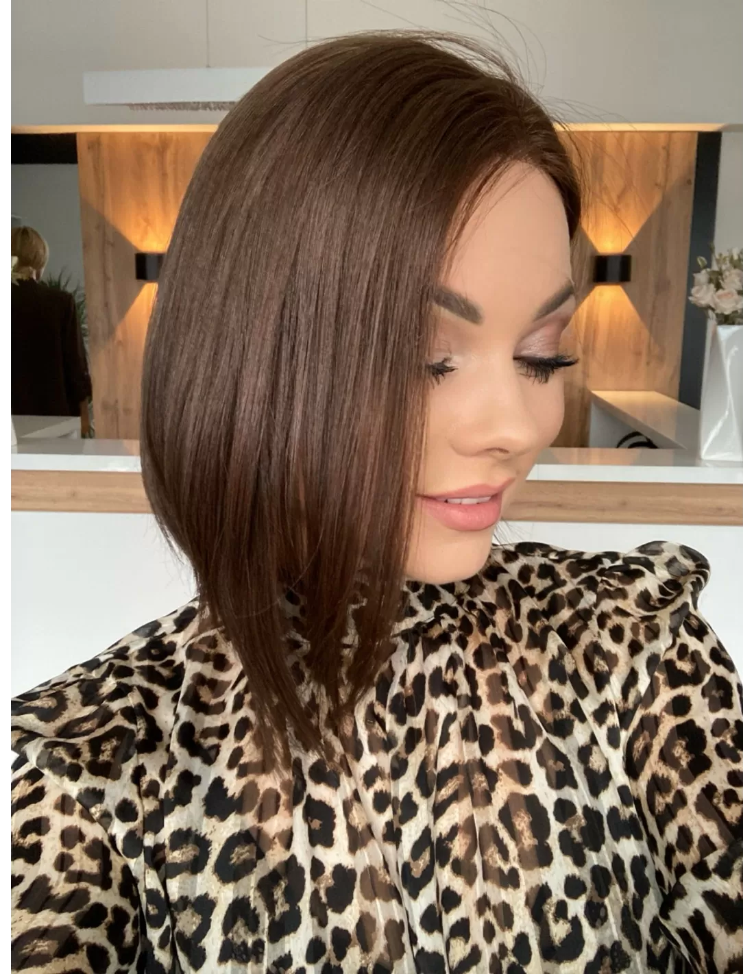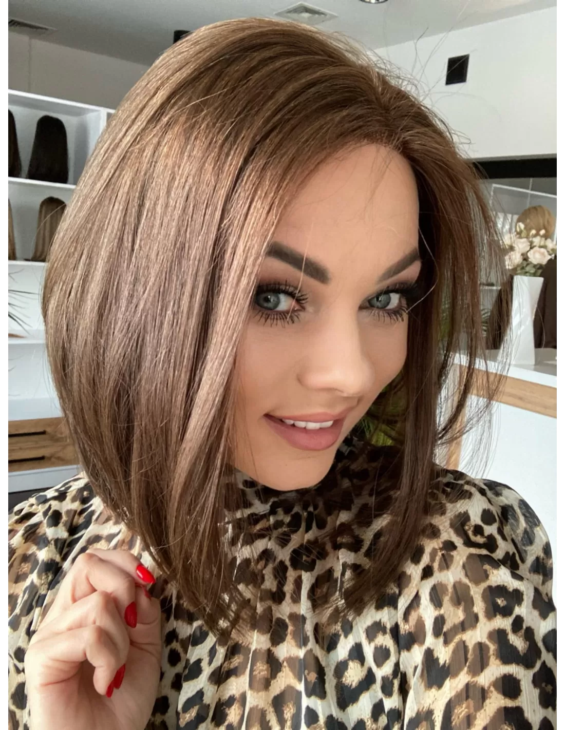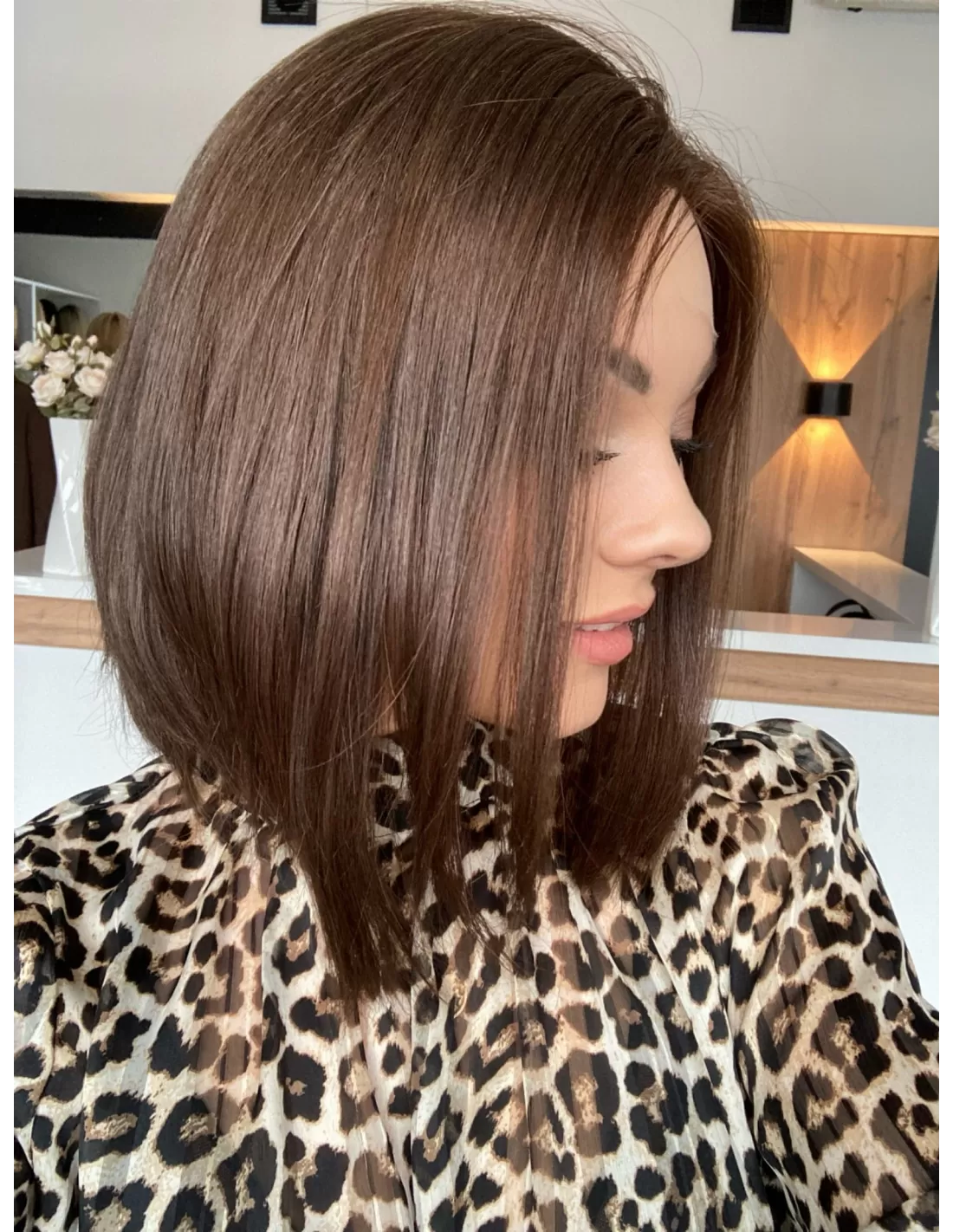 Peruka z włosów naturalnych w kolorze średniego ciepłego brązu to doskonałe połączenie subtelności i elegancji. Jej miękkie, płynne kosmyki emanują naturalnym blaskiem, nadając Twojej stylizacji wyjątkowego uroku.