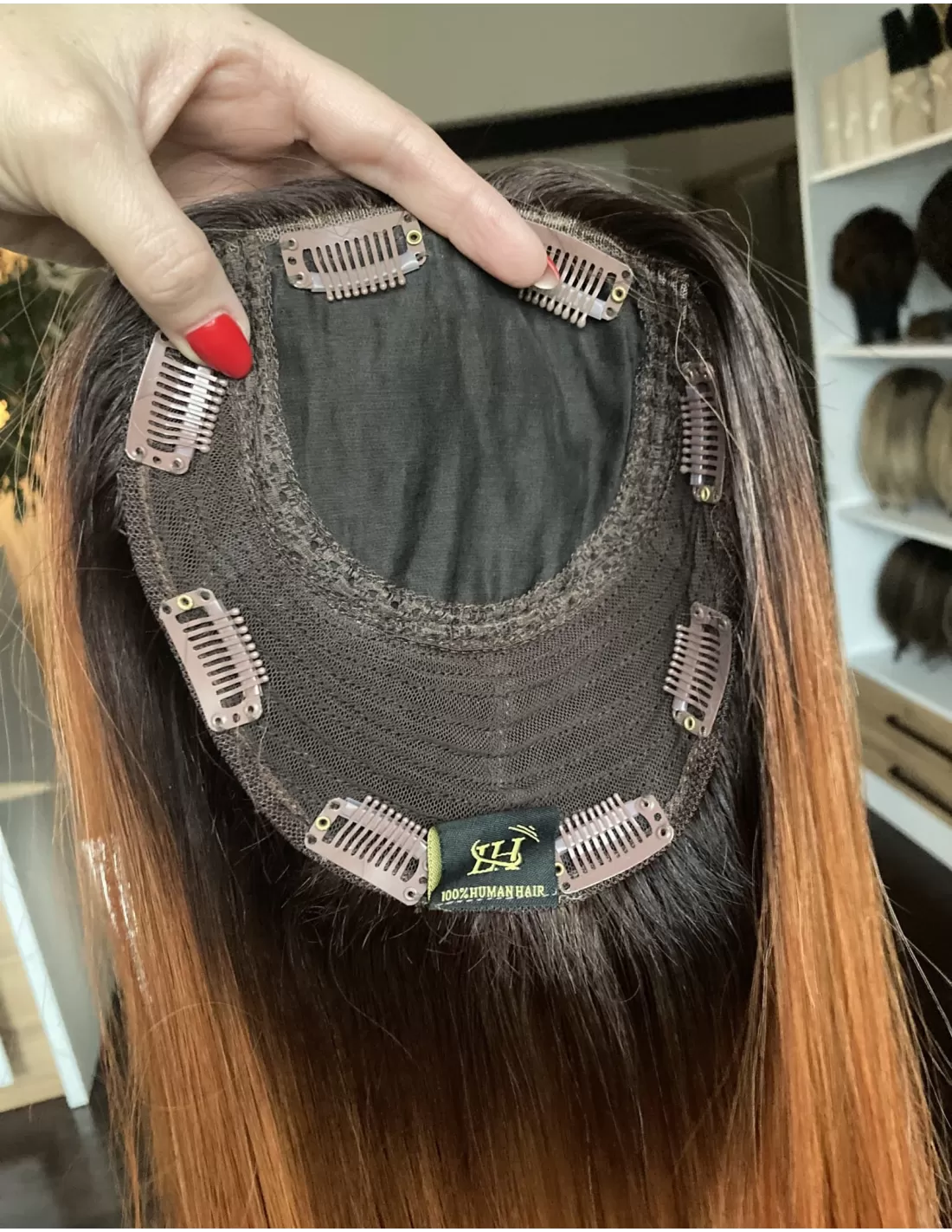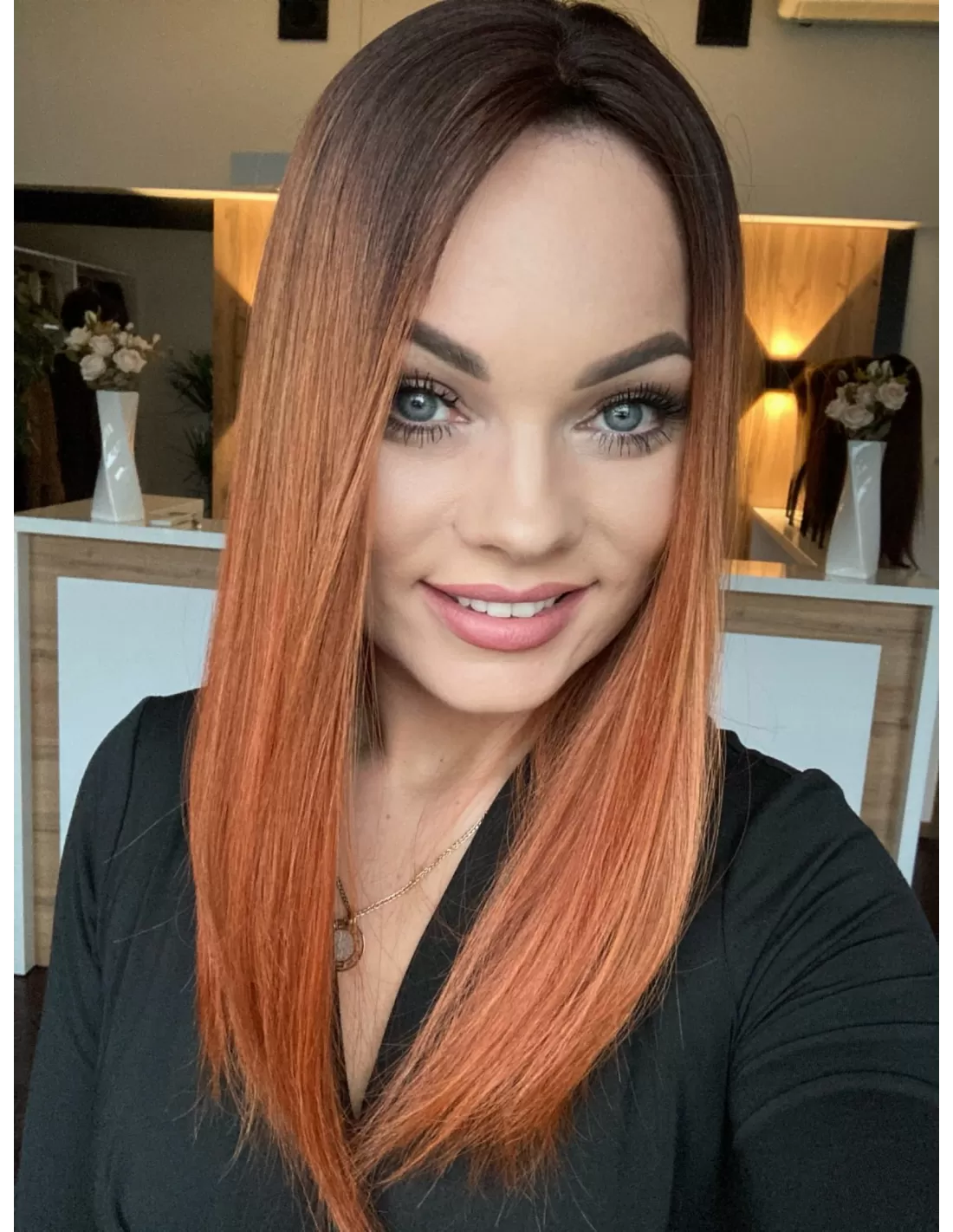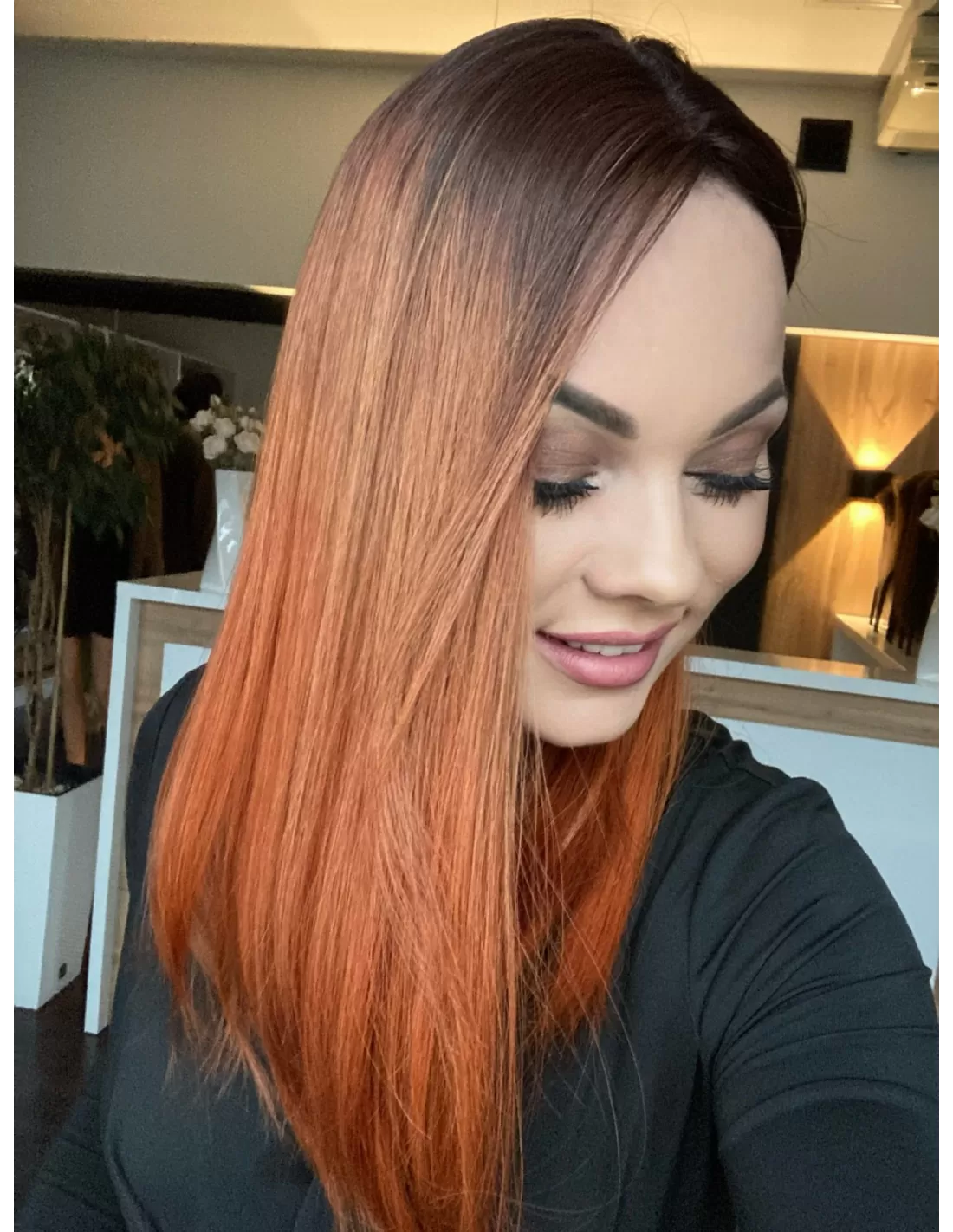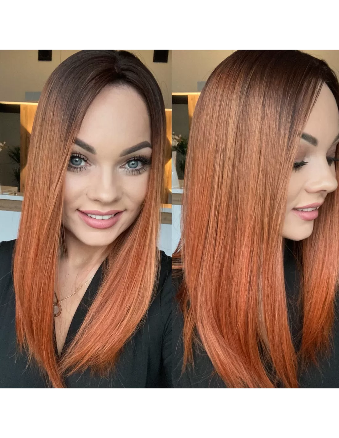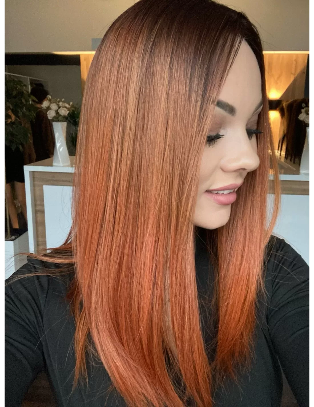 Topper Pia 45MS-Przedstawiamy wyjątkowy topper, który nie tylko podkreśli Twoją urodę, ale także dostarczy niezapomnianych doświadczeń stylizacyjnych. Wykonany został z najwyższej jakości włosów naturalnych europejskich. Topper Pia w kolorze ognistej rudości z ciemnym odrostem to prawdziwa perełka w świecie fryzur.