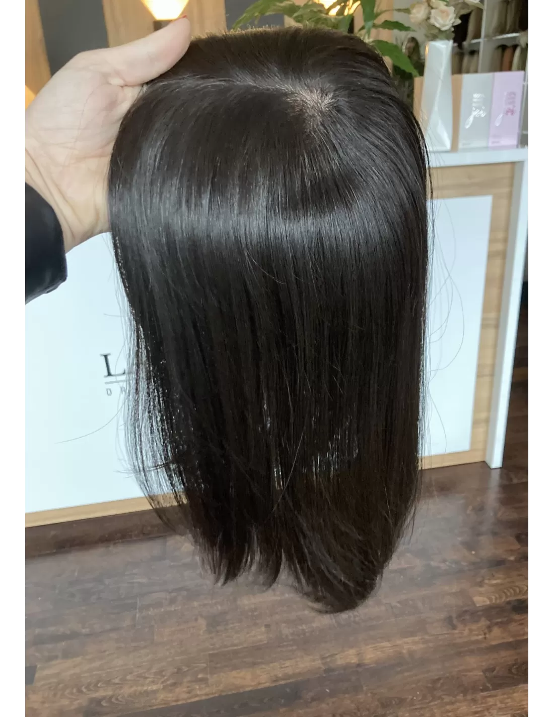 Topper Ina wykonany jest z włosów naturalnych dzięki czemu możesz dowolnie eksperymentować z fryzurami. Włosy można kręcić, prostować a także dowolnie zmieniać przedziałek - wszystko to jest możliwe dzięki wyjątkowej elastyczności i wytrzymałości naszego produktu.