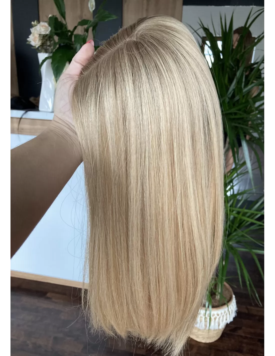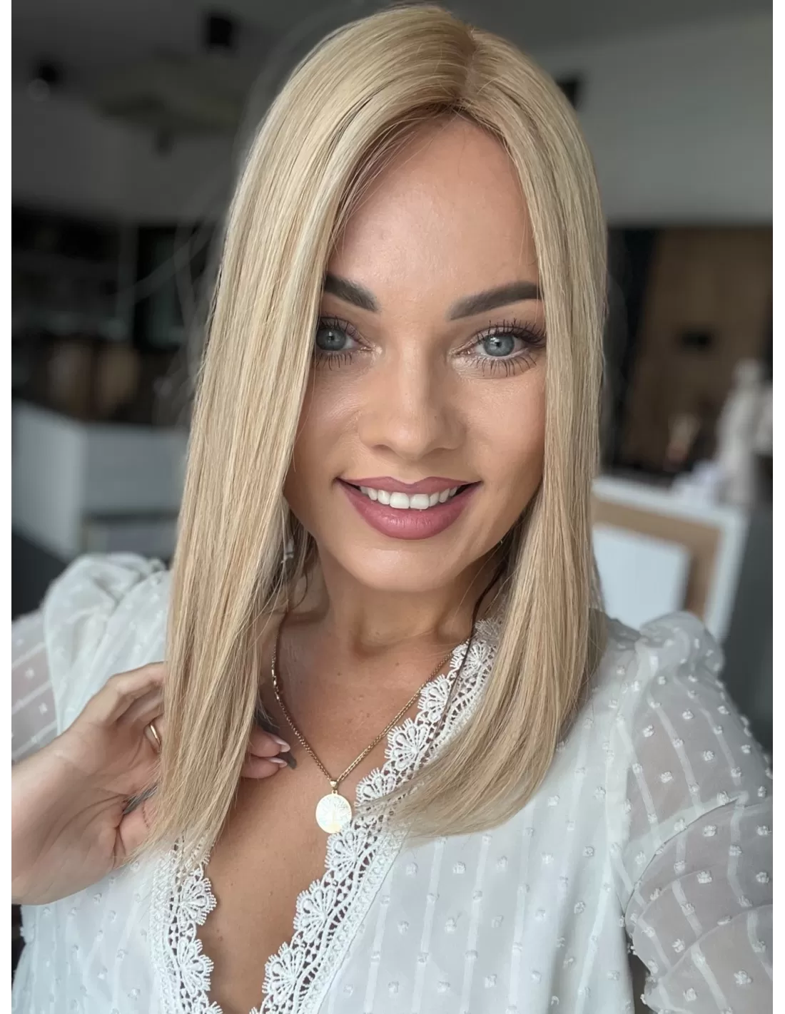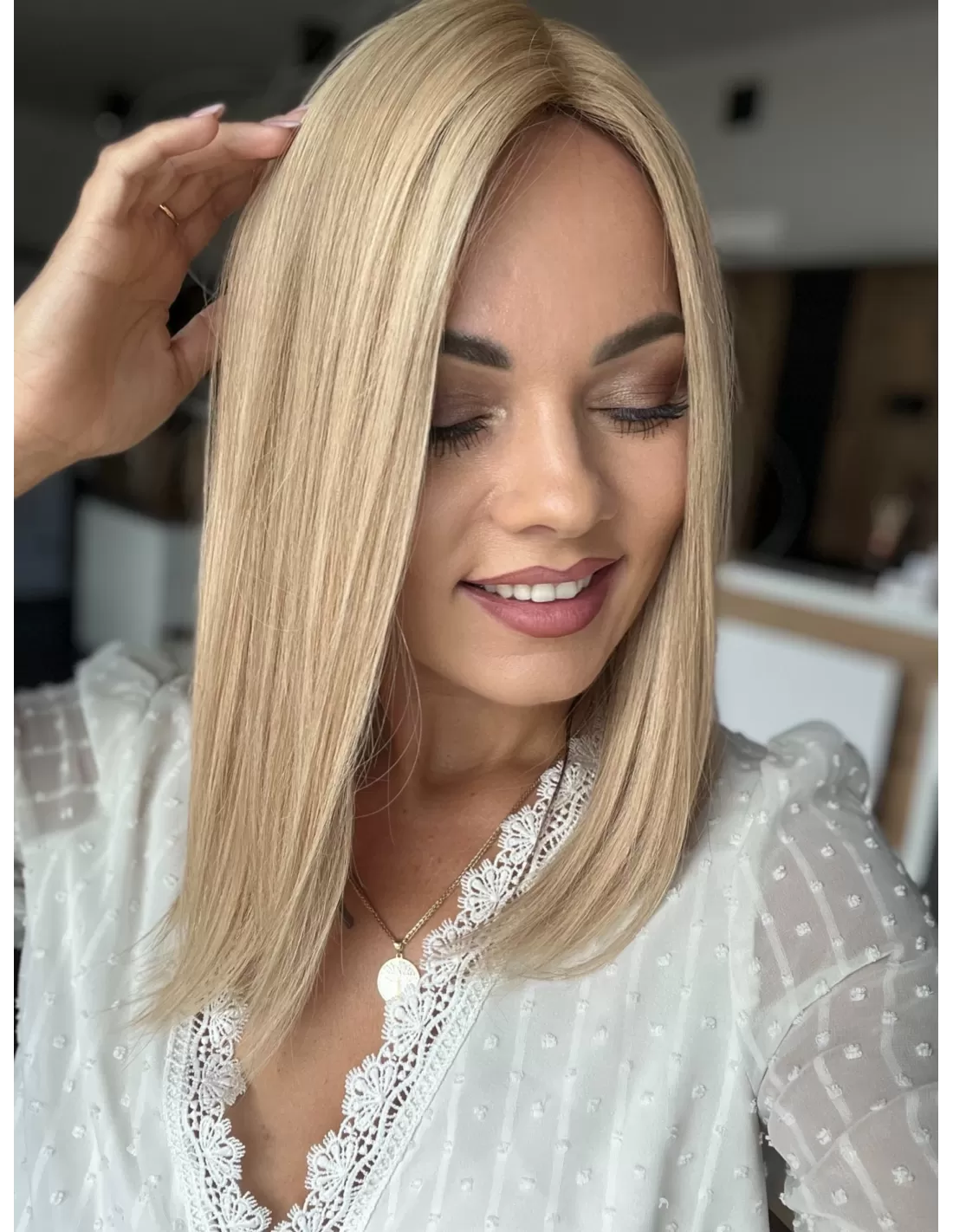 Topper Wilma to niezwykła eksplozja naturalnego piękna, stworzona z najwyższej jakości włosów. Jego blond kryje w sobie subtelną magię beżowego baleyage, która dodaje fryzurze subtelnego blasku. Odrost w odcieniu delikatnego chłodnego blondu to nie tylko delikatny kontrast, ale także wyraz elegancji.