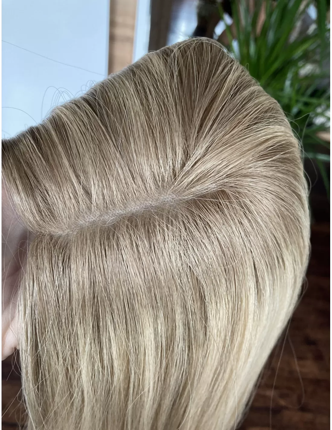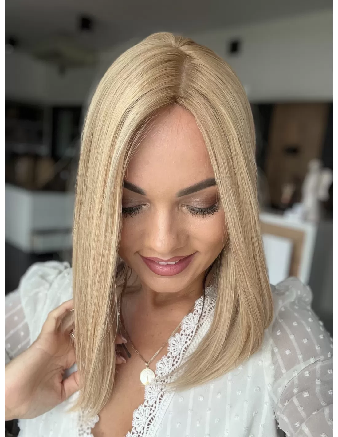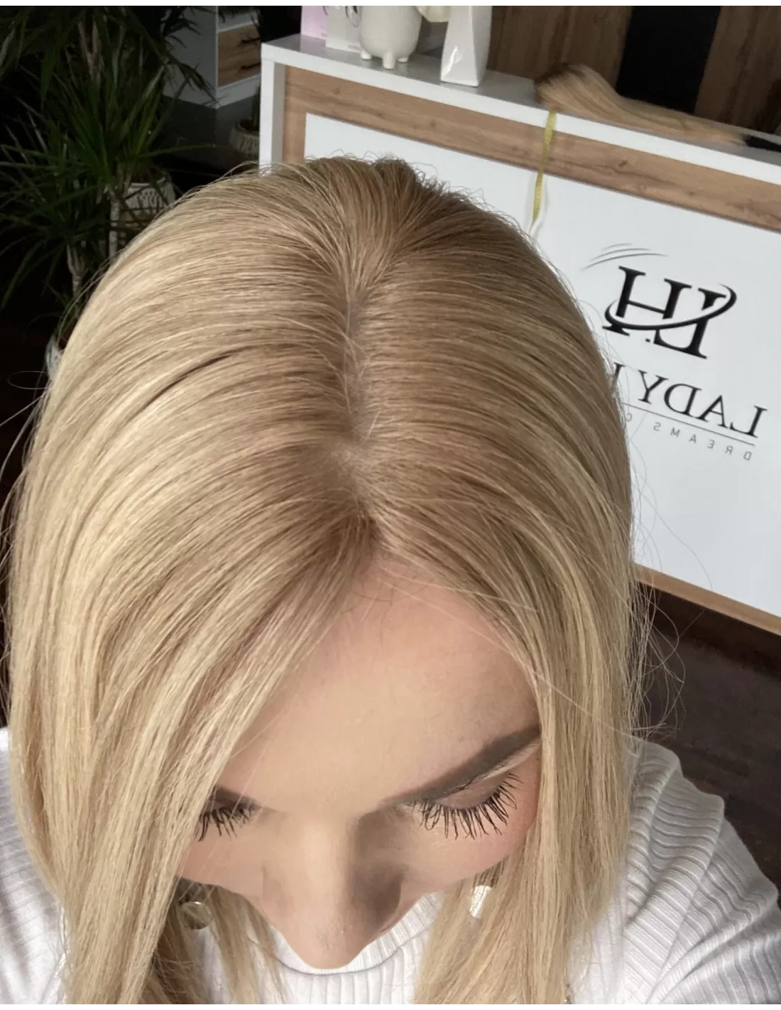 Topper Wilma to niezwykła eksplozja naturalnego piękna, stworzona z najwyższej jakości włosów. Jego blond kryje w sobie subtelną magię beżowego baleyage, która dodaje fryzurze subtelnego blasku. Odrost w odcieniu delikatnego chłodnego blondu to nie tylko delikatny kontrast, ale także wyraz elegancji.