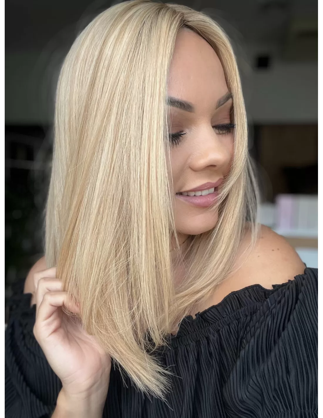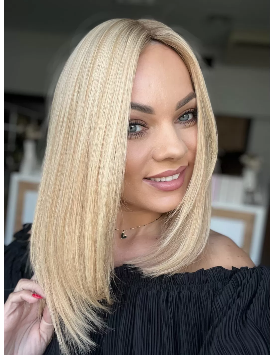 W każdym topperze, w tym w Sheili, istnieje możliwość wykonania grzywki oraz zmiany przedziałka na mokro, co daje pełną swobodę personalizacji fryzury.