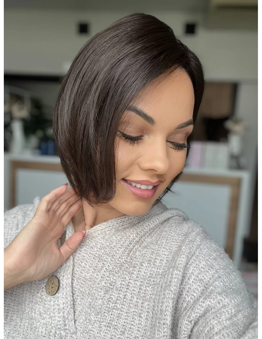 Topper Nila wykonany jest z włosów naturalnych dzięki czemu możesz dowolnie eksperymentować z fryzurami. Włosy można kręcić, prostować a także dowolnie zmieniać przedziałek - wszystko to jest możliwe dzięki wyjątkowej elastyczności i wytrzymałości naszego produktu.