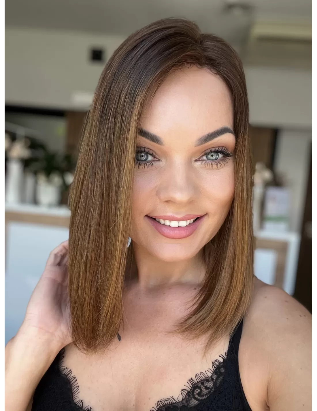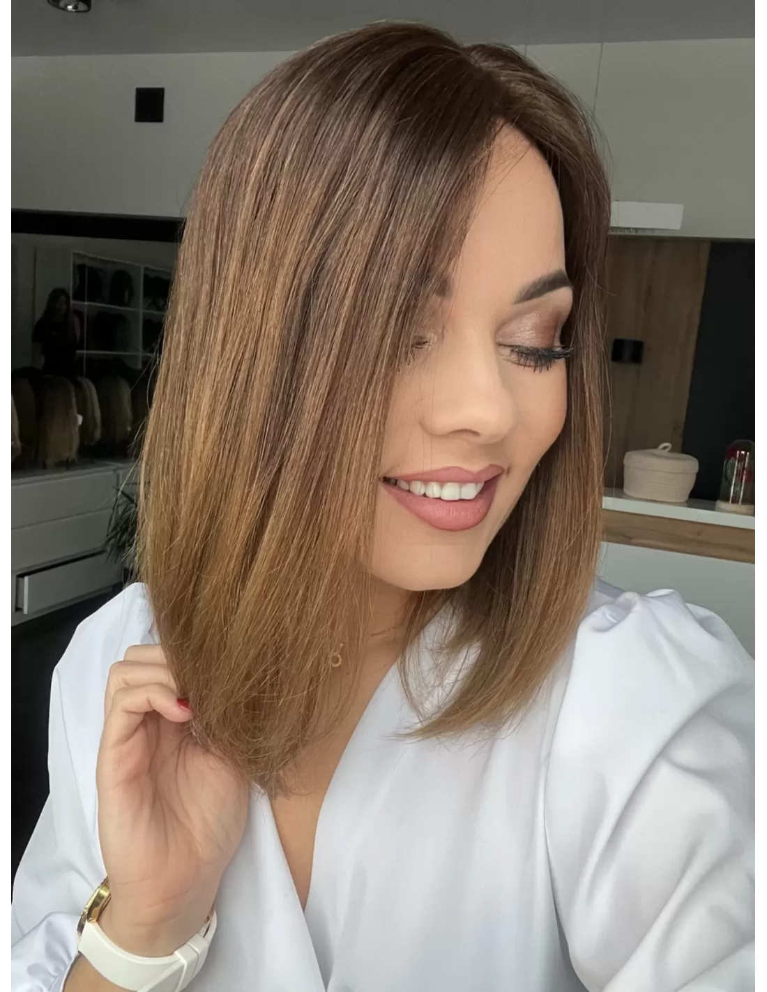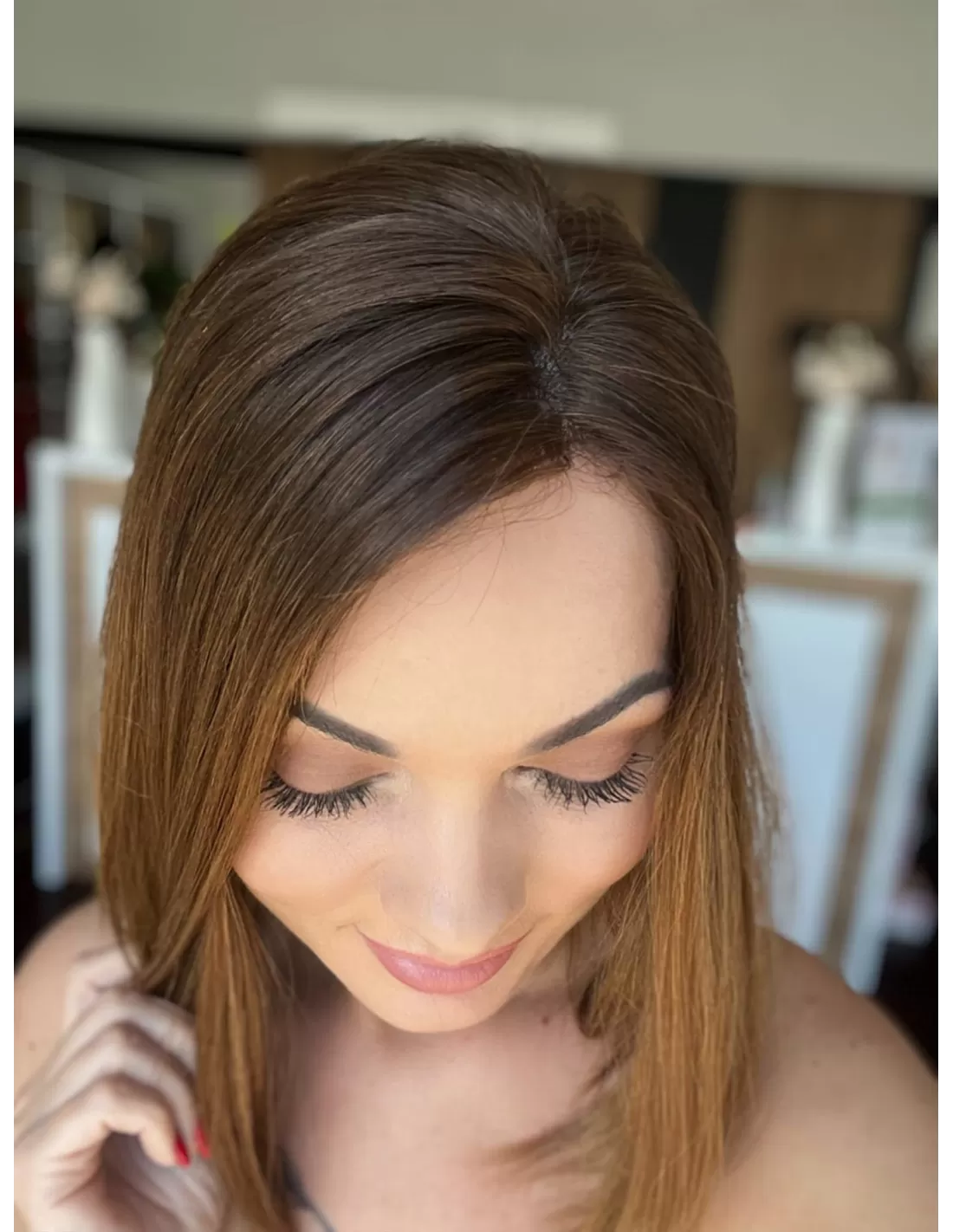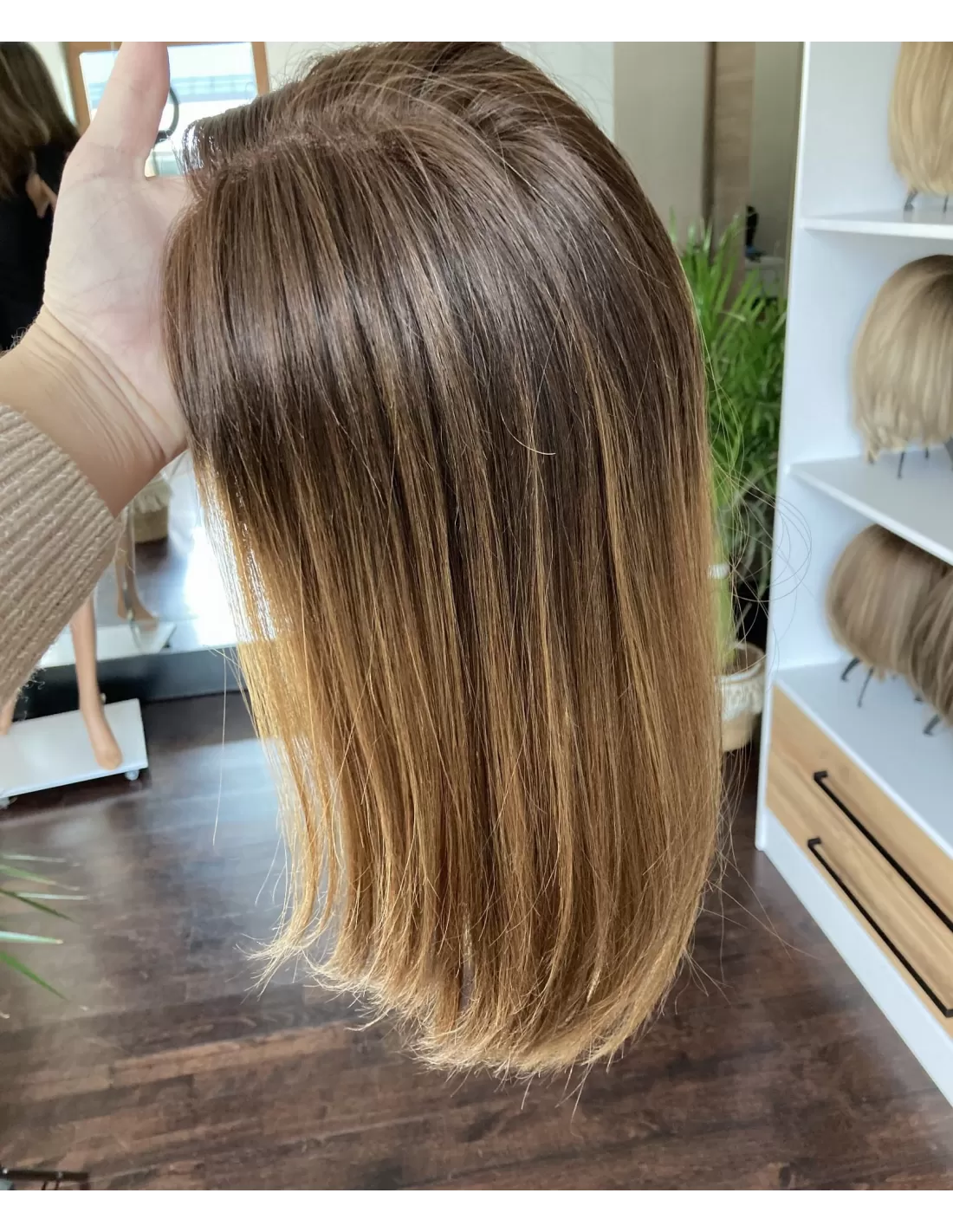 Kolor toppera "Joni" to piękne ombre -połączenie czekoladowego brązu z delikatnym i subtelnym przejściem w jaśniejsze odcienie brązu