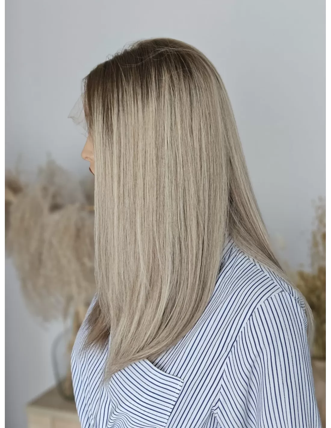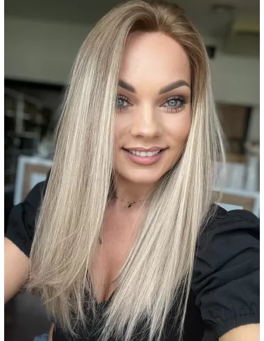 Peruka Tori emanuje subtelnością i elegancją. Jej chłodny odcień blondu z bardzo delikatnymi ciemniejszymi pasemkami i kontrastowym odrostem w kolorze ciemnego chłodnego blondu tworzą harmonijną grę kolorów. To niezwykłe dzieło sztuki, które podkreśla Twoją urodę i wyraża Twój unikalny styl.