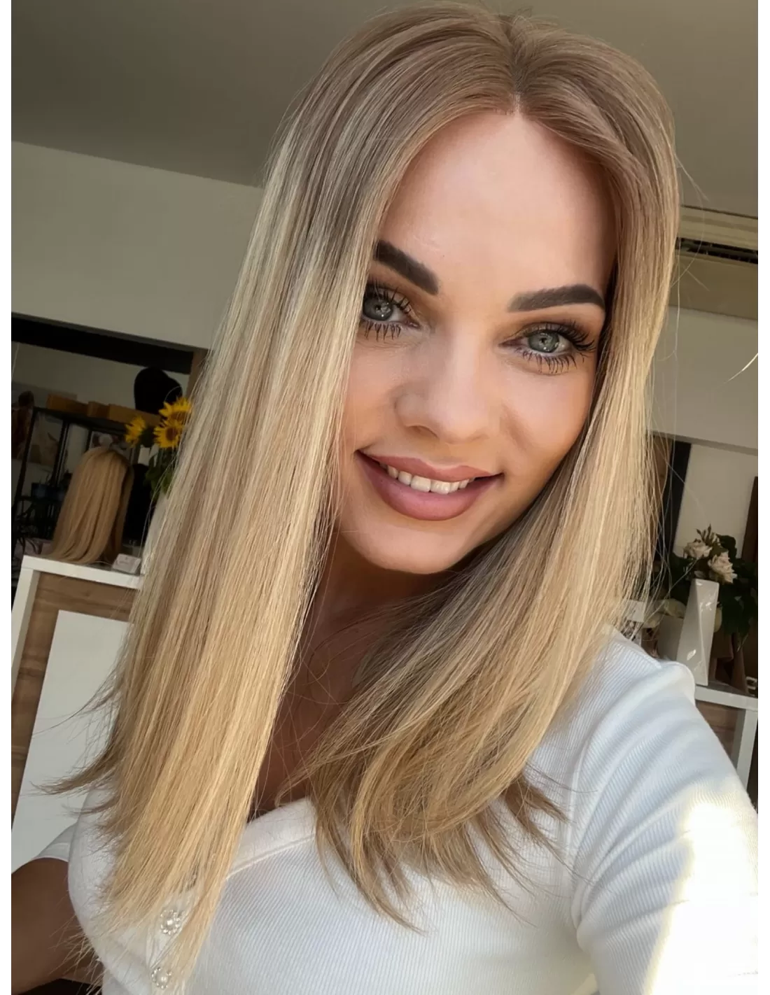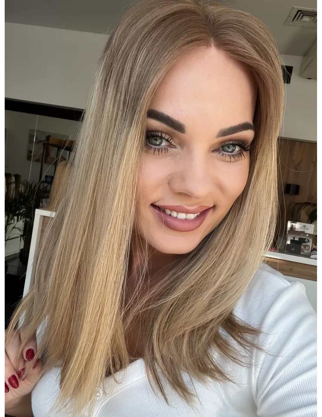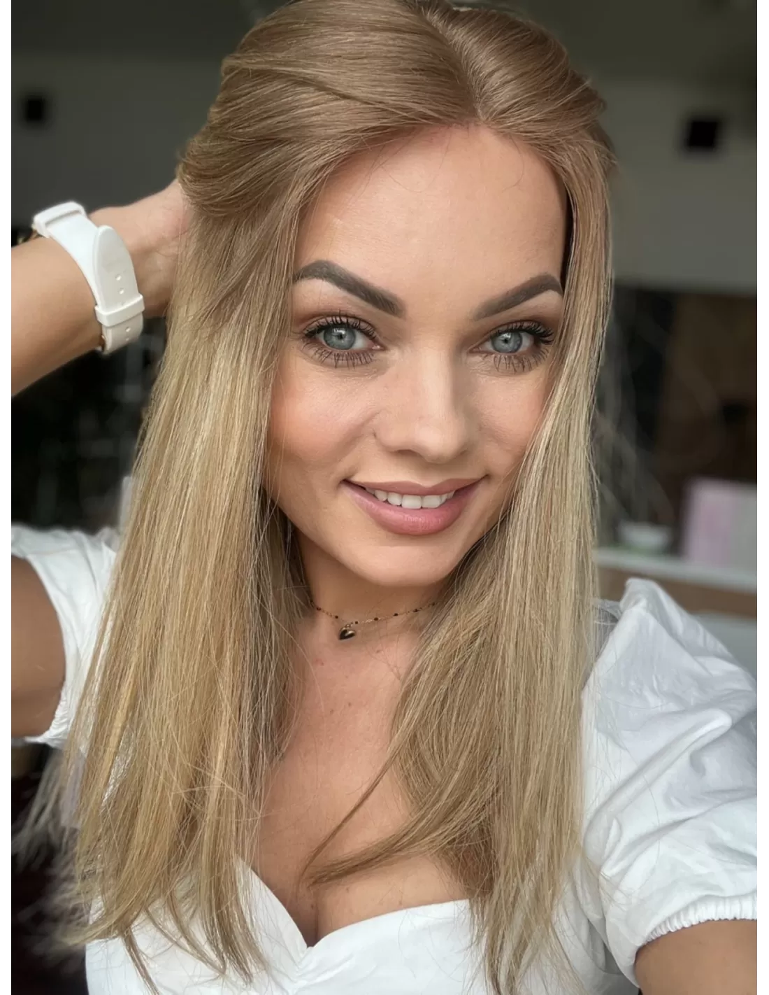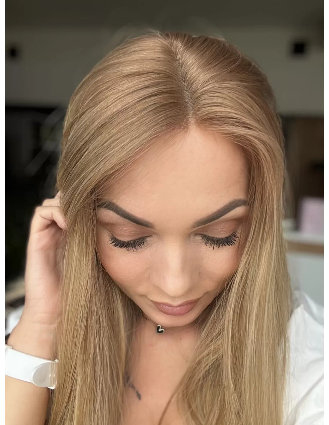 Lady HairTopper z Włosów Naturalnych"Liwia 40cm"to innowacyjne rozwiązanie dla Pań borykających się z łysieniem blizowaciejącym lub łysieniem plackowatym przy czole. Dzięki siateczce lace front, topper istnieje możliwośc podklejenia toppera z przodu na specjalnej taśmie do peruk/topperów.