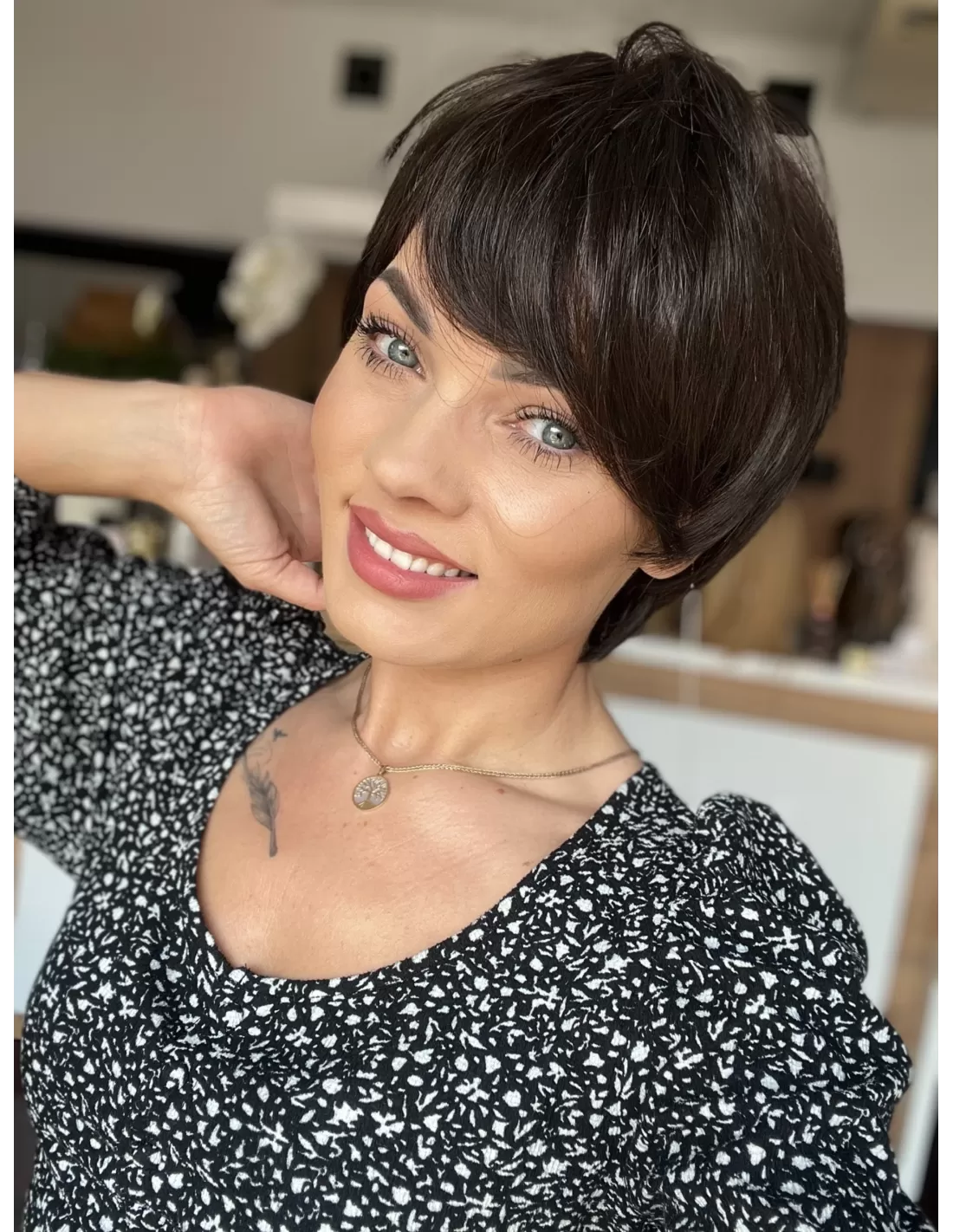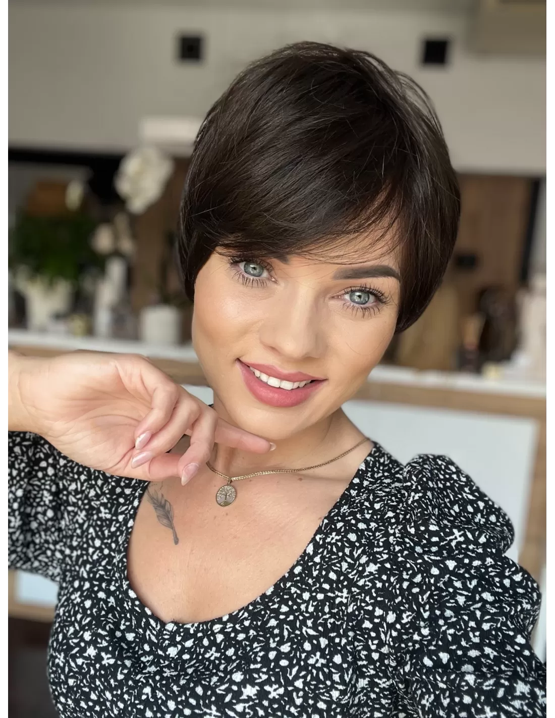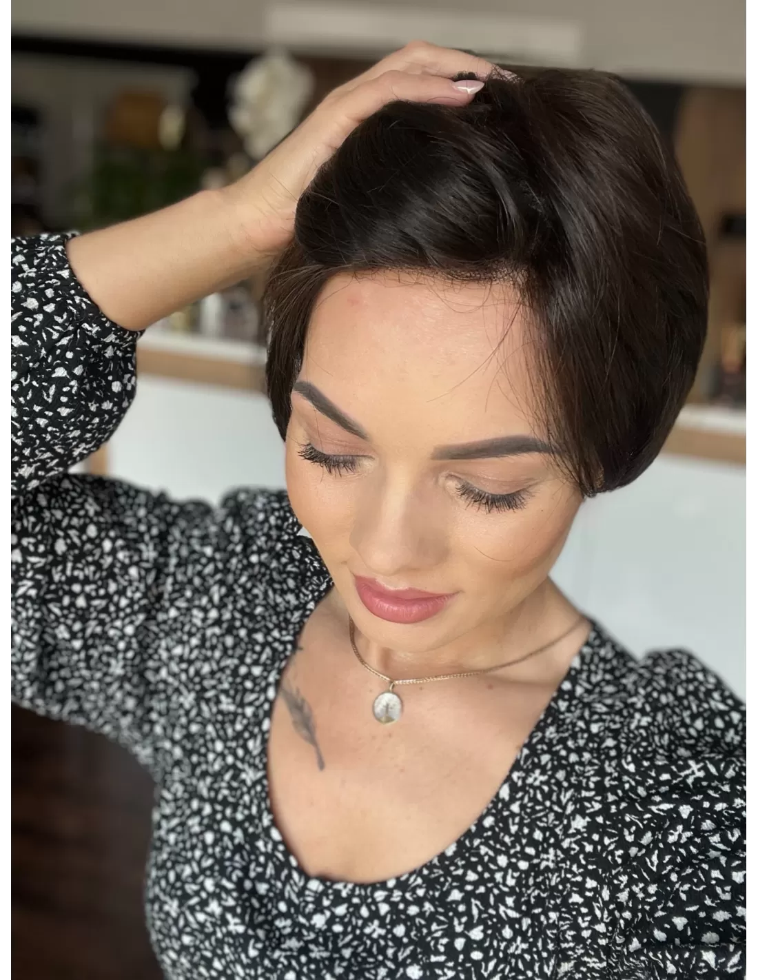 Włosy w peruce są plastyczne dzięki czemu możesz je dowolnie układać i zmieniać przedziałek, tworząc przy tym różnorodne fryzury.