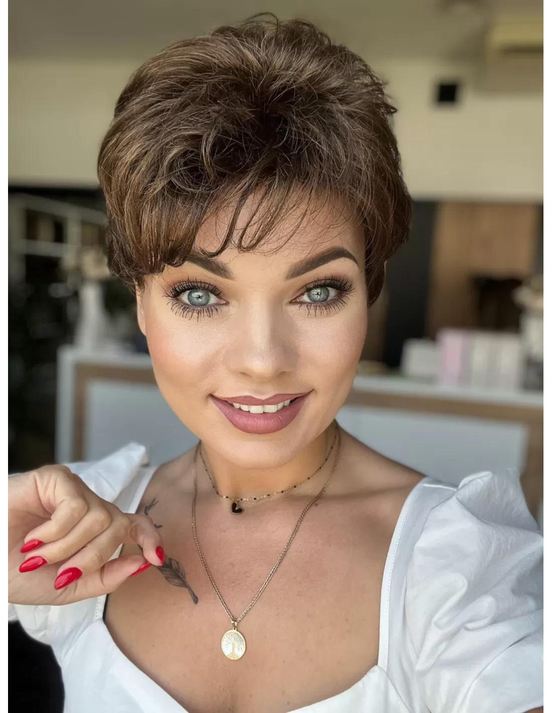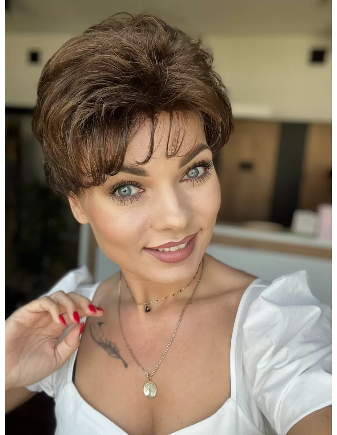 Włosy w peruce są plastyczne dzięki czemu możesz je dowolnie układać i zmieniać przedziałek, tworząc przy tym różnorodne fryzury.