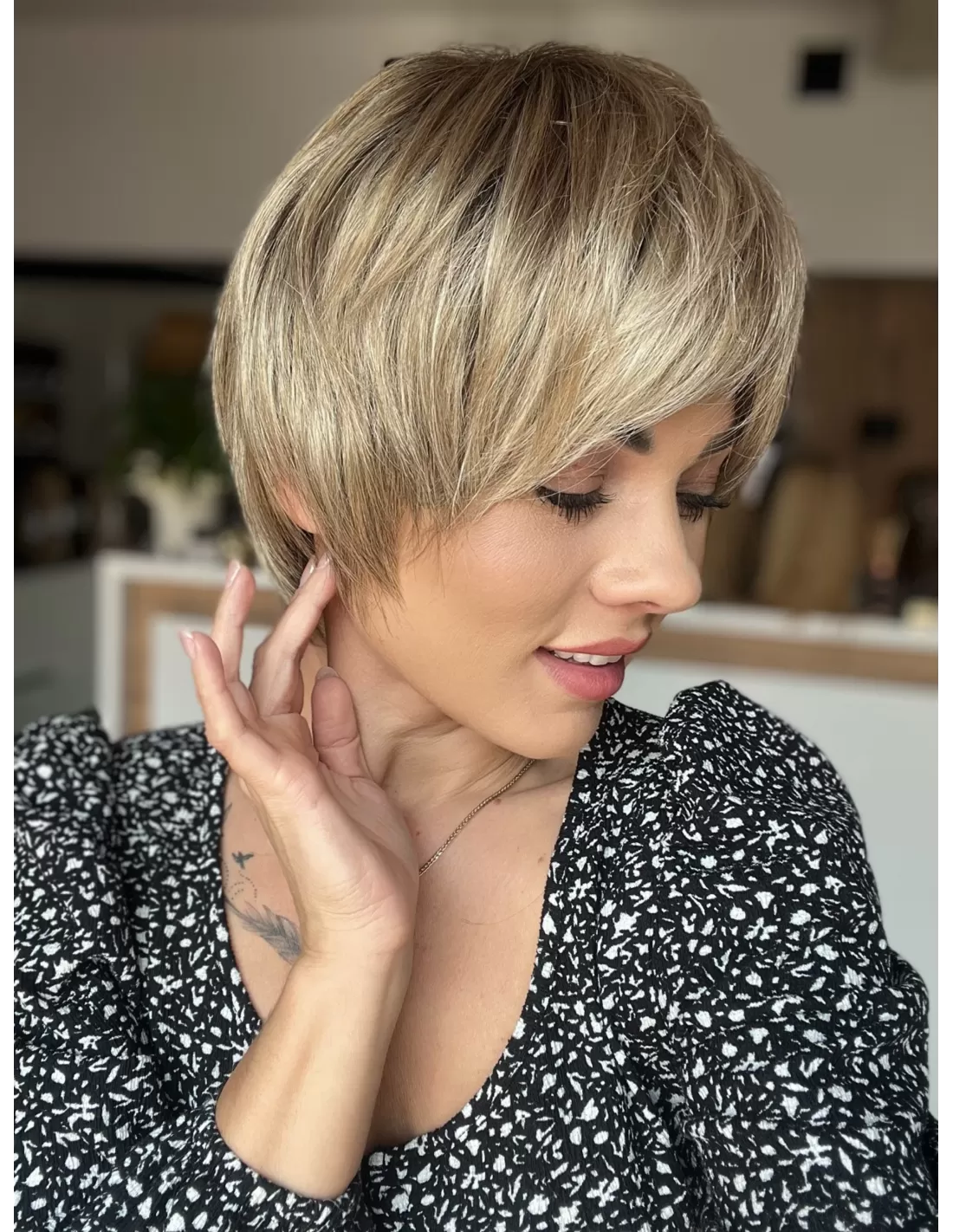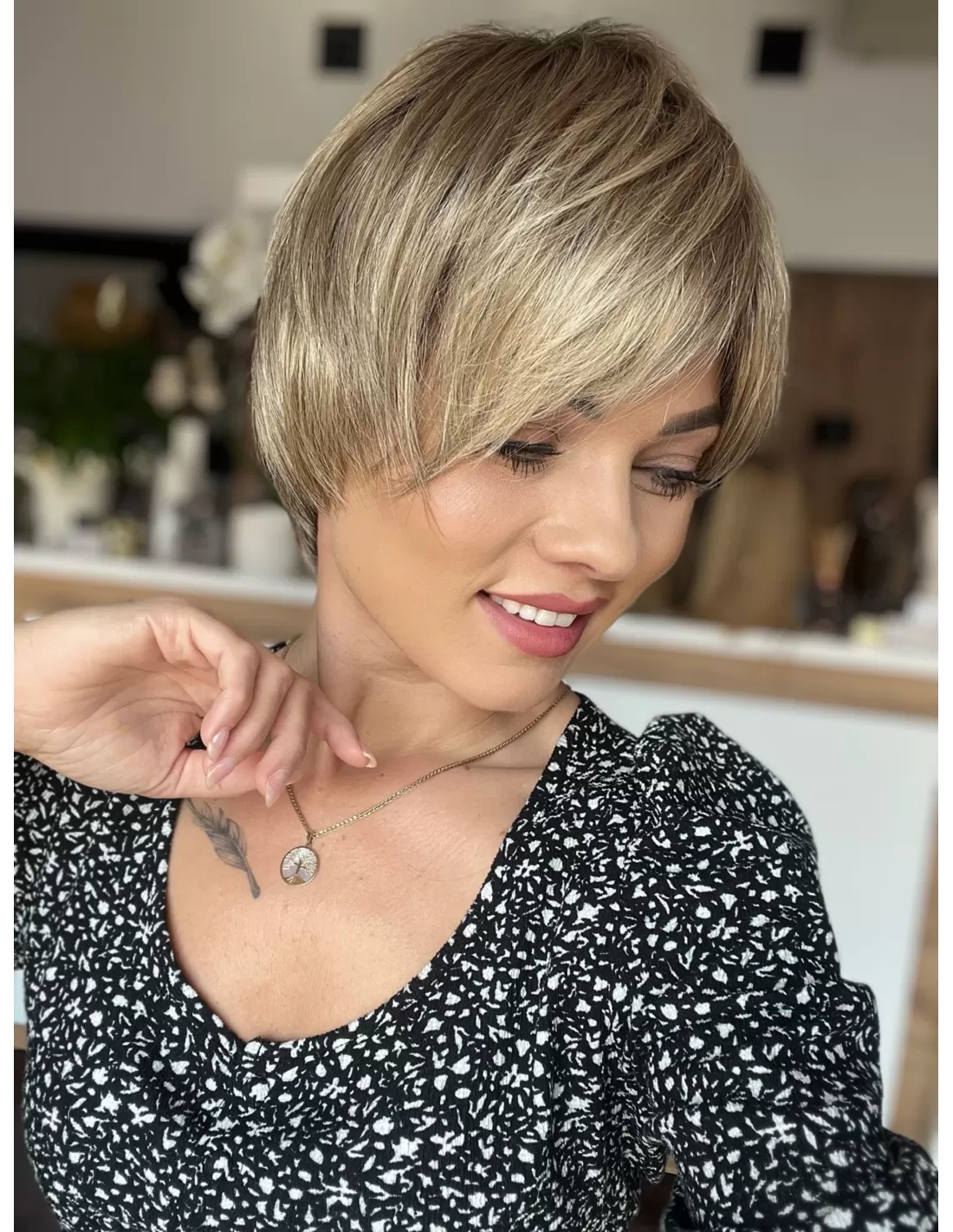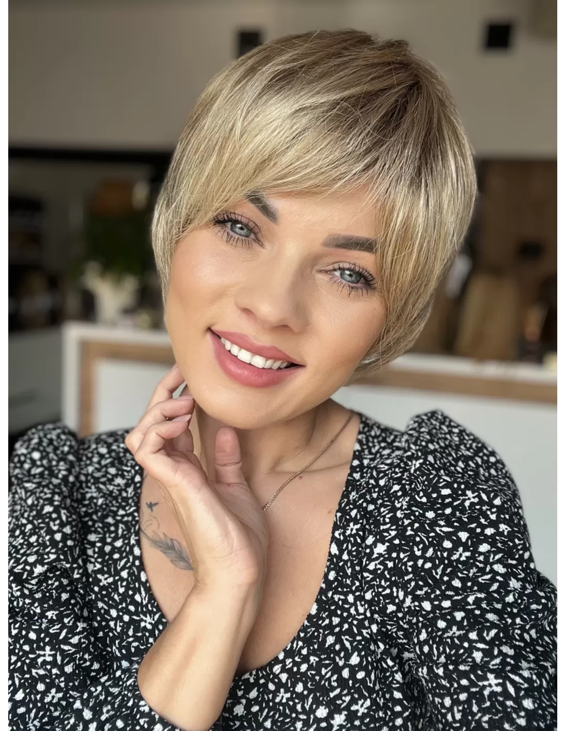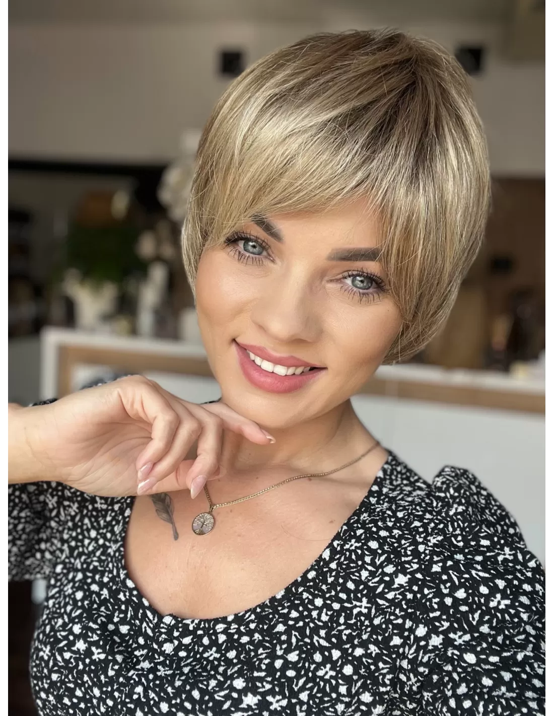 Włosy w peruce są plastyczne dzięki czemu możesz je dowolnie układać i zmieniać przedziałek, tworząc przy tym różnorodne fryzury.