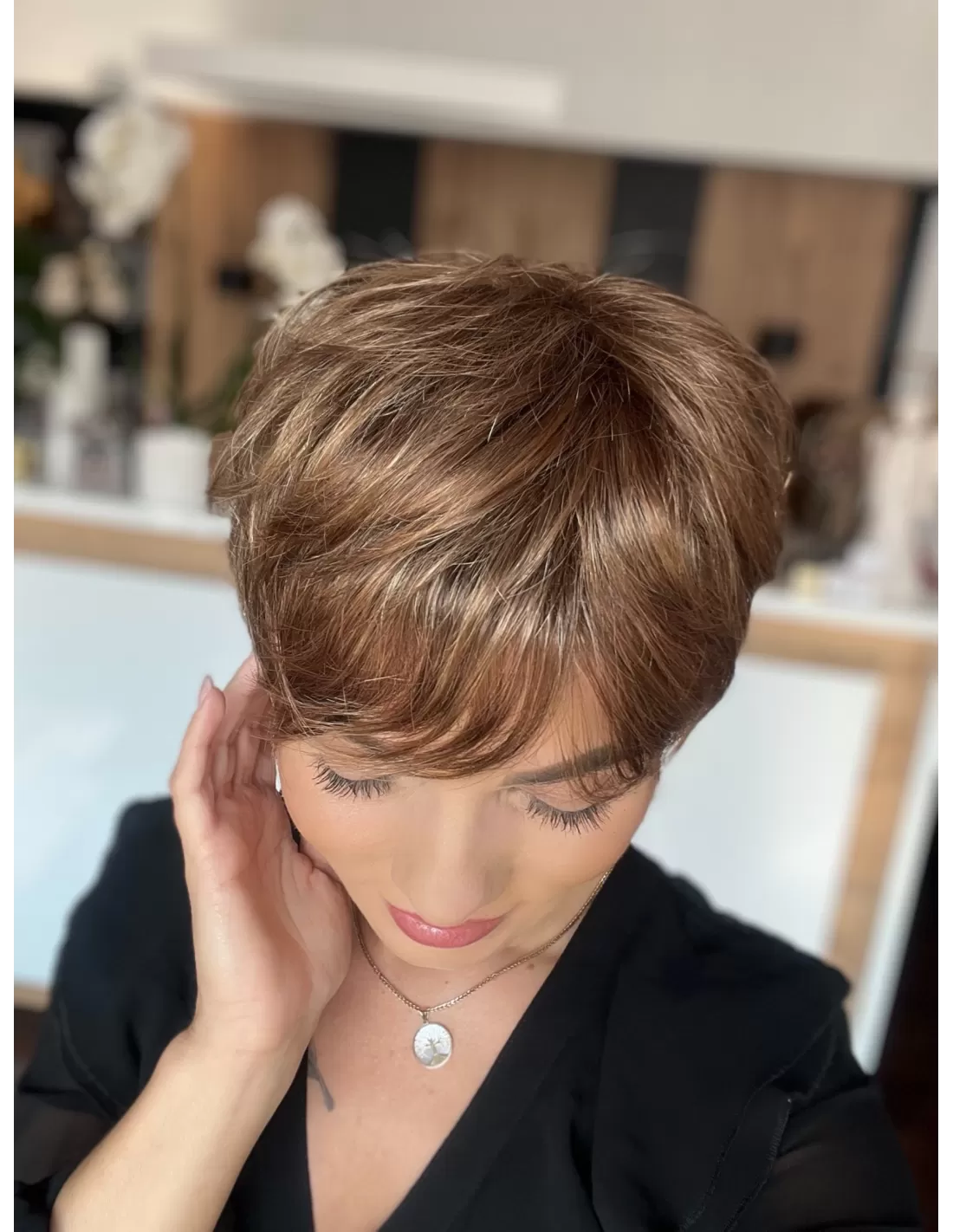 Włosy w peruce są plastyczne dzięki czemu możesz je dowolnie układać i zmieniać przedziałek, tworząc przy tym różnorodne fryzury.