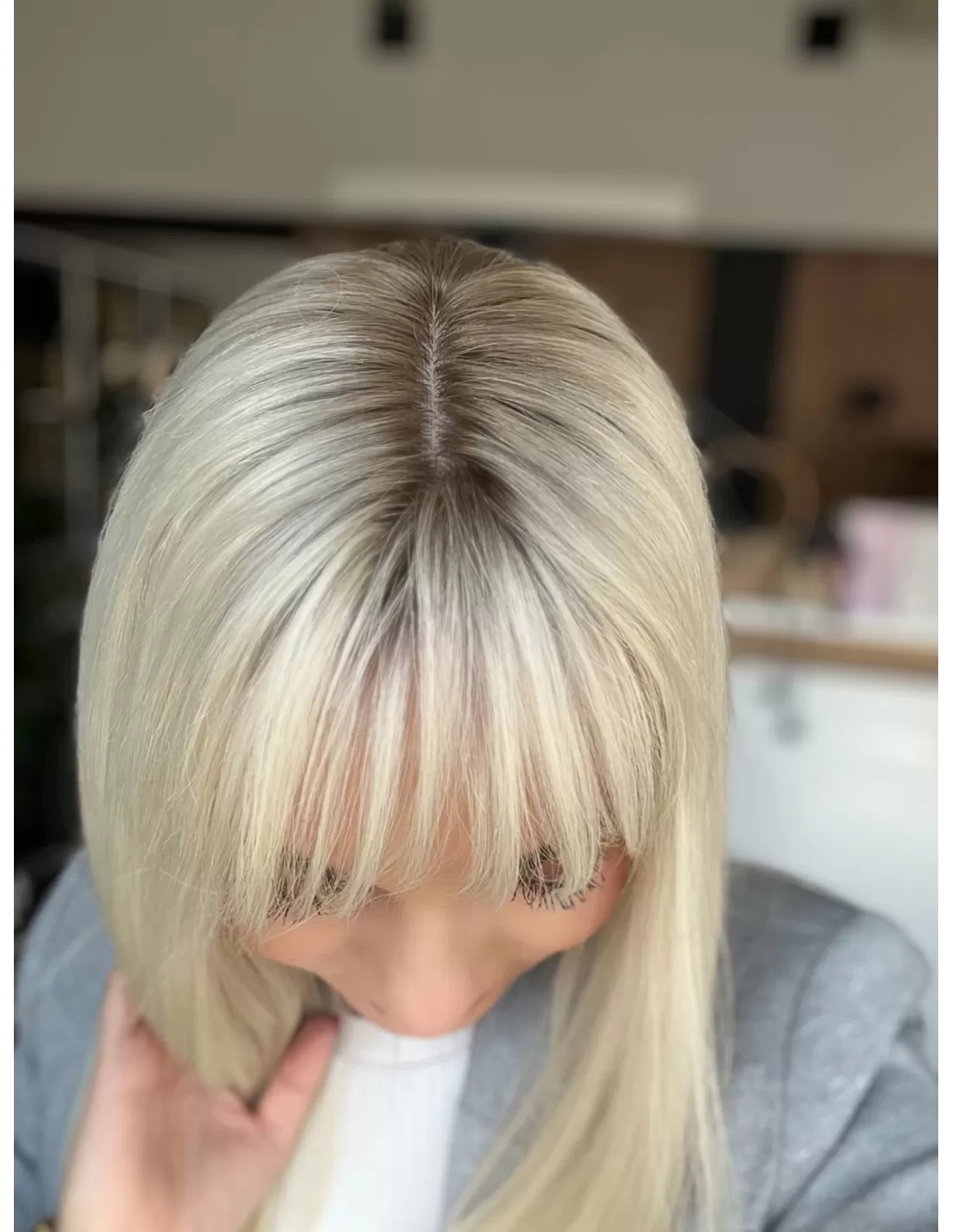 Mikroskóra na czubku peruki dokładnie imituje skórę głowy, co sprawia, że peruka wygląda jeszcze bardziej realistycznie.