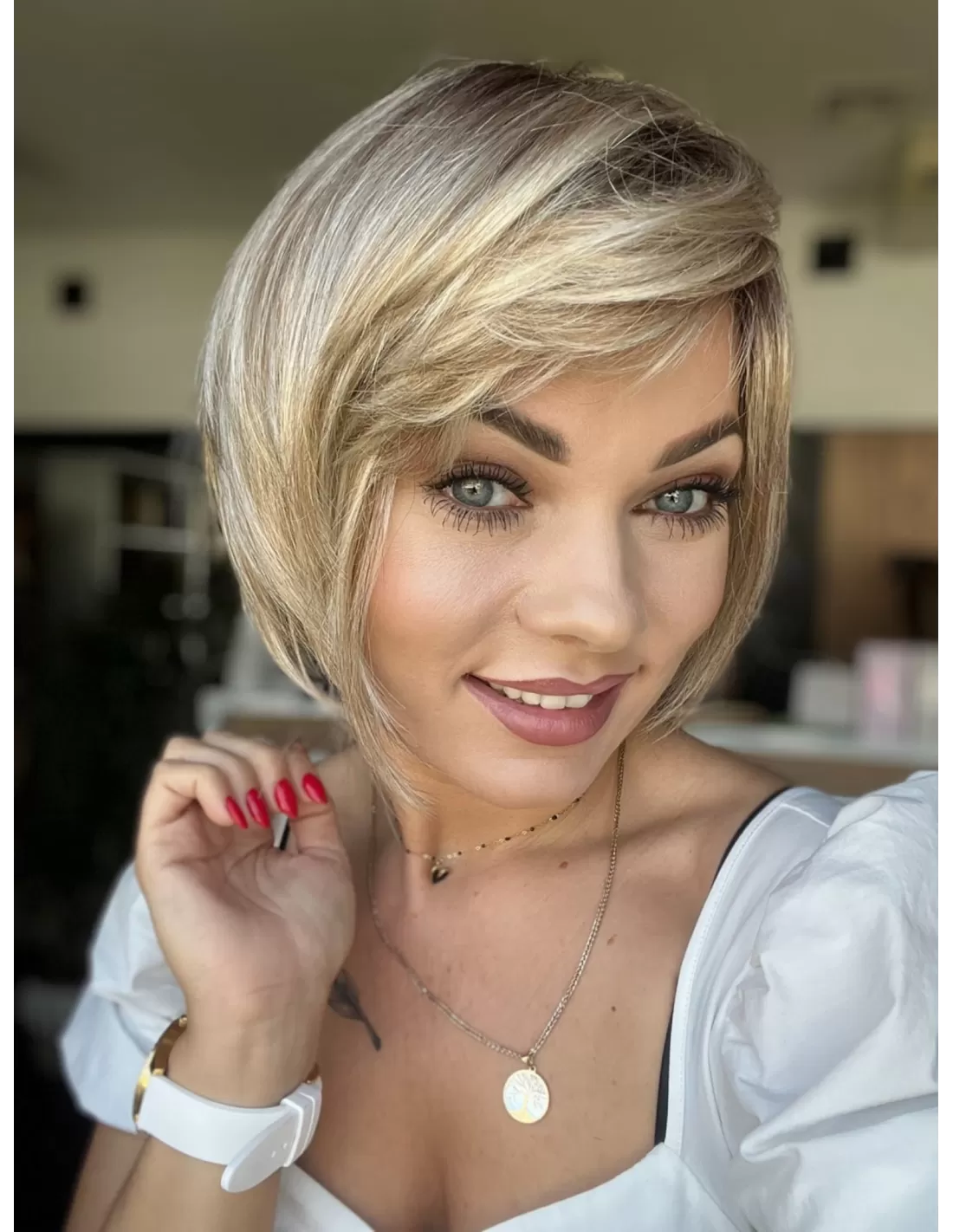 Włosy w peruce są plastyczne dzięki czemu możesz je dowolnie układać i zmieniać przedziałek, tworząc przy tym różnorodne fryzury.