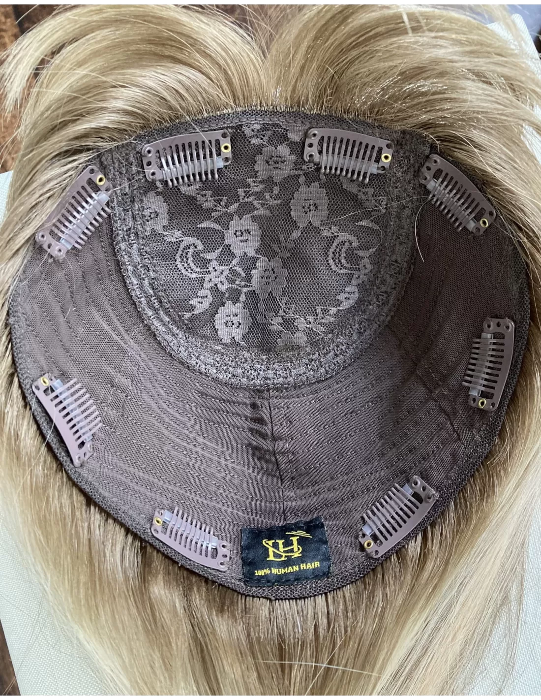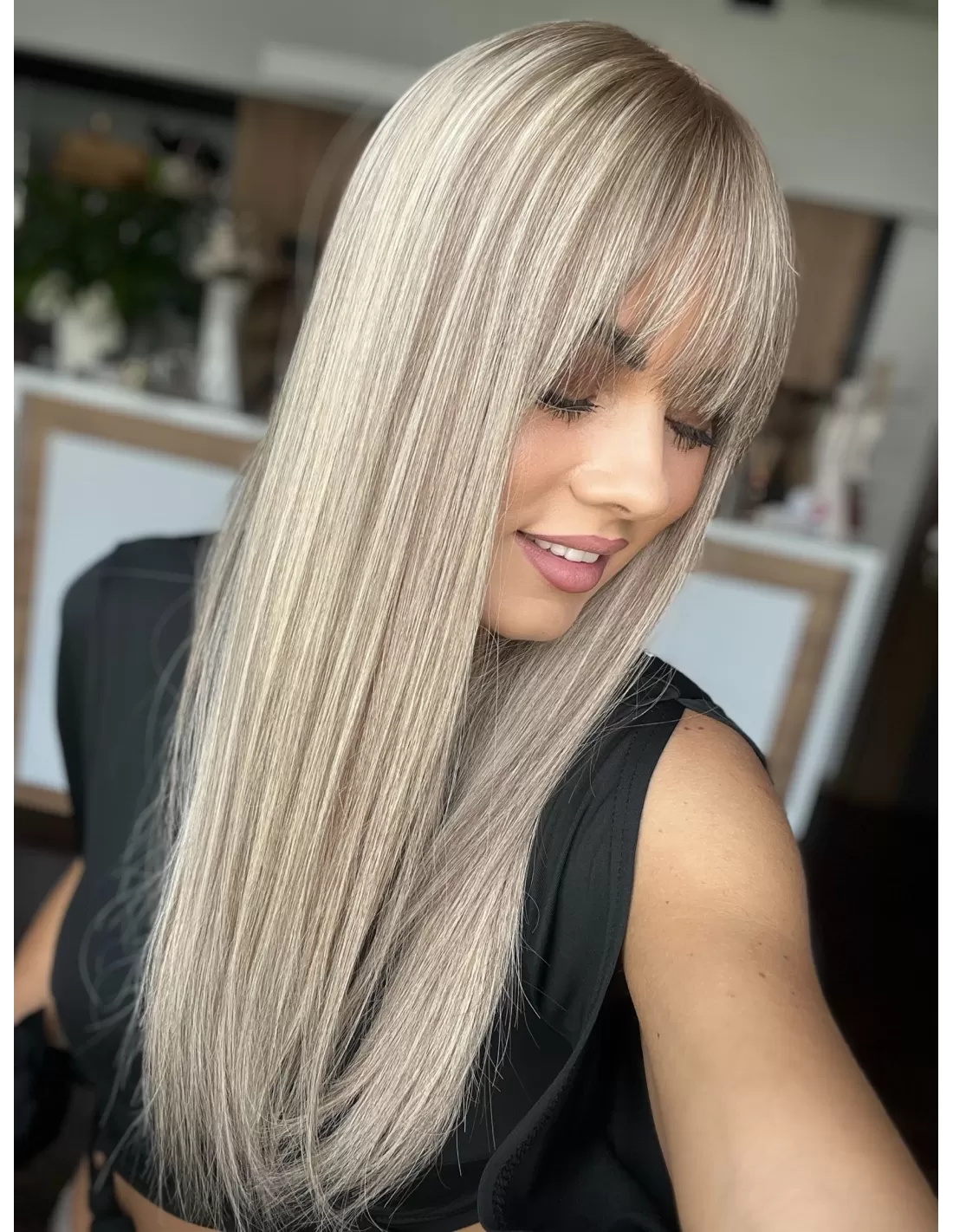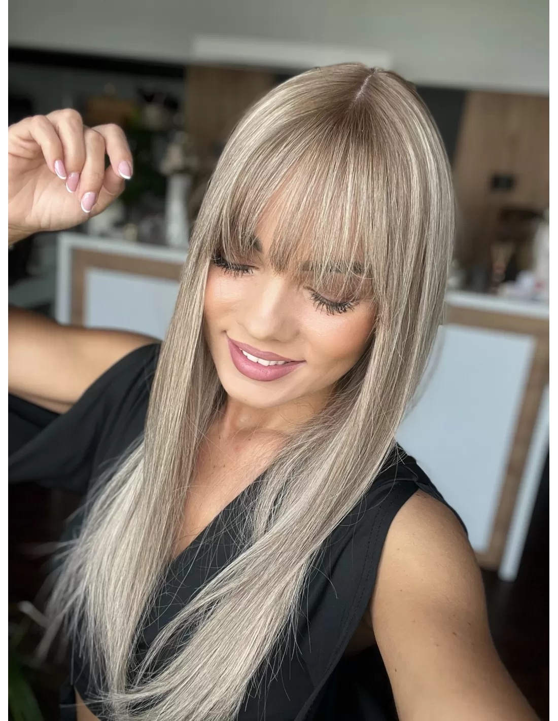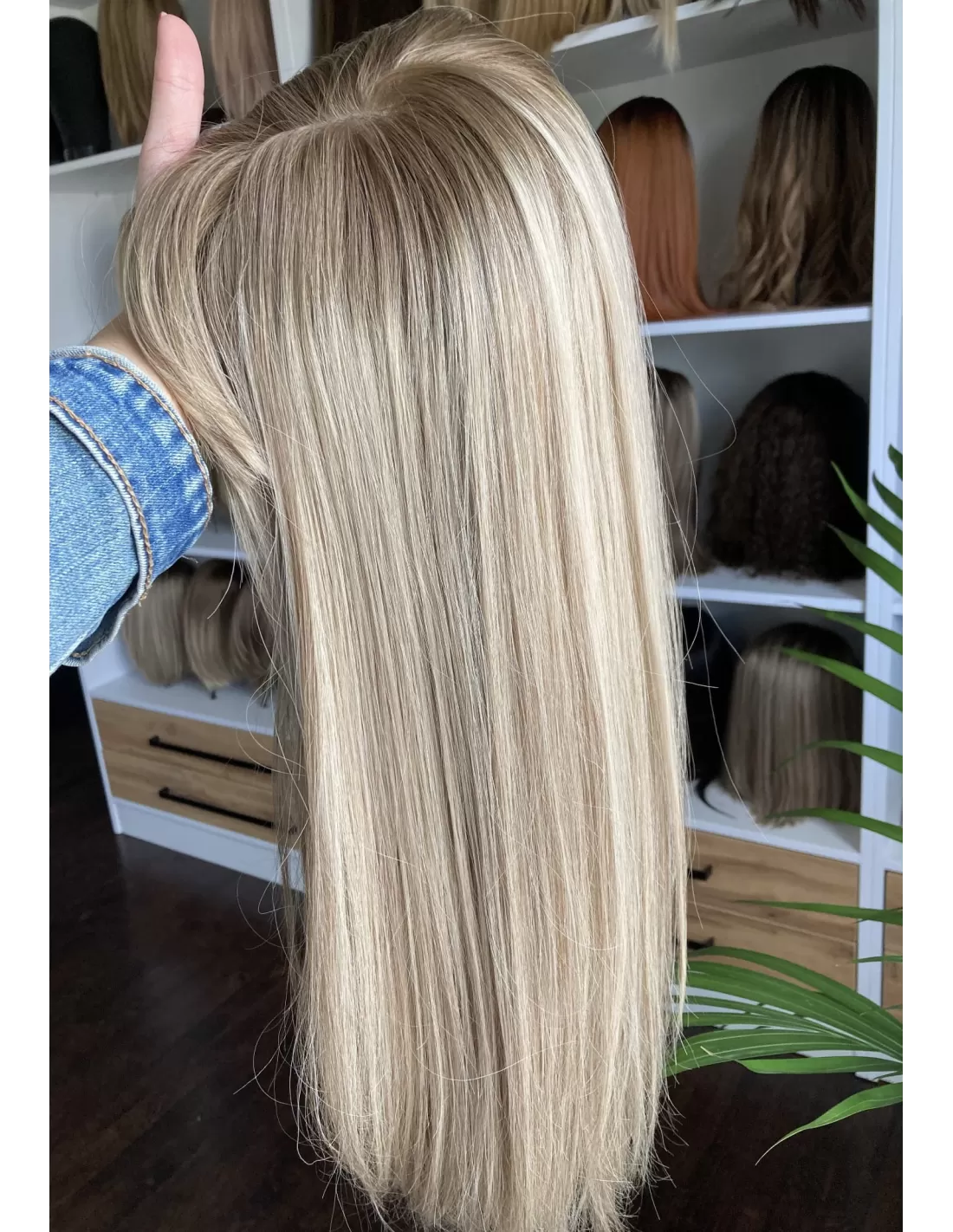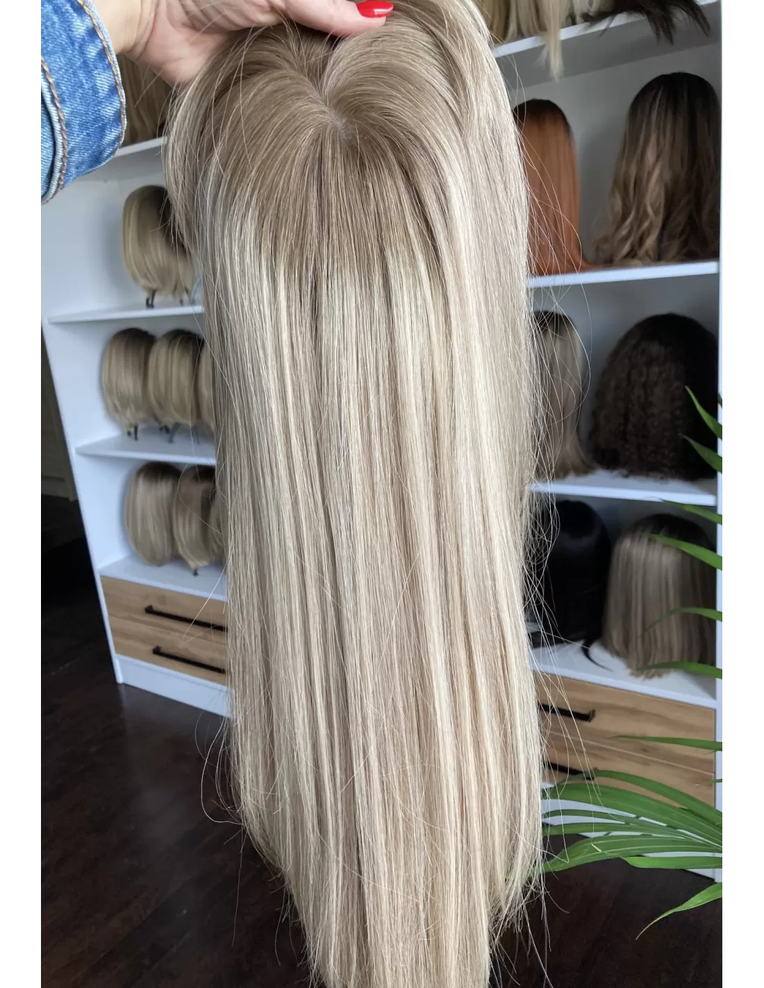 Topper wykonany został z włosów naturalnych europejskich najwyższej jakości. Jego kolor to baleayage w różnych odcieniach bezowego blondu z odrostem w kolorze średniego blondu . Jest to wyrafinowana propozycja dla miłośniczek nowoczesnego stylu. Dodatkowy baleyage nadaje głębokości i ruchu, co sprawia, że ta fryzura emanuje elegancją. Poznaj magię toppera Lila , który nie tylko nadaje się doskonale do codziennego noszenia, ale także dodaje subtelnego pazura i stylu każdej stylizacji.