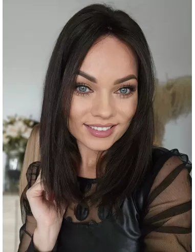 Topper z włosów naturalnych "Joni-35#1B" z delikatną grzywką na boki