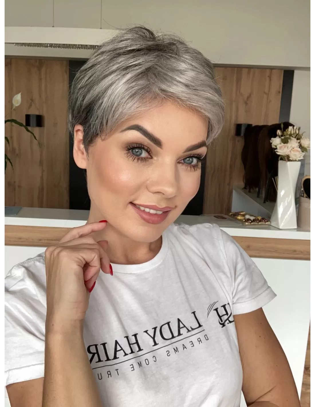 Włosy w peruce są plastyczne dzięki czemu możesz je dowolnie układać i zmieniać przedziałek, tworząc przy tym różnorodne fryzury.