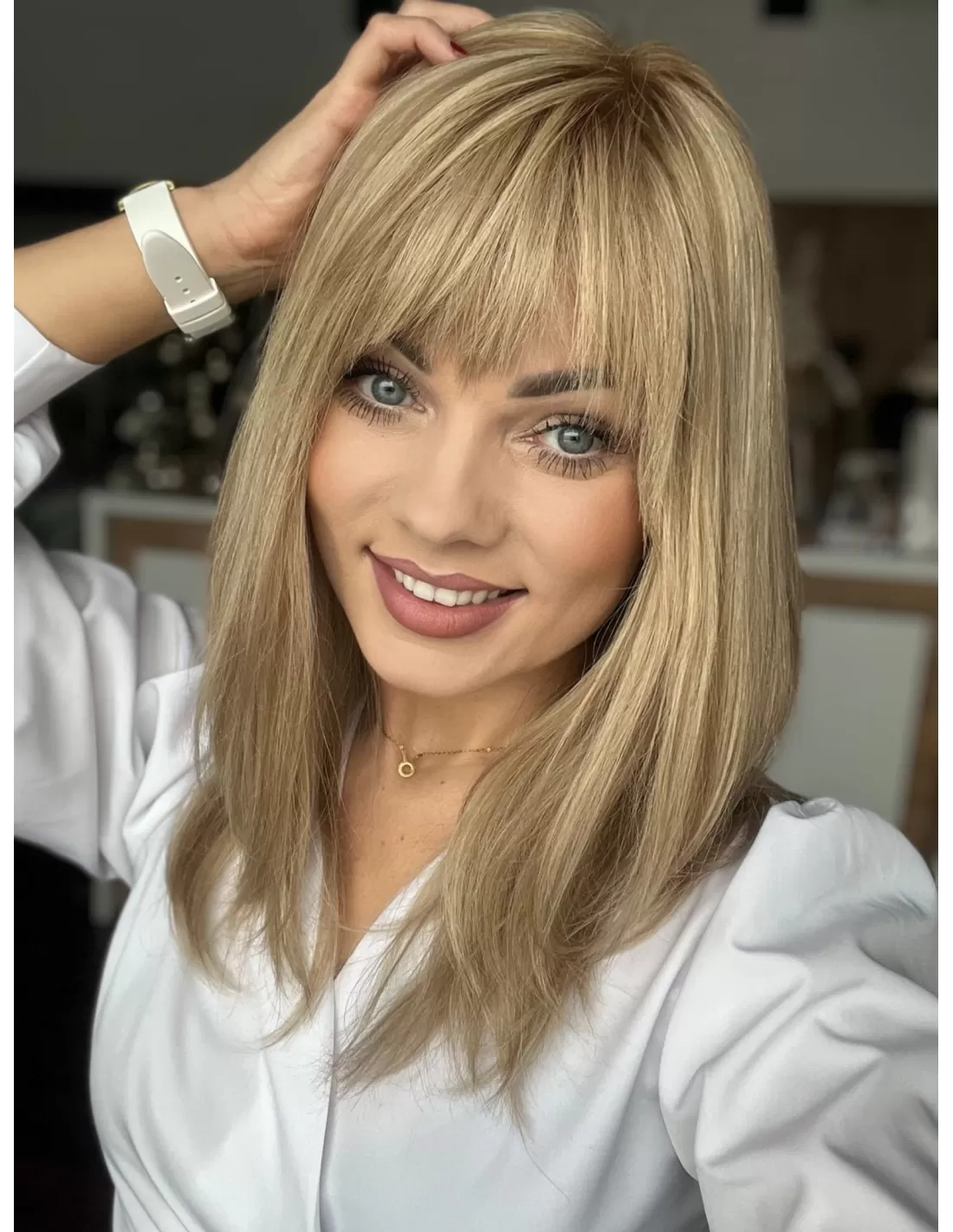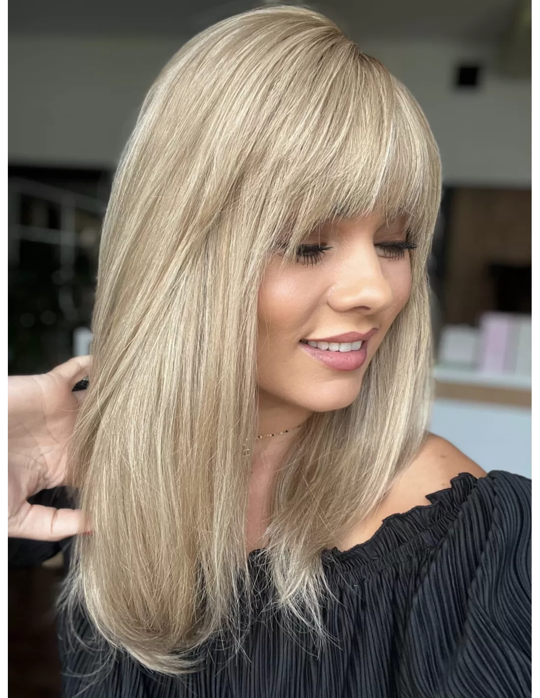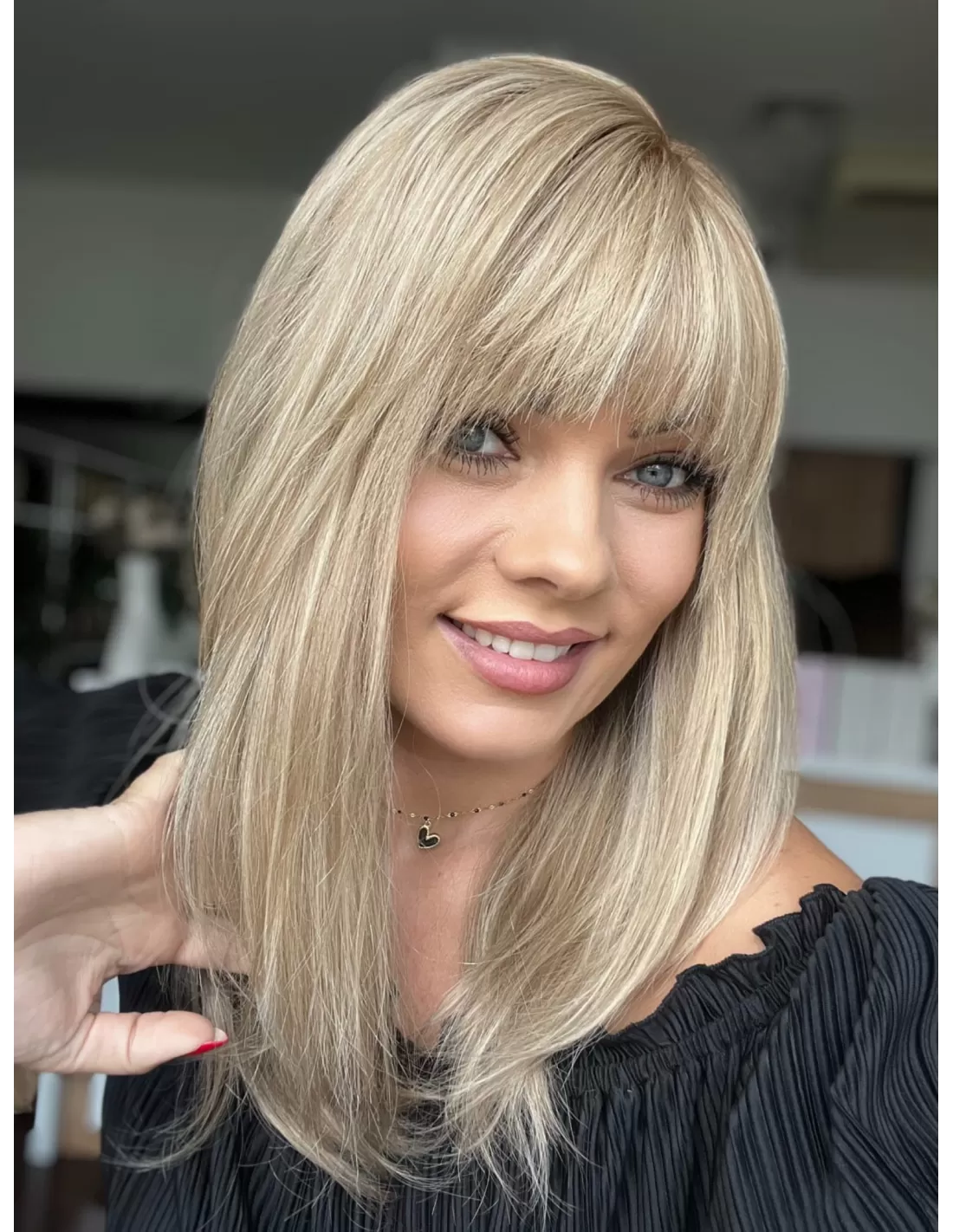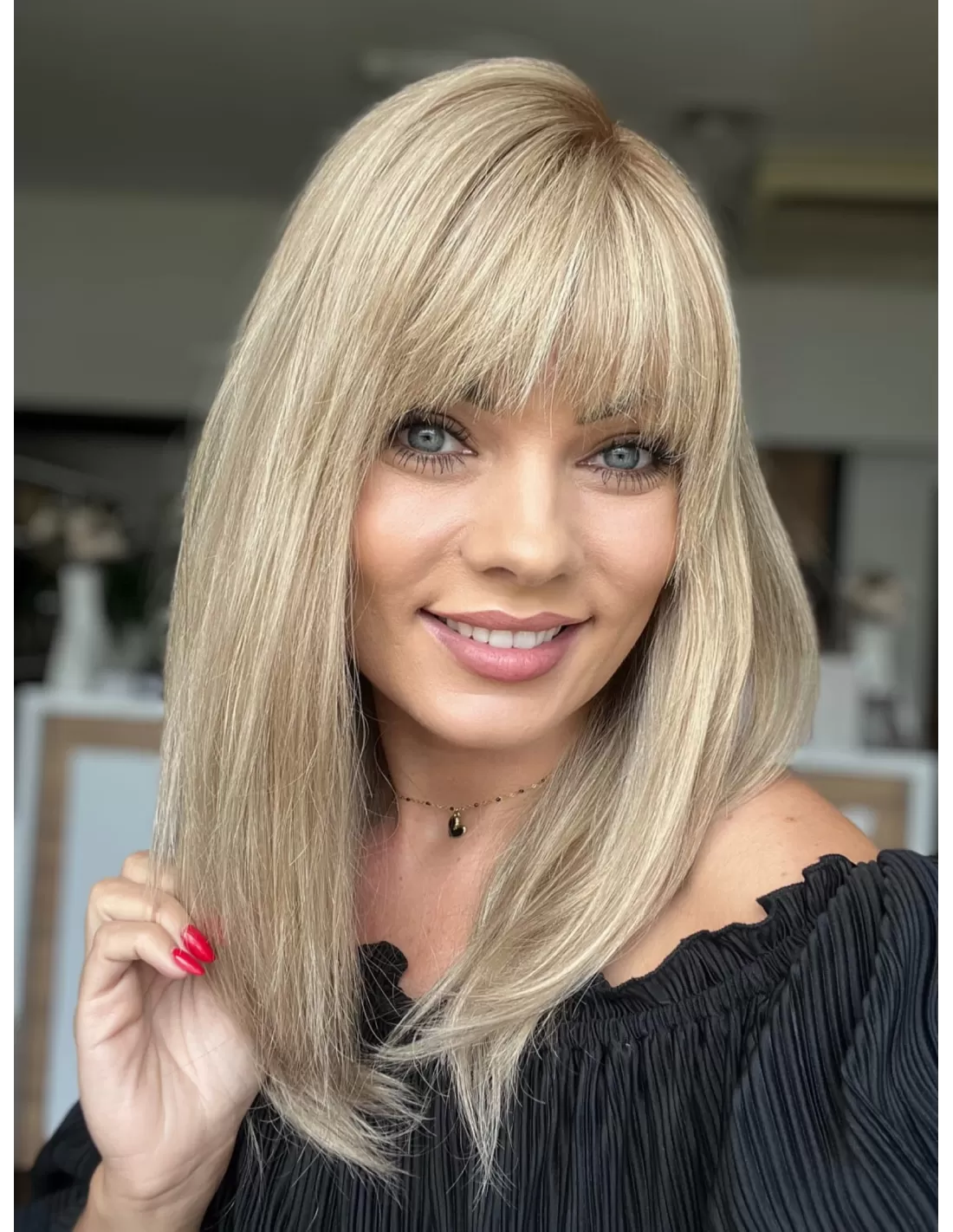 Jej naturalne włosy są jednocześnie delikatne w dotyku i trwałe, co sprawia, że noszenie tej peruki jest niezwykle komfortowe. Jej kolorystyka jest subtelna i harmonijna, co czyni ją idealnym wyborem do różnych okazji. Kolor tej peruki jest wspaniały - beżowy baleyage blond to elegancki i modny odcień, który daje subtelne przejścia między różnymi odcieniami blondu. Ten kolor dodaje naturalności i uroku. To nie tylko peruka, to prawdziwe dzieło sztuki, które podkreśla Twoją urodę i styl w wyjątkowy sposób. Oferuje ona nie tylko piękno, ale również pewność siebie i niezapomniany wygląd.