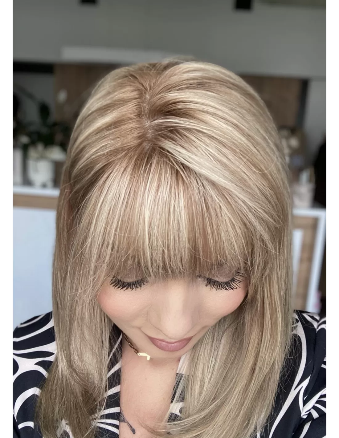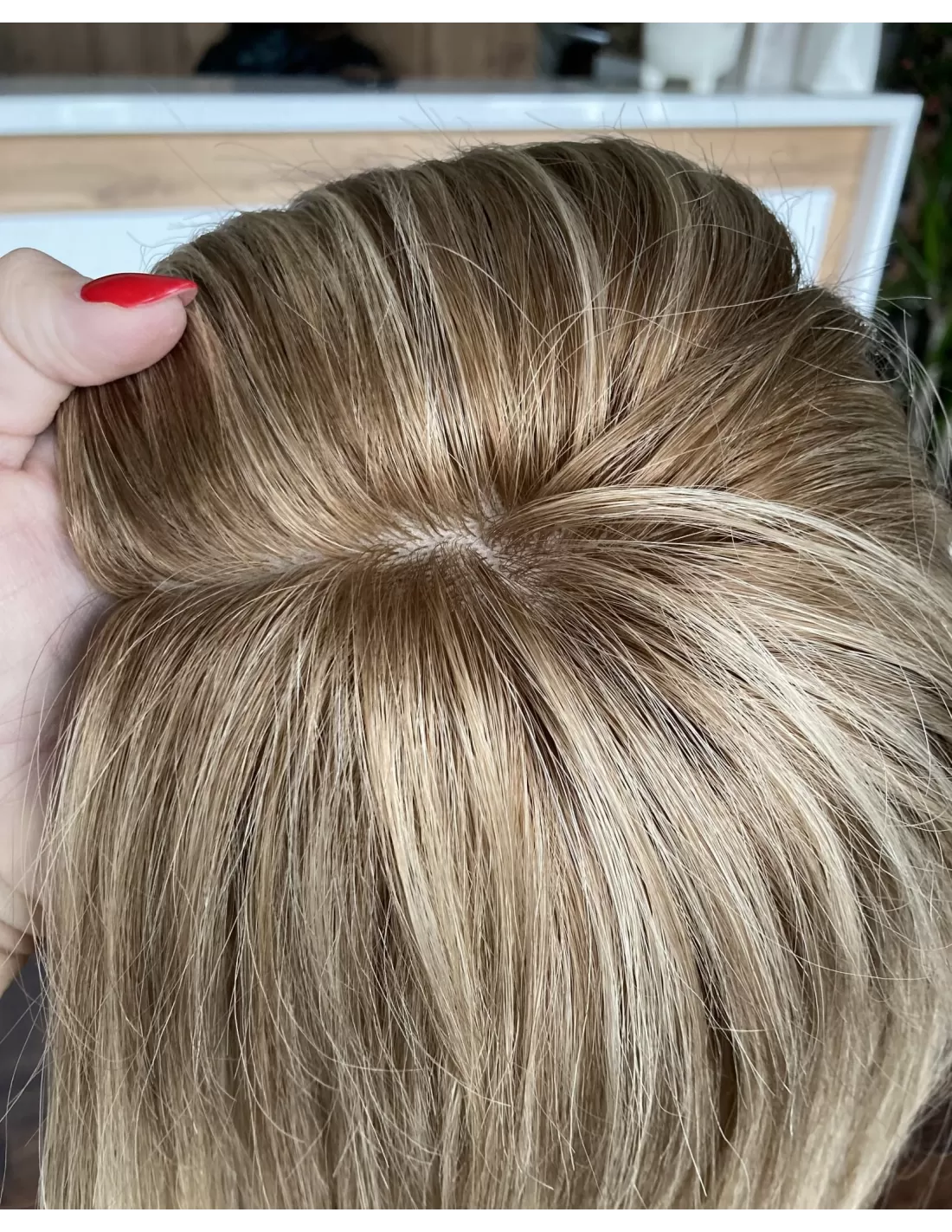 Mikroskóra na czubku peruki dokładnie imituje naturalną skórę głowy, co sprawia, że peruka wygląda jeszcze bardziej realistycznie.