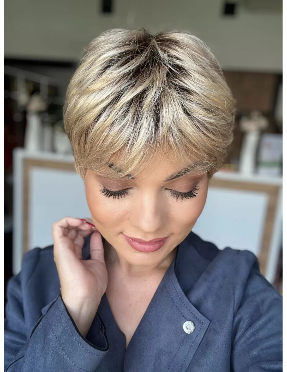 Włosy w peruce są plastyczne dzięki czemu możesz je dowolnie układać i zmieniać przedziałek, tworząc przy tym różnorodne fryzury.