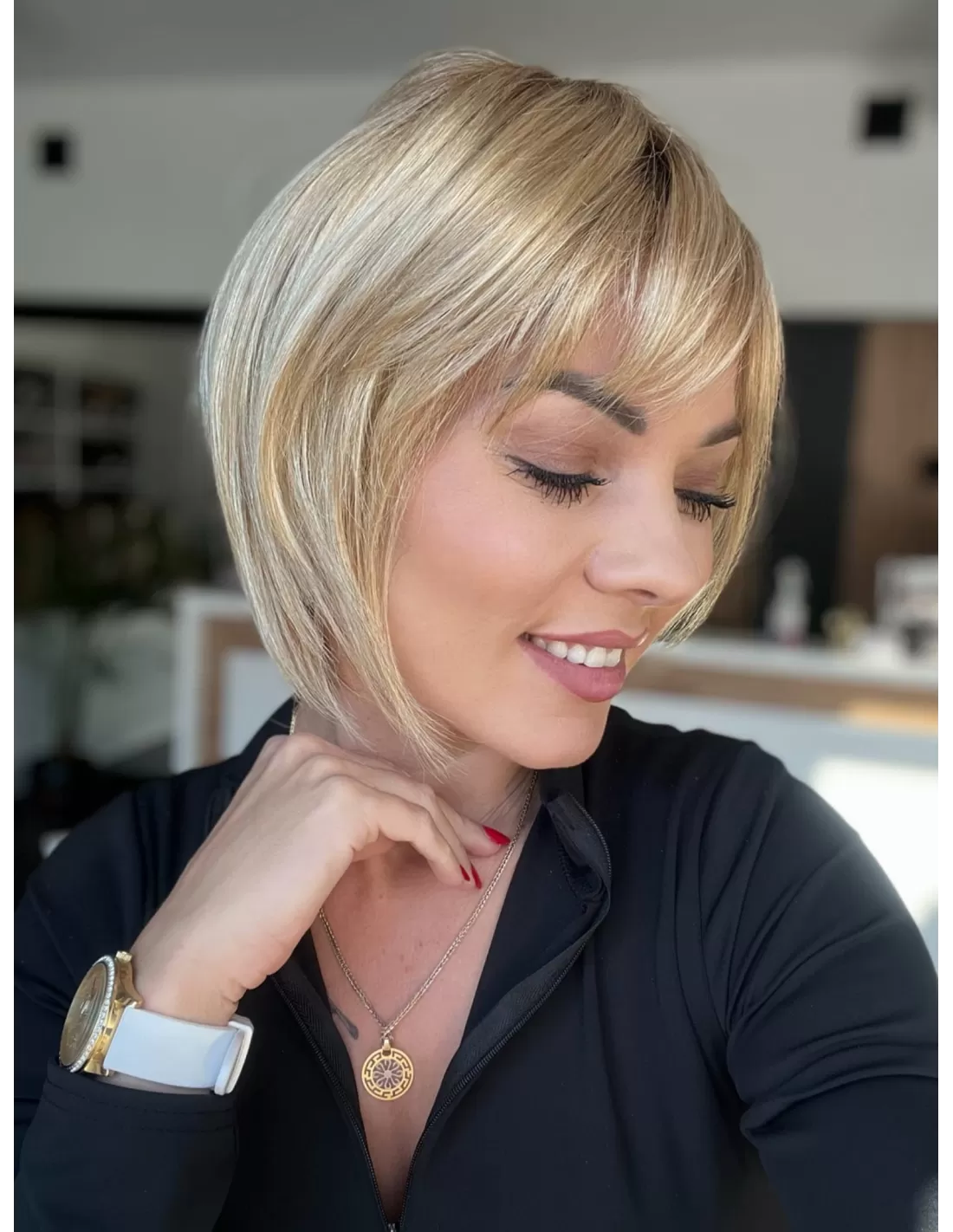 Włosy w peruce są plastyczne dzięki czemu możesz je dowolnie układać i zmieniać przedziałek, tworząc przy tym różnorodne fryzury.