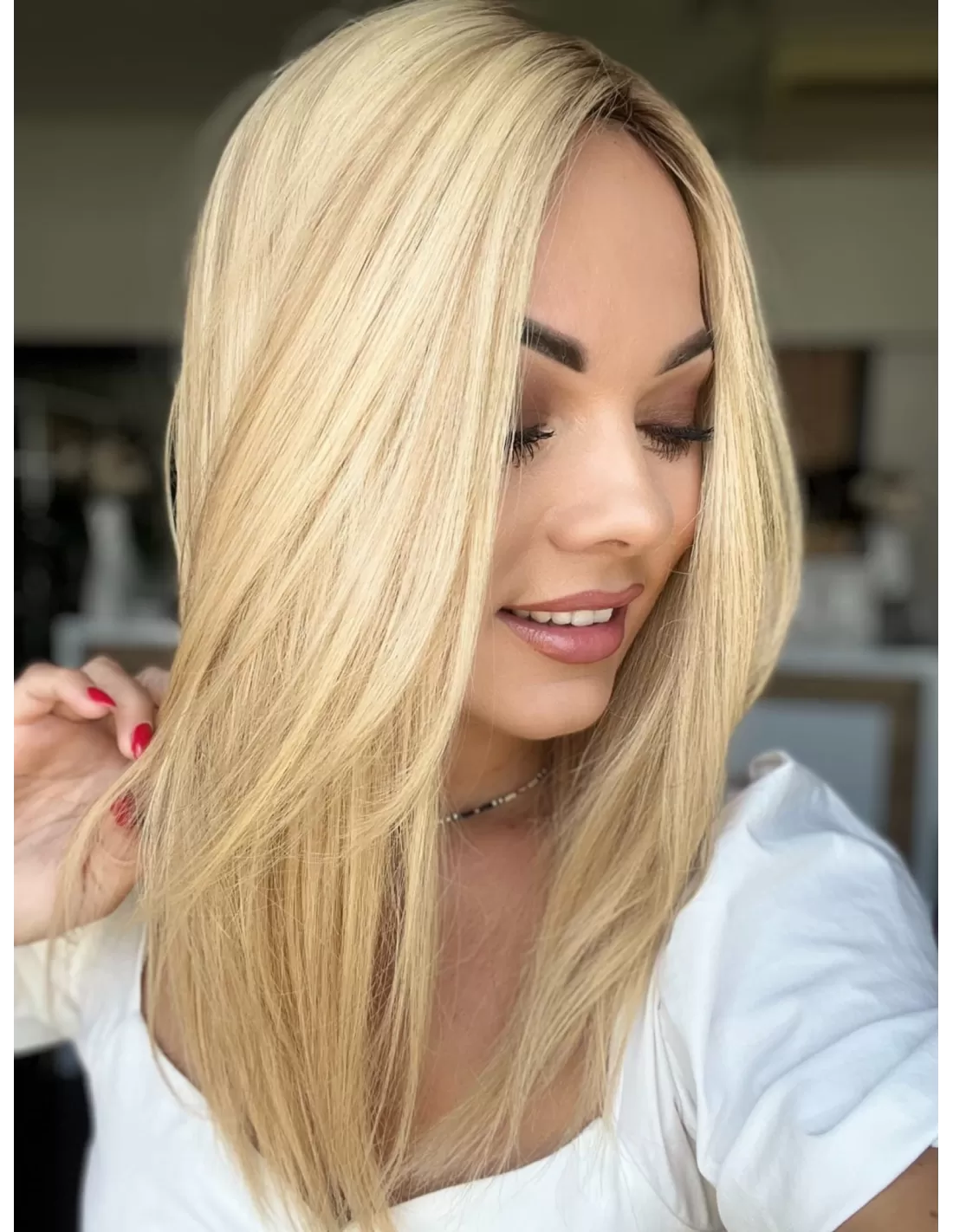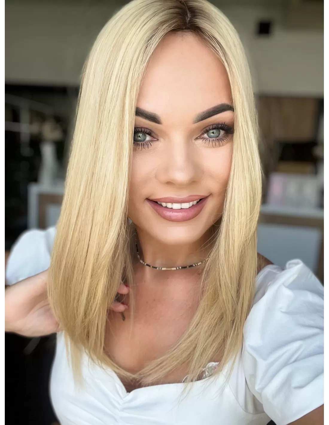Topper Kaja, to absolutna definicja elegancji i subtelności. Jego lśniące włosy w odcieniach słonecznego blondu promieniują ciepłem i świeżością. Subtelny odrost t w kolorze średniego blondu nadaje mu niepowtarzalny charakter. To idealny dodatek, który dodaje blasku i pewności siebie, sprawiając, że każdy dzień staje się wyjątkowy.