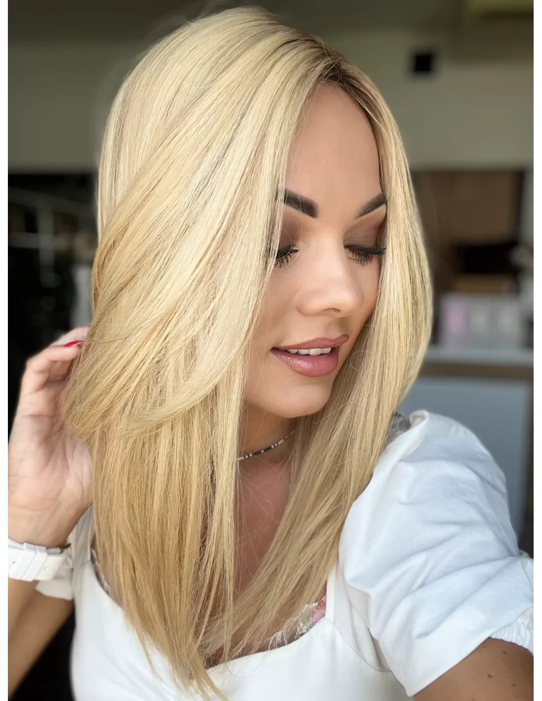Najwyższa Jakość Włosów Naturalnych: Topper Kaja wykonany jest z najwyższej jakości włosów naturalnych europejskich, co gwarantuje piękny wygląd i trwałość. Włosy te są gładkie, lśniące i wyjątkowo naturalne w dotyku.