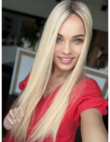 Topper Kejsi, to absolutna definicja elegancji i subtelności. Jego lśniące włosy w odcieniach słonecznego blondu promieniują ciepłem i świeżością. Subtelny odrost t w kolorze średniego ciepłego blondu nadaje mu niepowtarzalny charakter. To idealny dodatek, który dodaje blasku i pewności siebie, sprawiając, że każdy dzień staje się wyjątkowy.