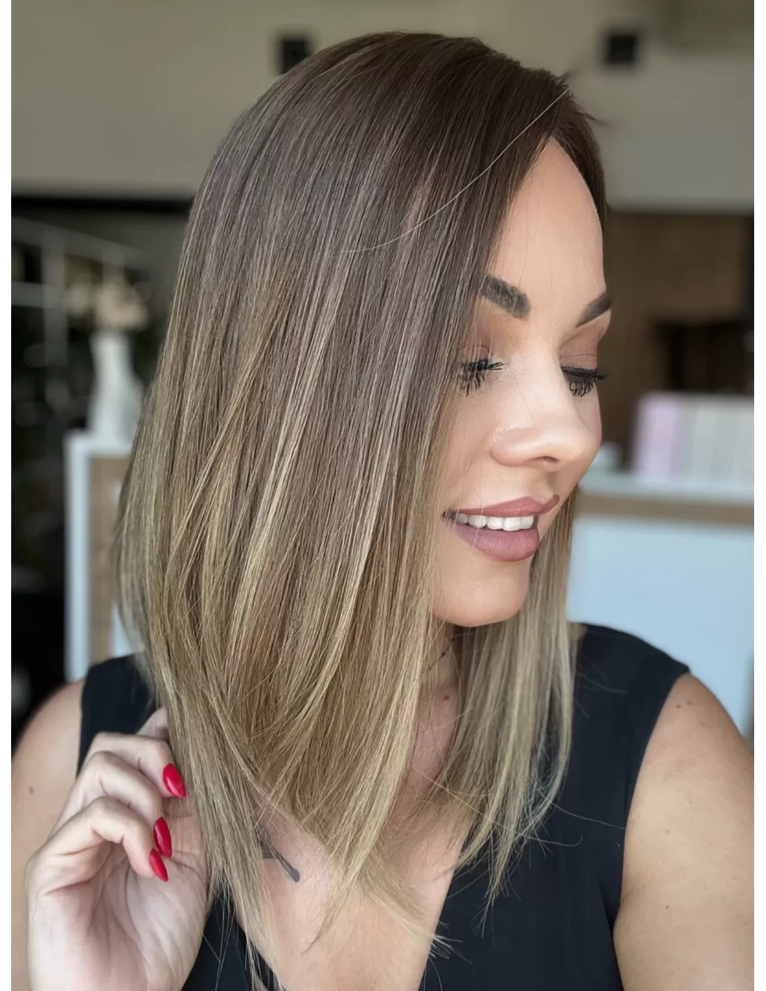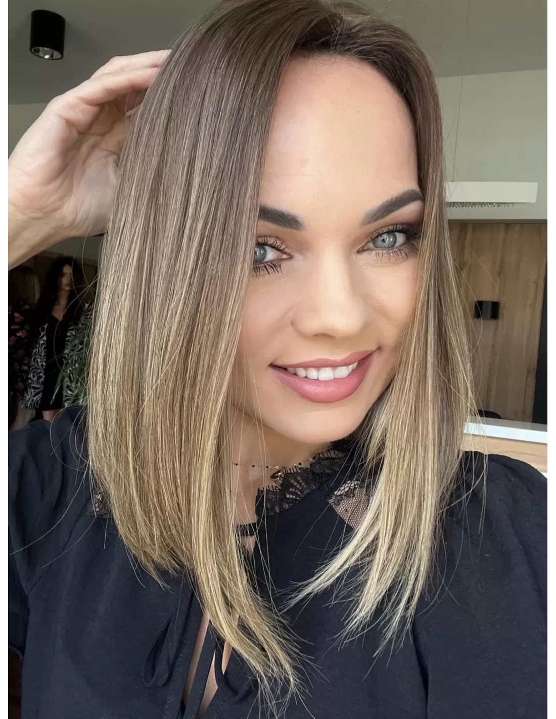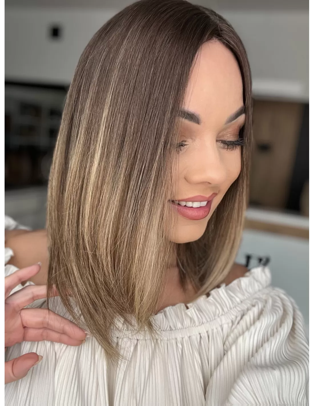Kolor toppera to połączenie średniego brązu z bardzo subtelnym przejściem w jaśniejszą tonacje blondu.