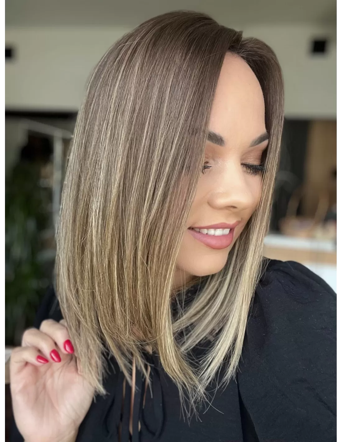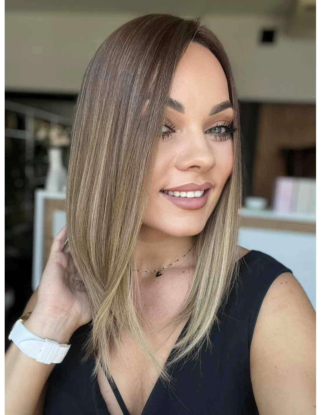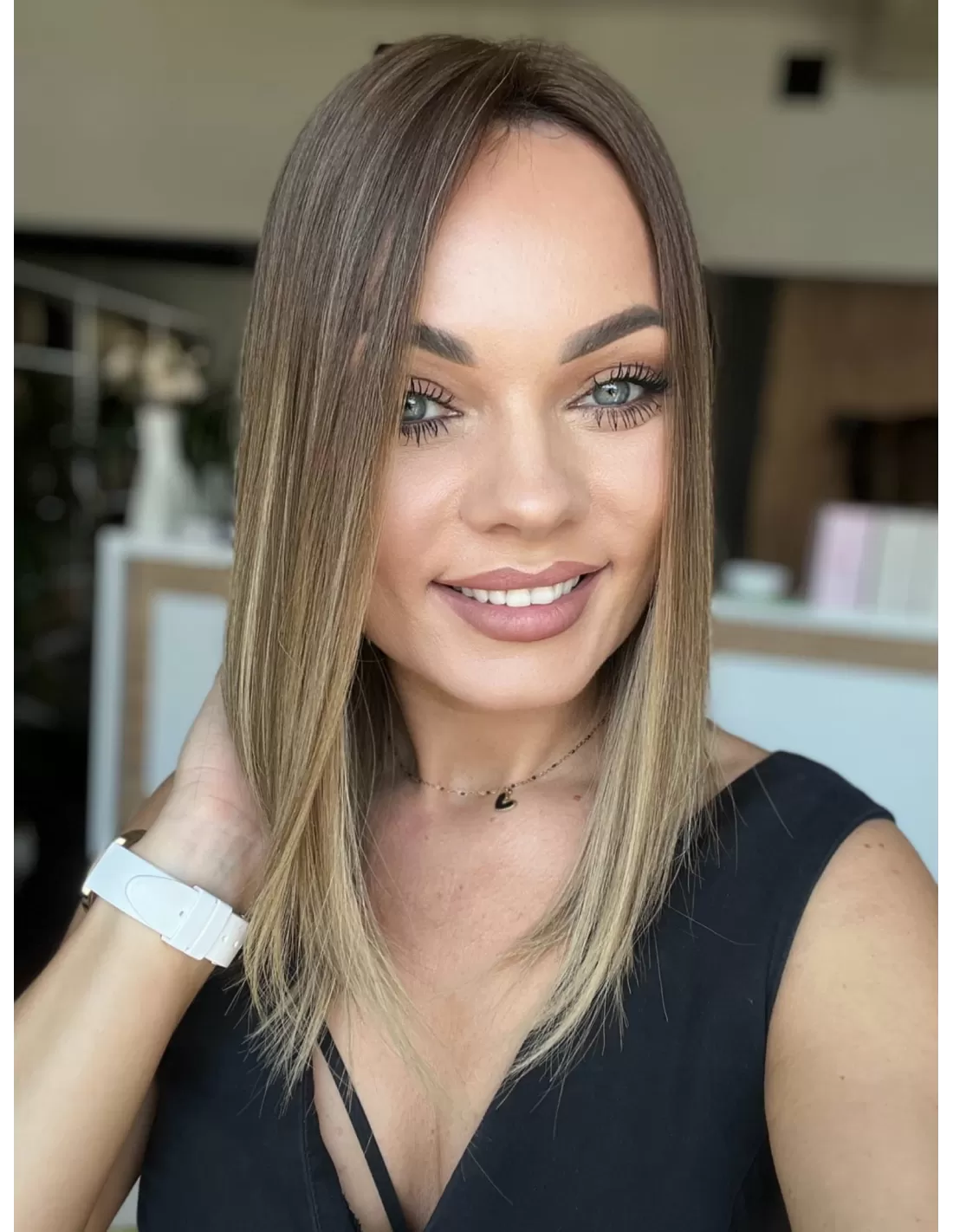 Kolor toppera to połączenie średniego brązu z bardzo subtelnym przejściem w jaśniejszą tonacje blondu.