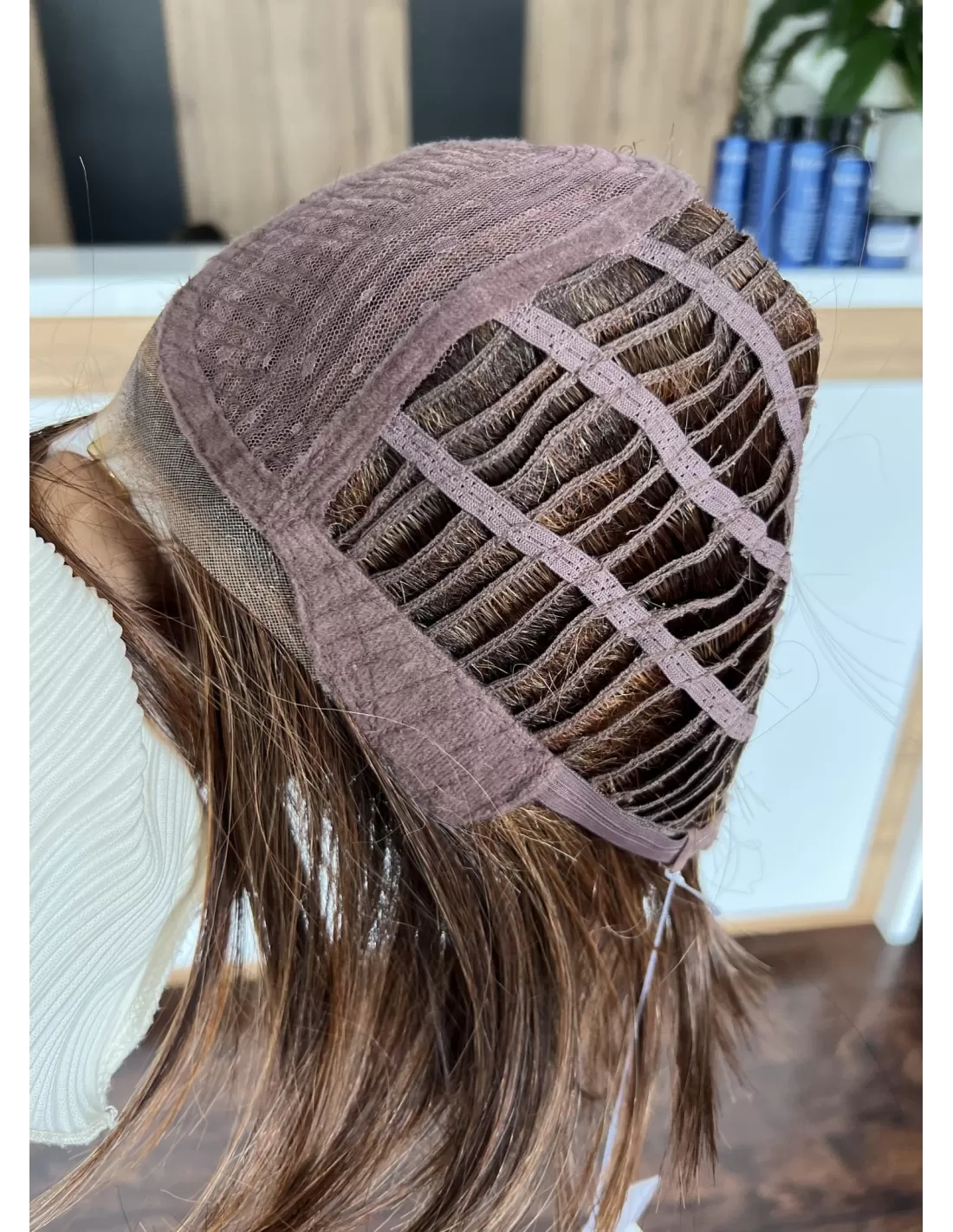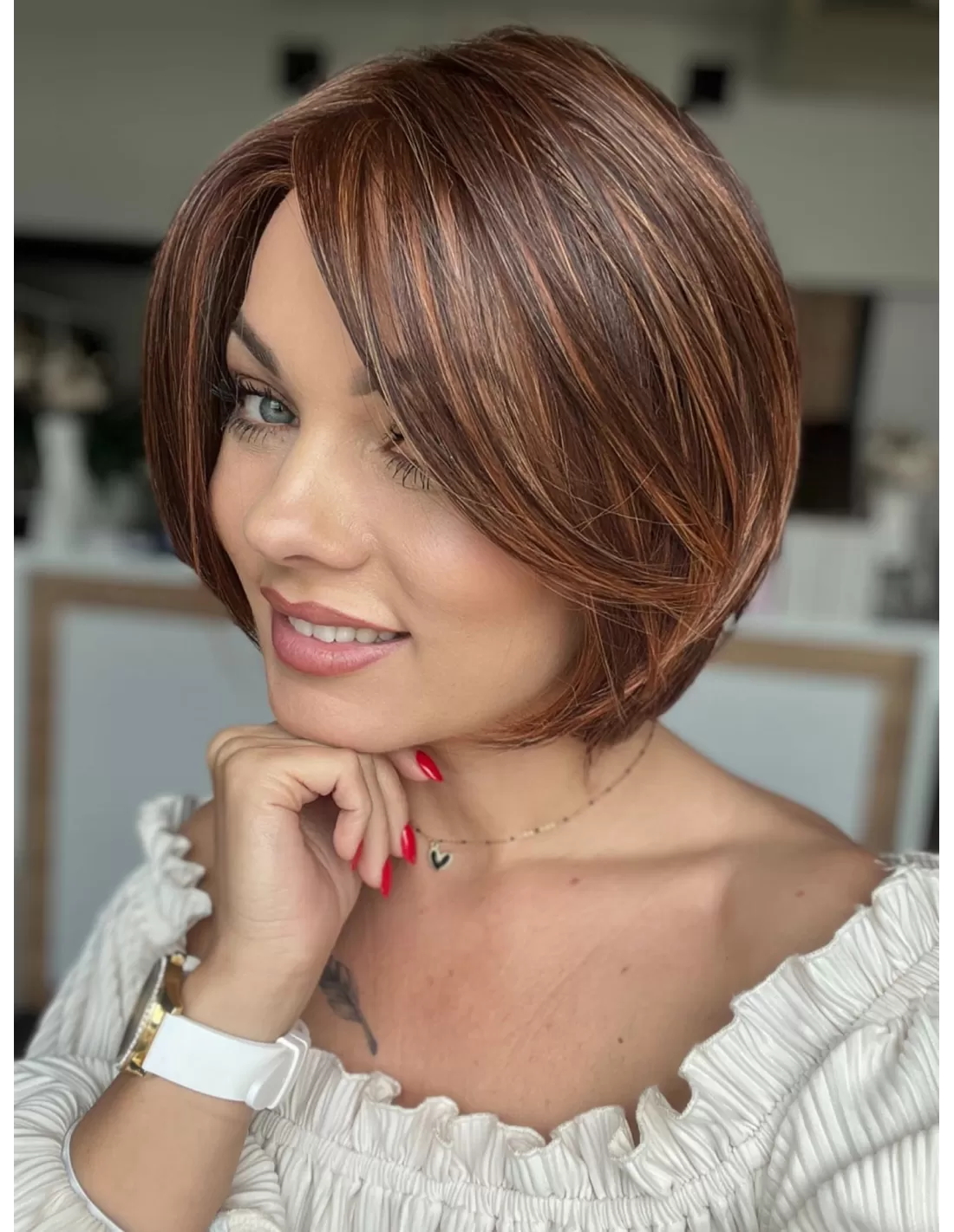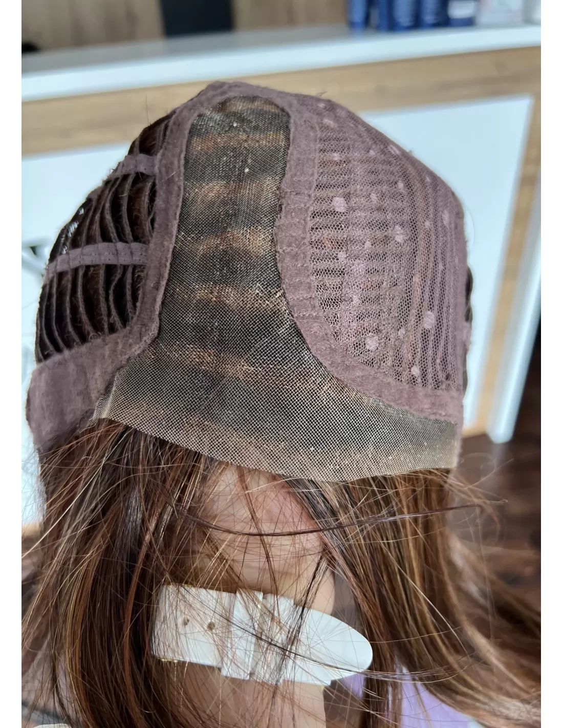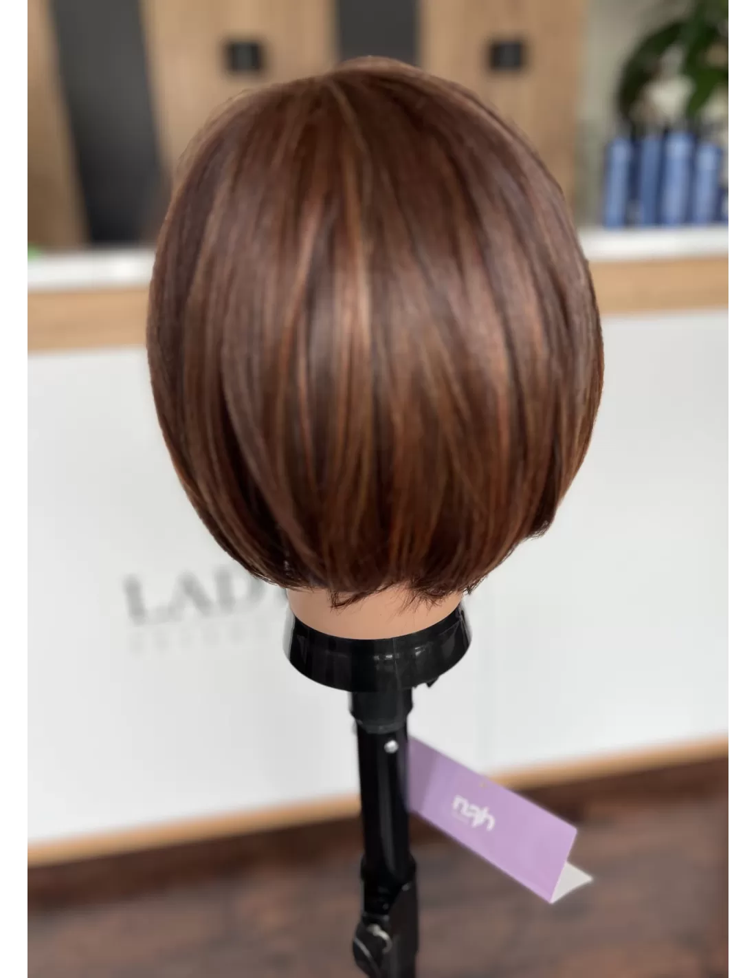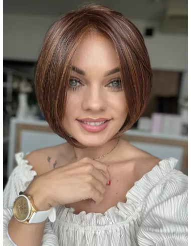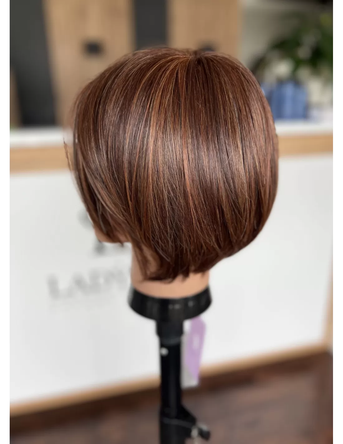 Prezentowany kolor peruki to kasztanowy brąz z refleksami
