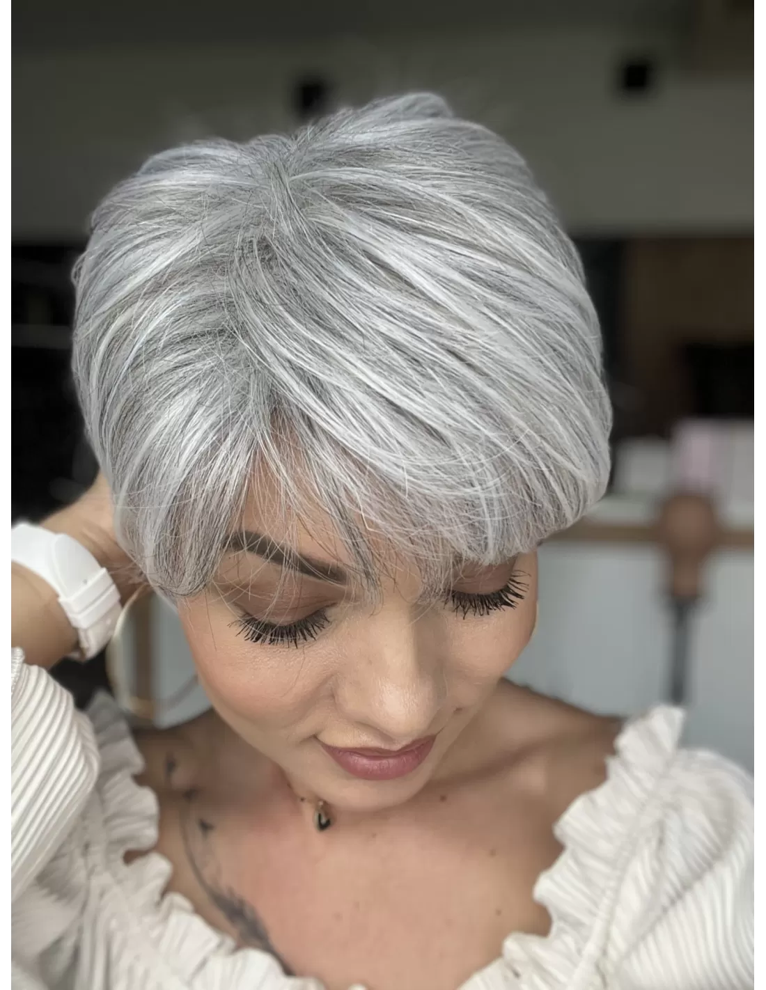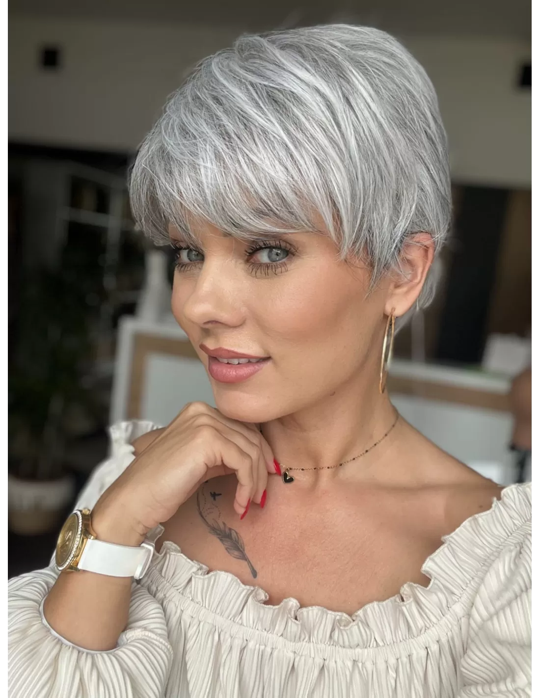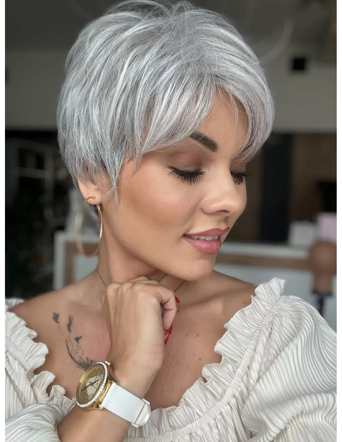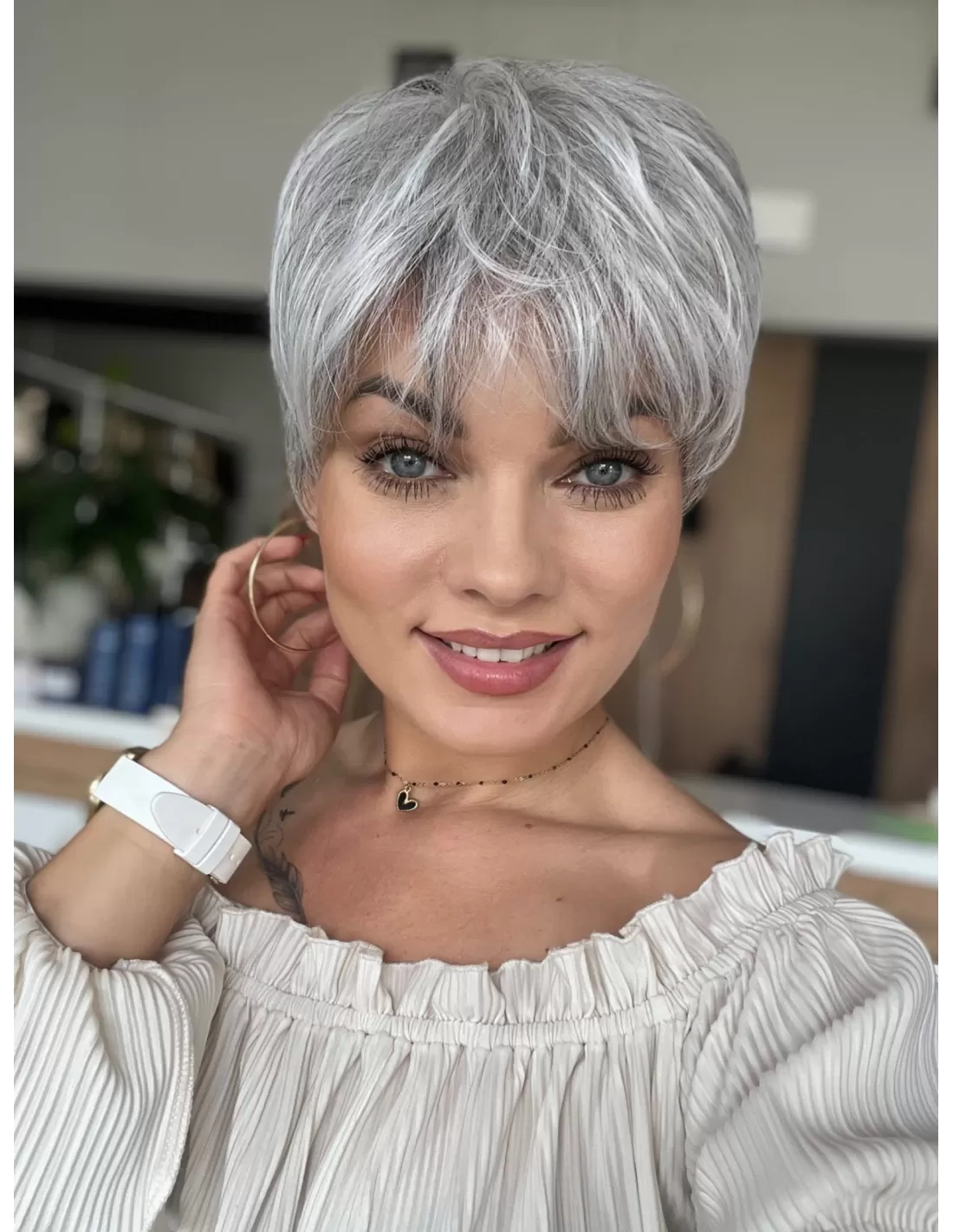 Prezentowany kolor peruki to sól pieprz