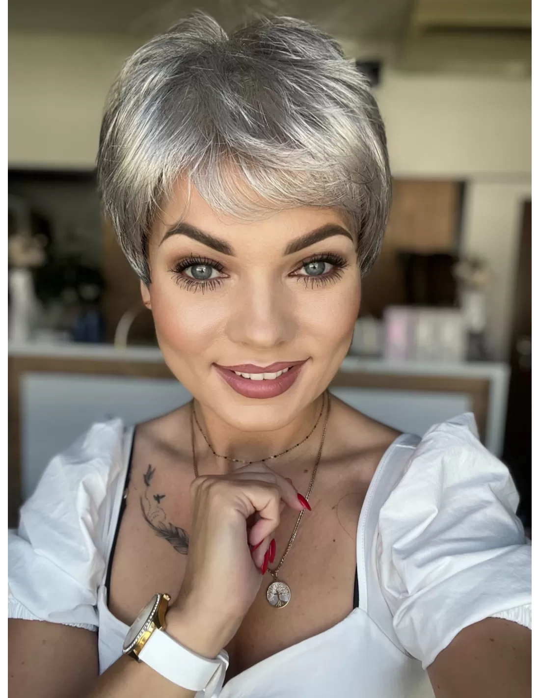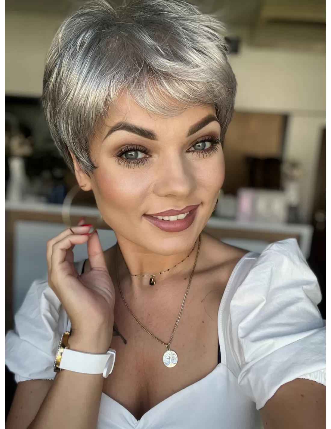 Włosy w peruce są plastyczne dzięki czemu możesz je dowolnie układać i zmieniać przedziałek, tworząc przy tym różnorodne fryzury.