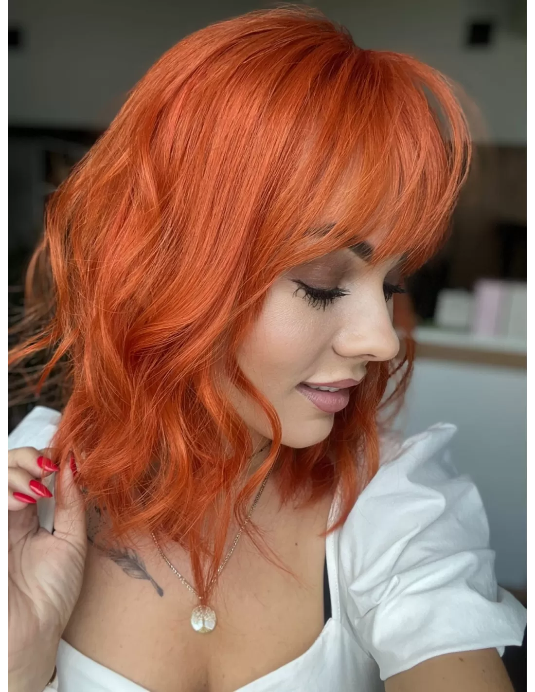 Topper Joni topper to harmonia pomiędzy namiętnością a pewnością siebie. Jest to odcień, który emanuje energią i odwagą, przyciągając uwagę wszystkich do siebie. To barwa dla kobiet, które czerpią siłę z własnego charakteru i nie boją się być sobą. Włosy w odcieniu rudości wyrażają niezależność, silną osobowość i niepowtarzalny styl. To kolor, który mówi o odwadze i pewności siebie, jednocześnie podkreślając naturalne piękno każdej kobiety.