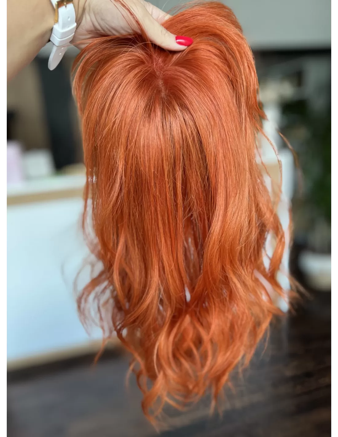 Konstrukcja bazująca na mono: Topper ten wyposażony jest w bazę mono, co oznacza, że włosy są ręcznie tkane do delikatnej siateczki, co zapewnia doskonałe naturalne wykończenie. Mono baza jest niezwykle delikatna dla skóry głowy i zapewnia efekt "scalp-like", co sprawia, że toper jest trudny do odróżnienia od własnych włosów.