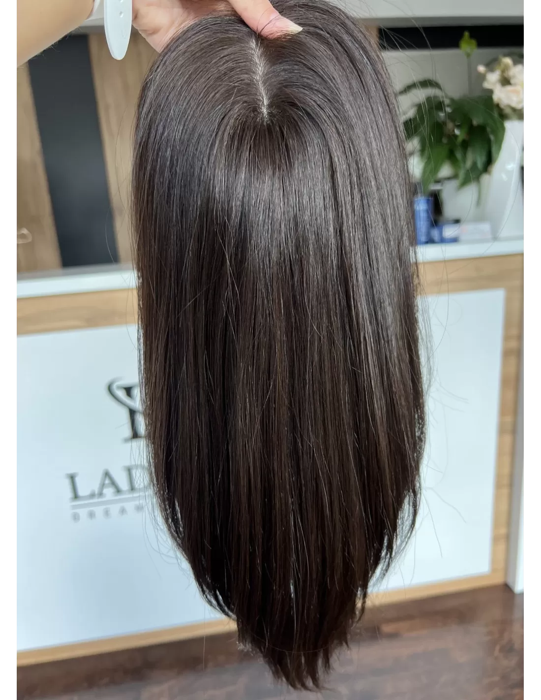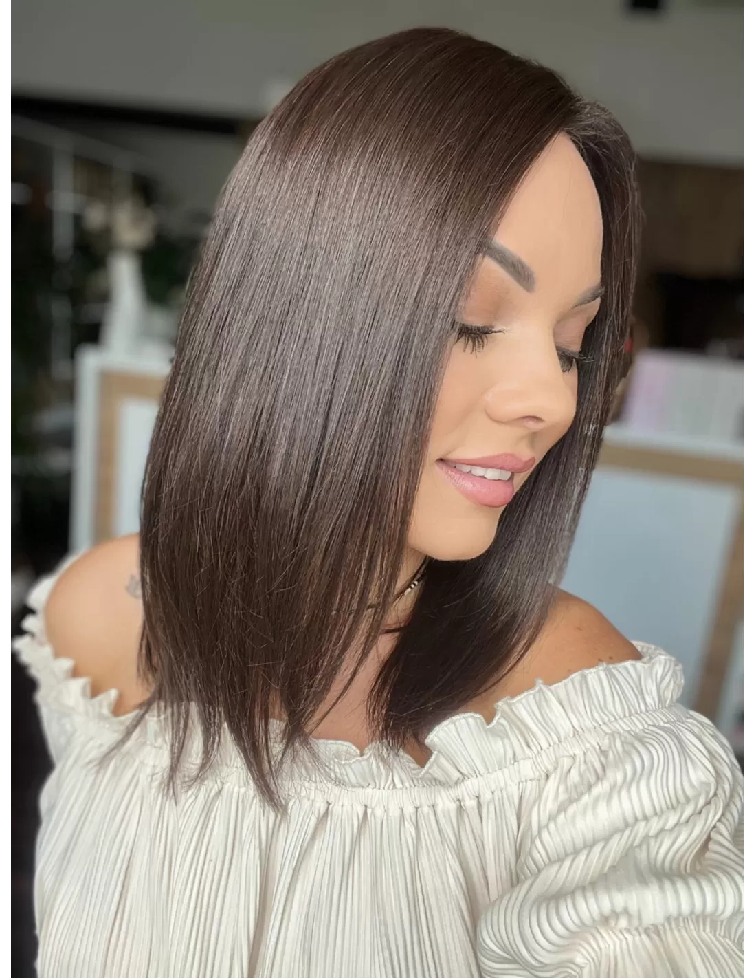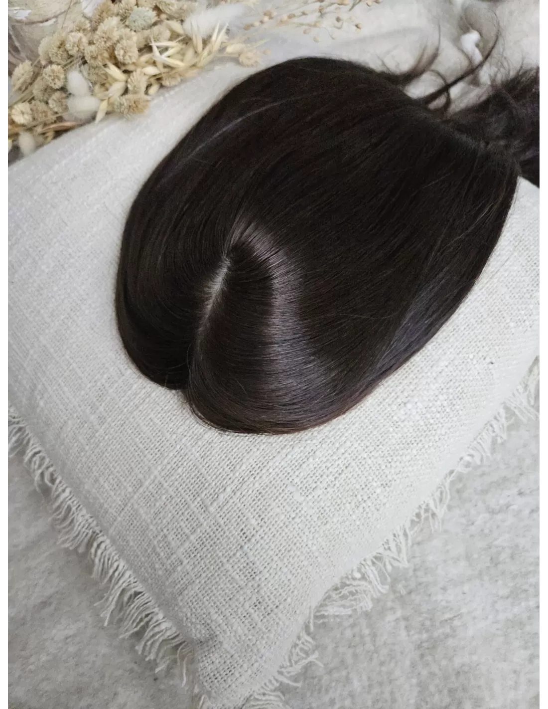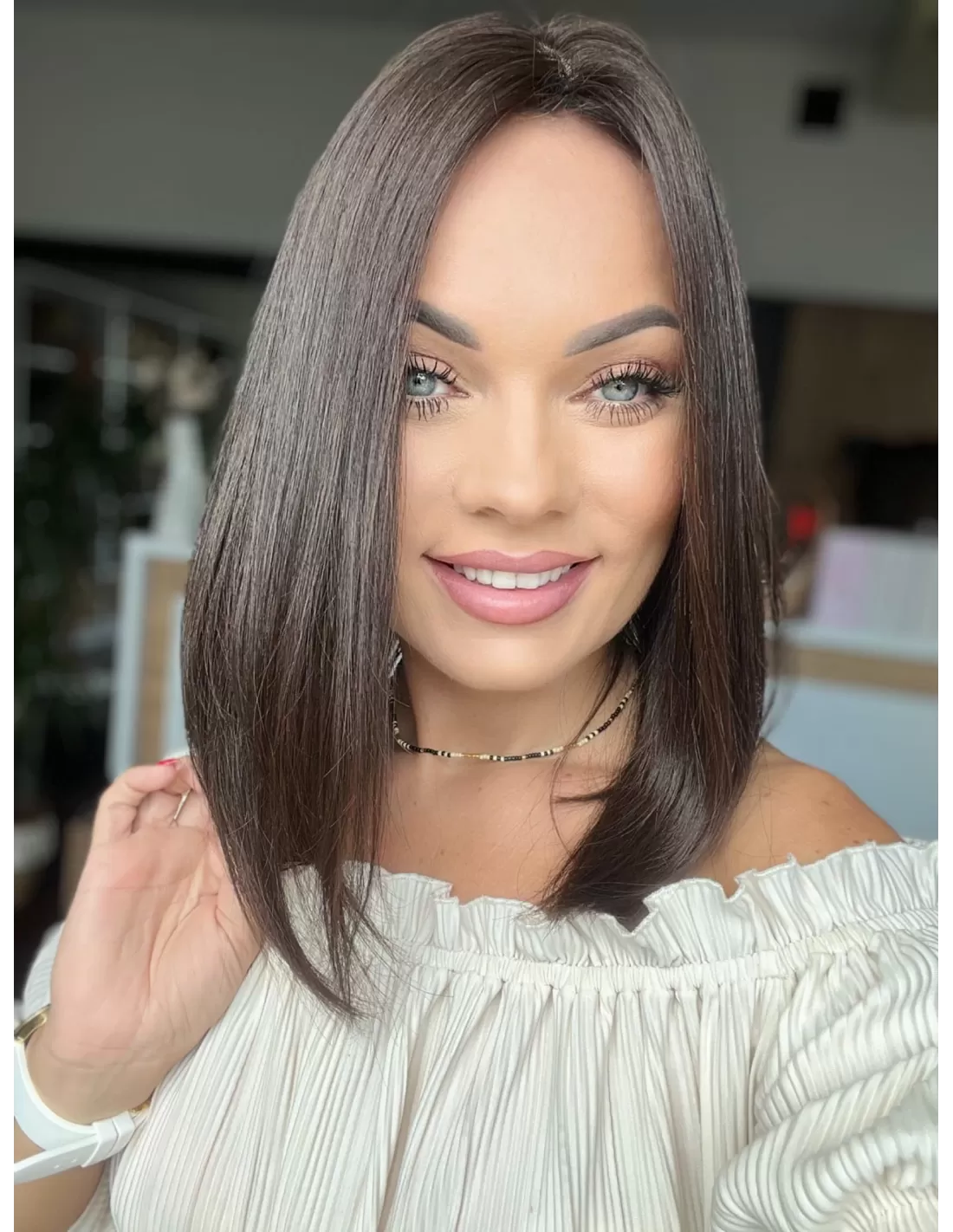 Topper Nila powstał z wyselekcjonowanych, naturalnych włosów w głębokim odcieniu ciemnego czekoladowego brązu (#2). Nila, to kwintesencja elegancji i luksusu. Jego gładka, jedwabista struktura subtelnie otula fryzurę, dodając jednocześnie wyjątkowego blasku. Każdy pasmo toppera emanuje naturalnym pięknem, ponieważ składa się z autentycznych włosów, co gwarantuje niezrównaną jakość. To idealne rozwiązanie dla tych, którzy pragną osiągnąć perfekcyjny efekt, łączący autentyczność z wyrafinowanym stylem.