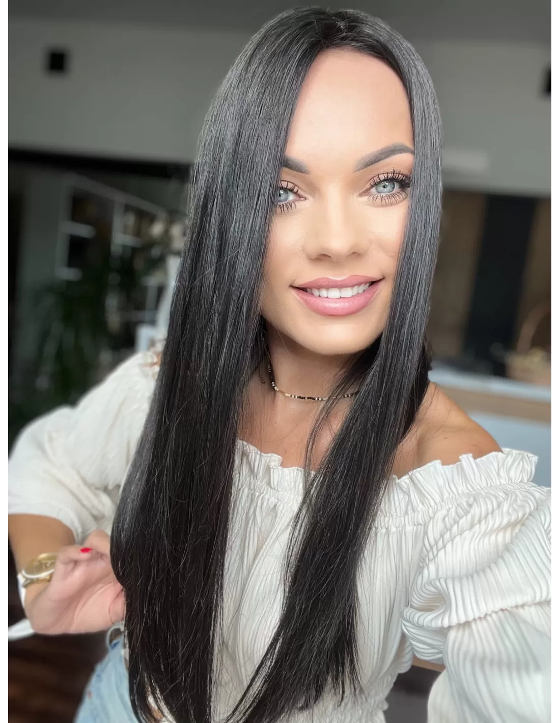 Topper INA wykonany jest z włosów naturalnych o najwyższej jakości. To idealne rozwiązanie dla osób pragnących uzyskać pełny, gęsty i naturalny wygląd swoich włosów. Jego kolor to bardzo ciemny brąz (#1B ), co zapewnia elegancki i głęboki wygląd.