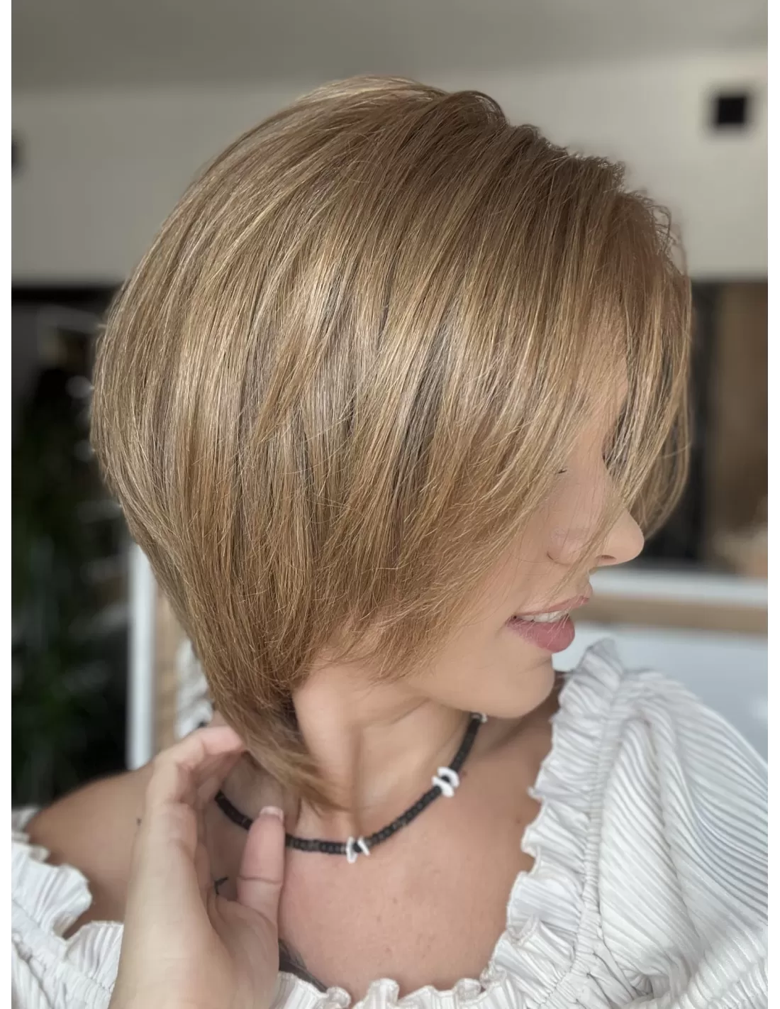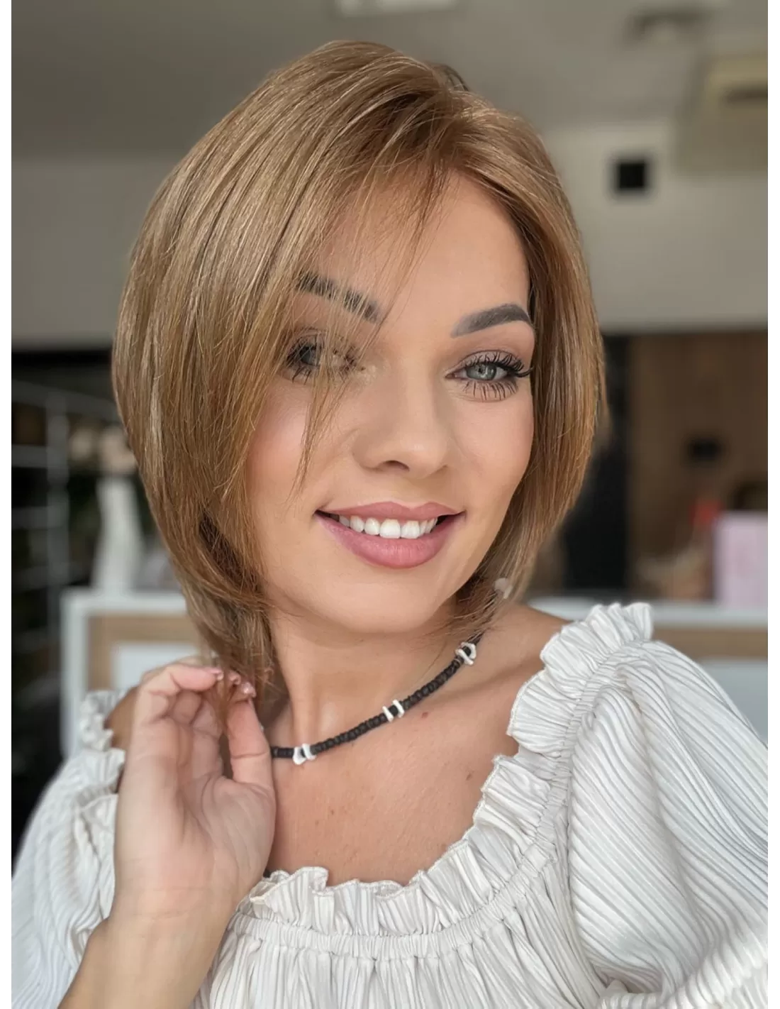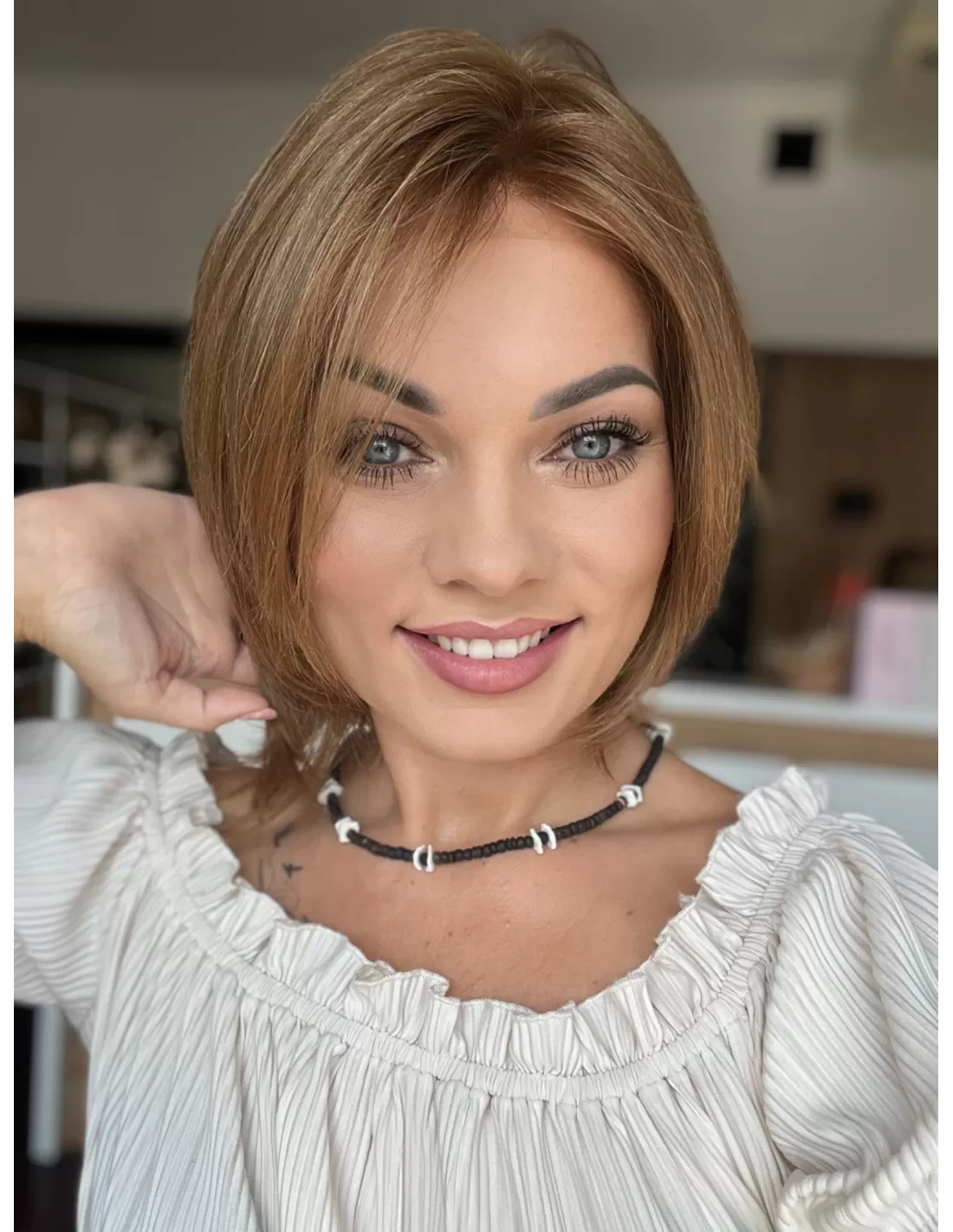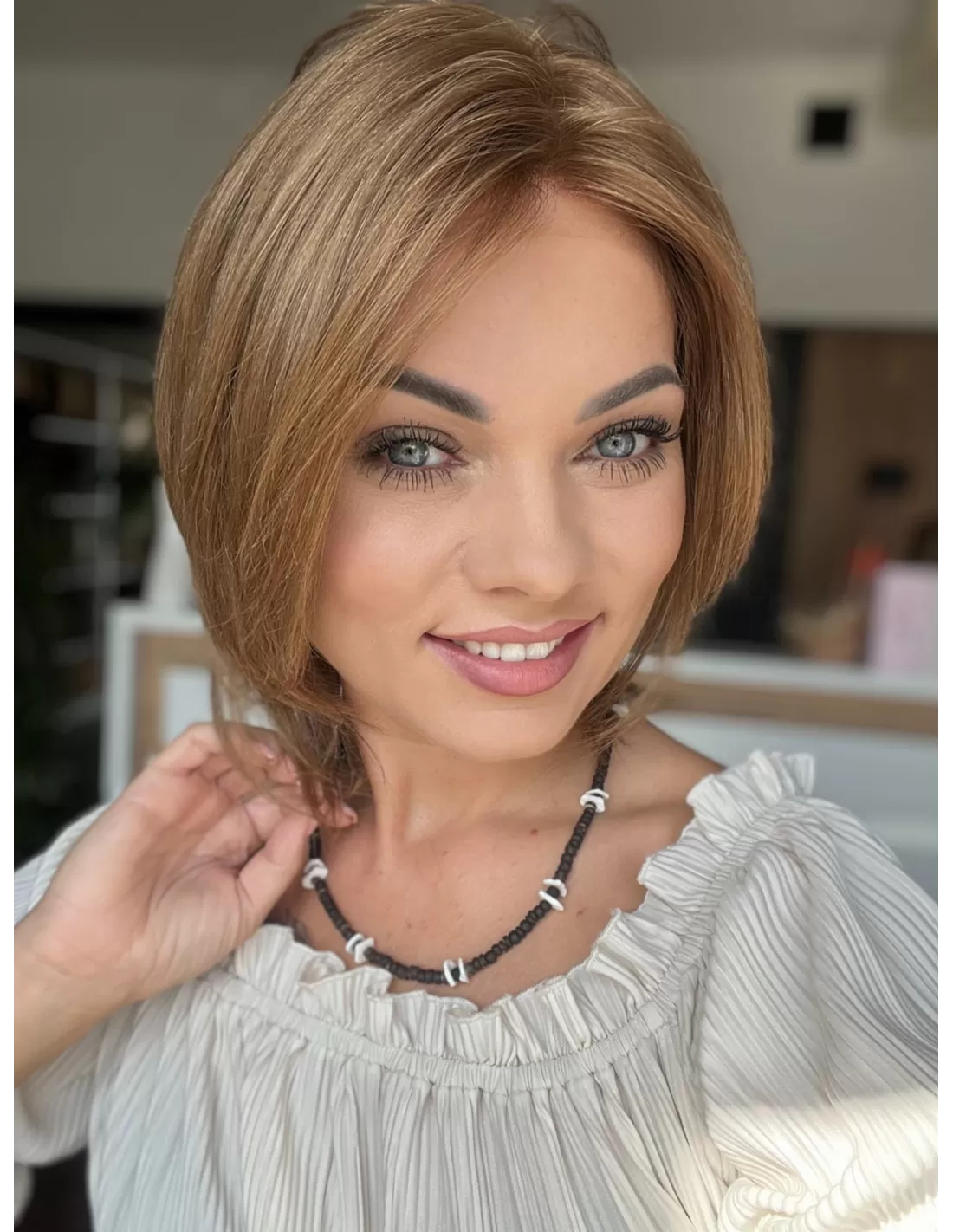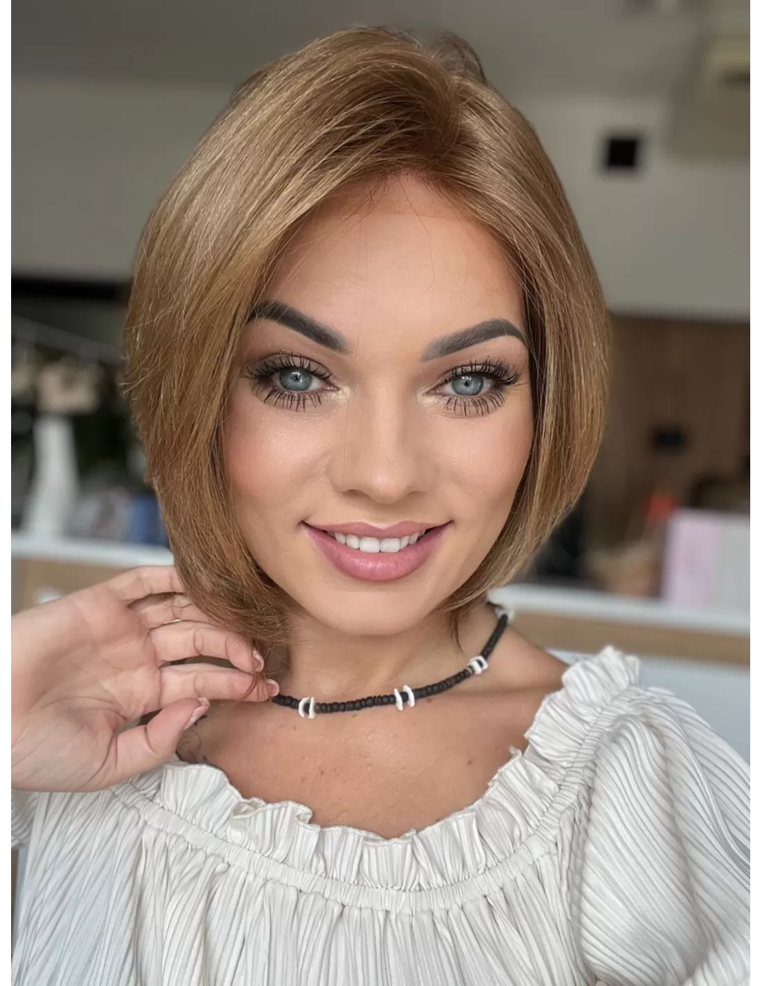 Elastyczny tył zapewnia idealne dopasowanie, a regulacje umożliwiają dostosowanie do indywidualnych preferencji. Odcień naturalnego karmelowego blondu nadaje peruce wyrafinowanego charakteru, podkreślając jej elegancję., idealna dla pań ceniących wygodę i krótkie fryzury. Peruka Idalia AT to doskonały wybór dla tych Pań , które pragną zachować styl i elegancję w prosty sposób.