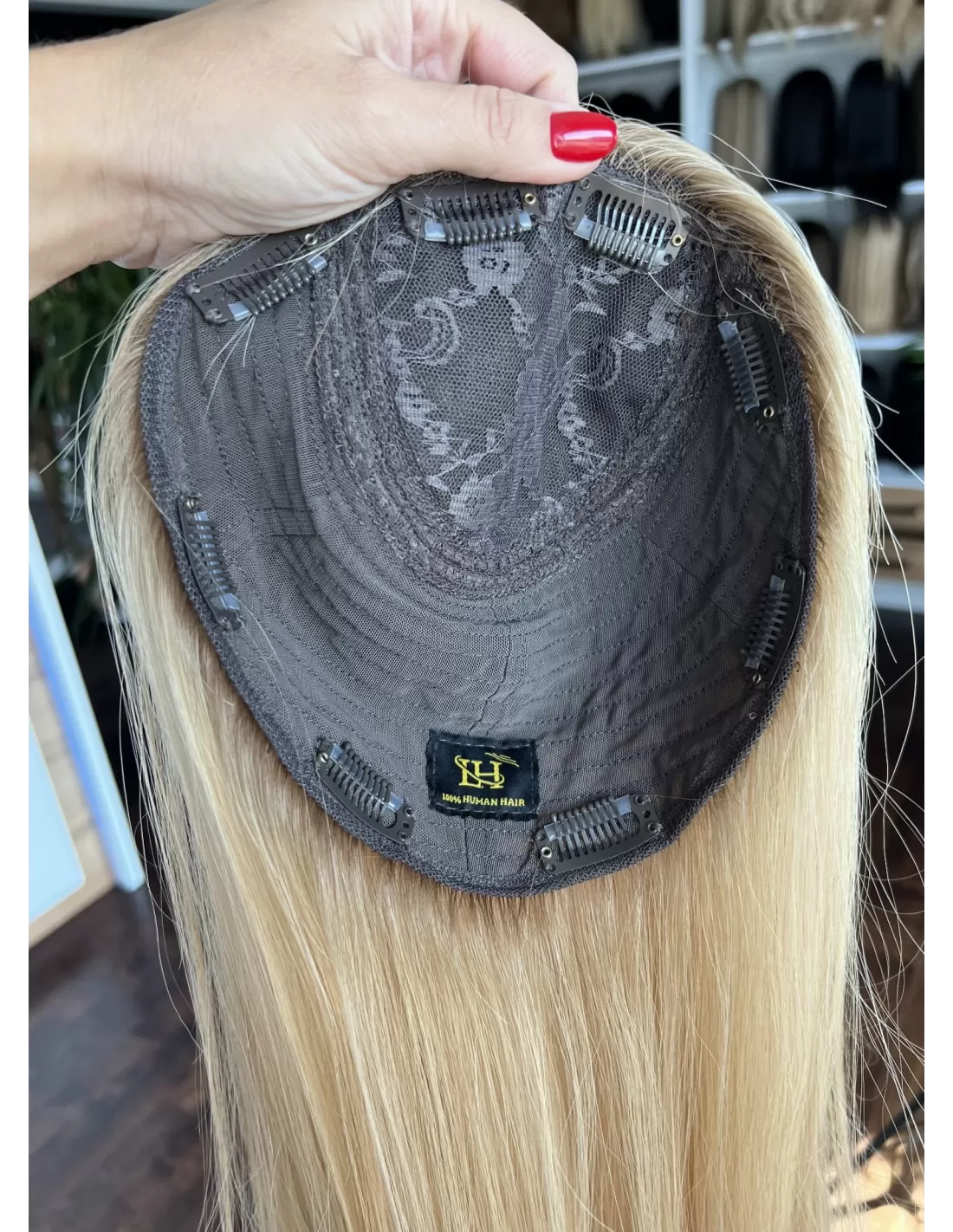 Dzięki 8 spinkom typu clip-in, topper mocuje się stabilnie i bezpiecznie, a jego zakładanie i zdejmowanie jest szybkie i wygodne. To idealne rozwiązanie dla kobiet, które cenią komfort i perfekcyjny wygląd w kilka chwil.