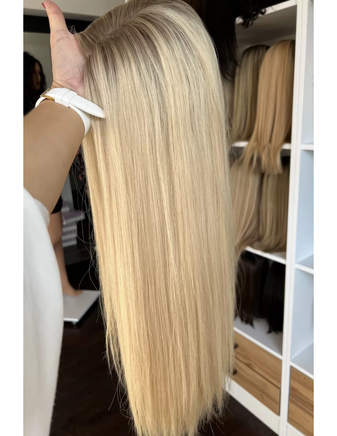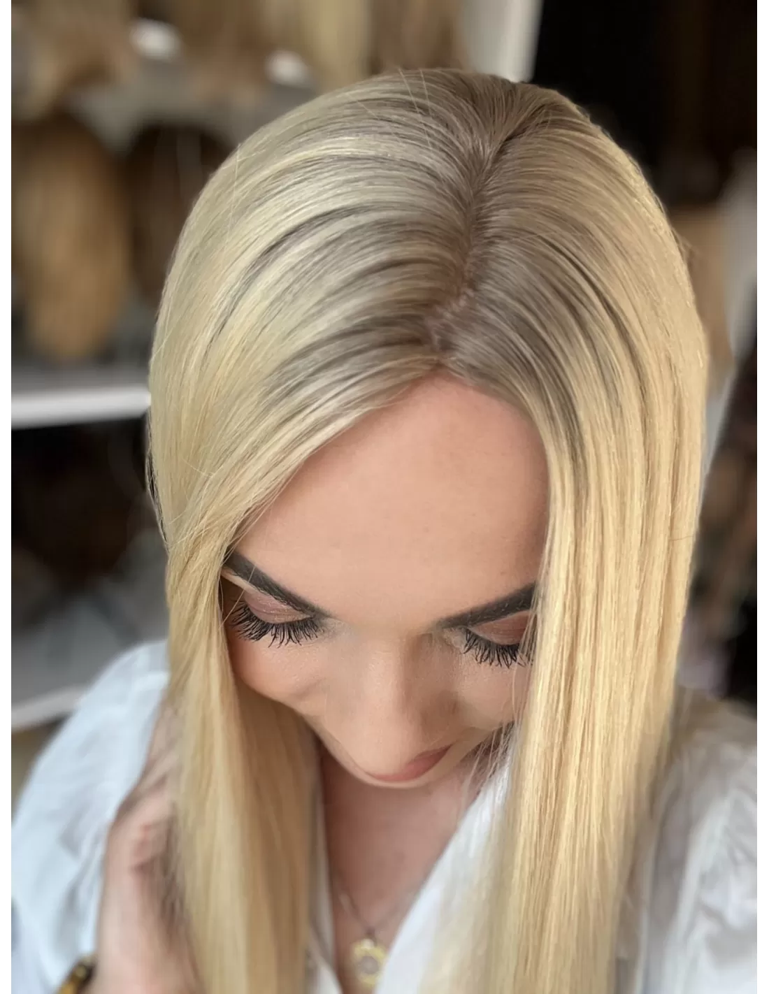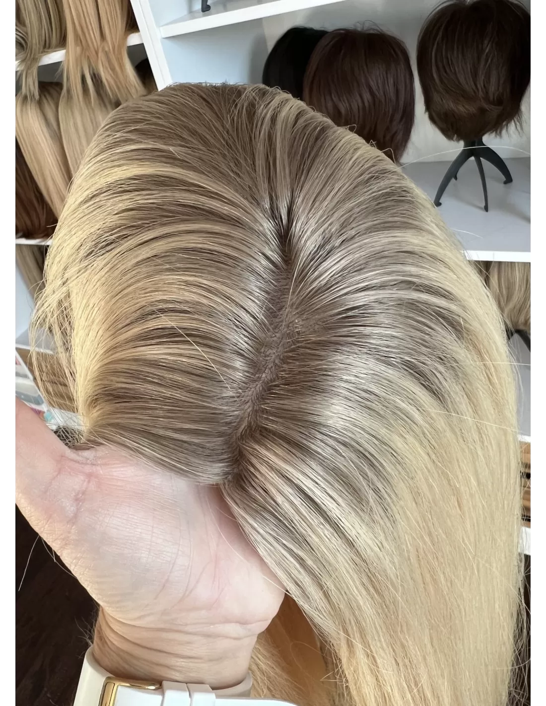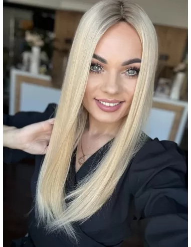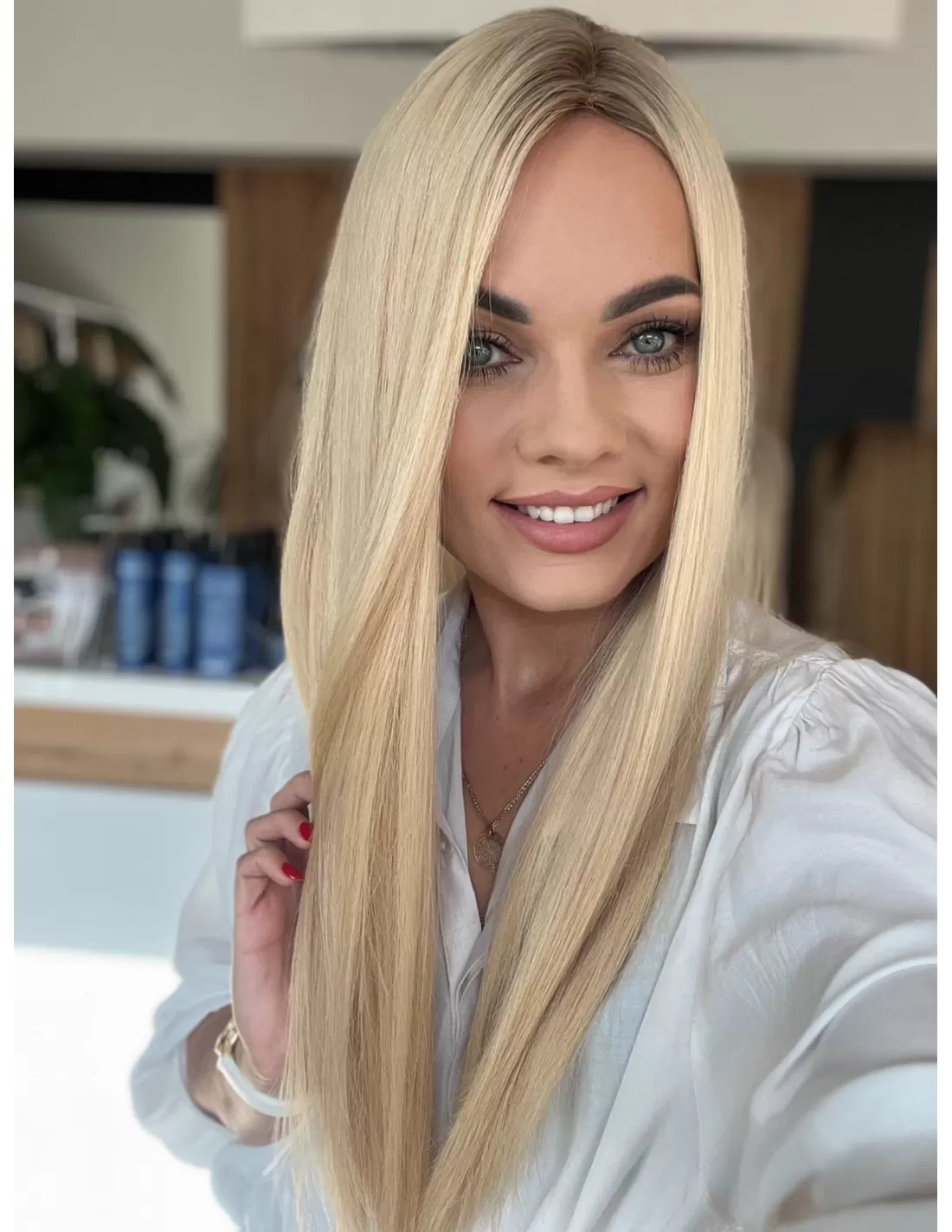 Topper Kejsi, to absolutna definicja elegancji i subtelności. Jego lśniące włosy w odcieniach słonecznego blondu promieniują ciepłem i świeżością. Subtelny odrost t w kolorze średniego ciepłego blondu nadaje mu niepowtarzalny charakter. To idealny dodatek, który dodaje blasku i pewności siebie, sprawiając, że każdy dzień staje się wyjątkowy.