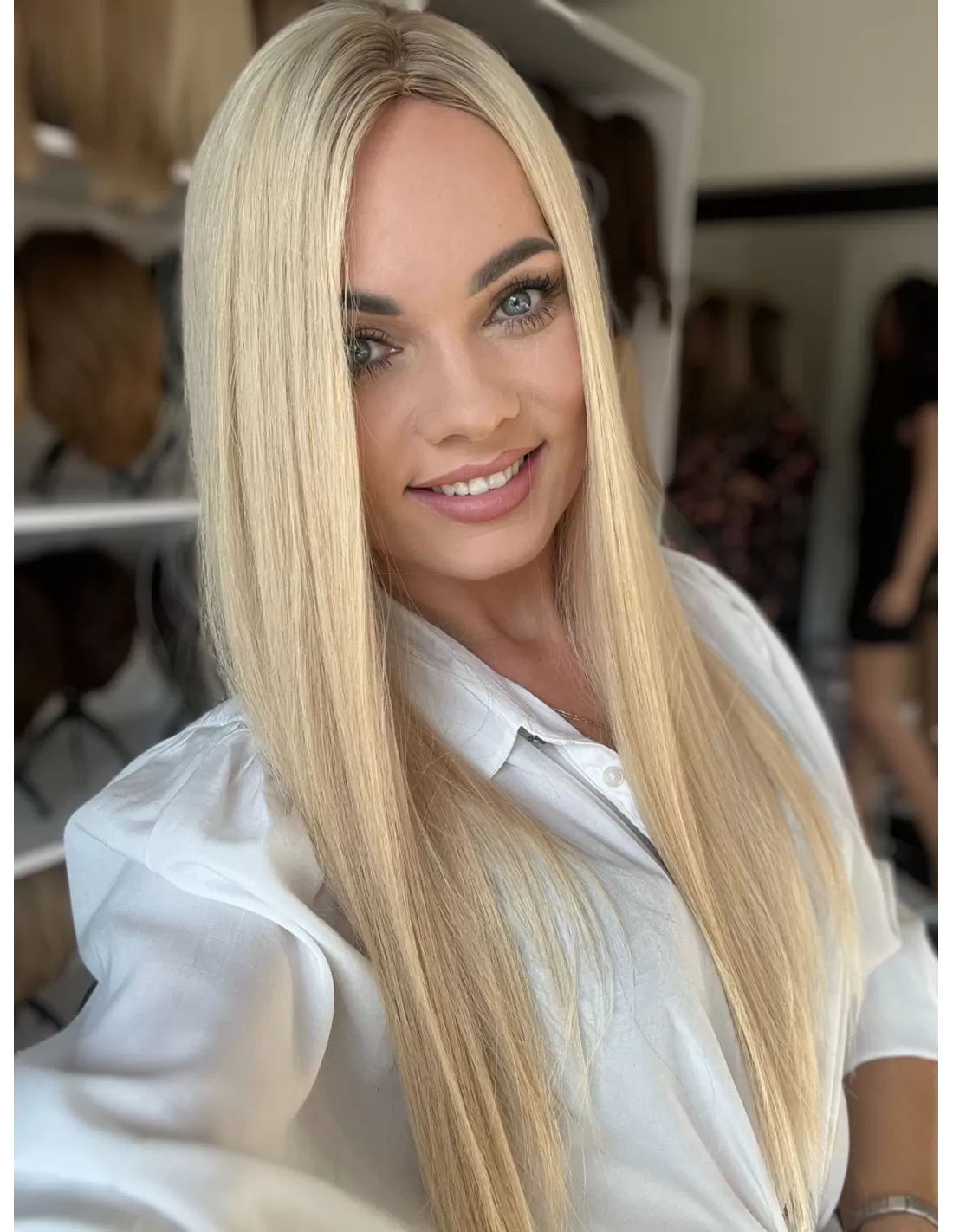 Najwyższa Jakość Włosów Naturalnych: Topper Kejsi wykonany jest z najwyższej jakości włosów naturalnych europejskich, co gwarantuje piękny wygląd i trwałość. Włosy te są gładkie, lśniące i wyjątkowo naturalne w dotyku.