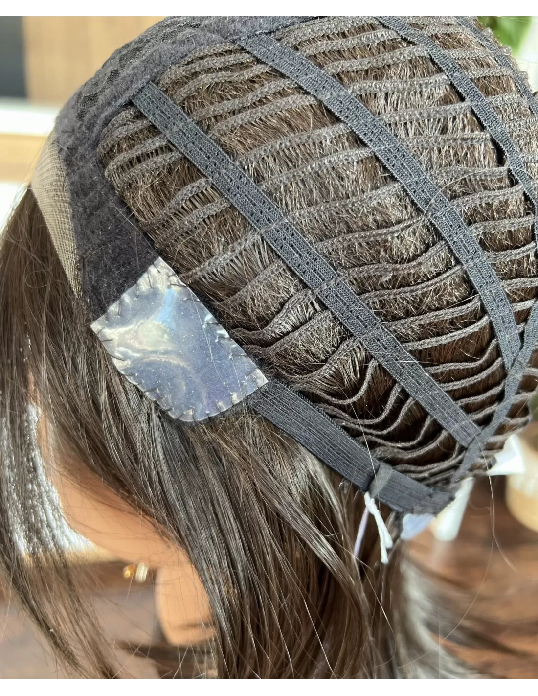 Dodatkowo peruka posiada wstawki silikonowe, które zapobiegają przemieszczaniu się peruki