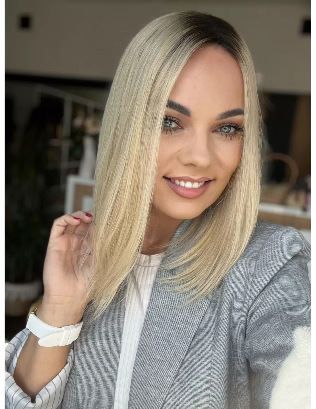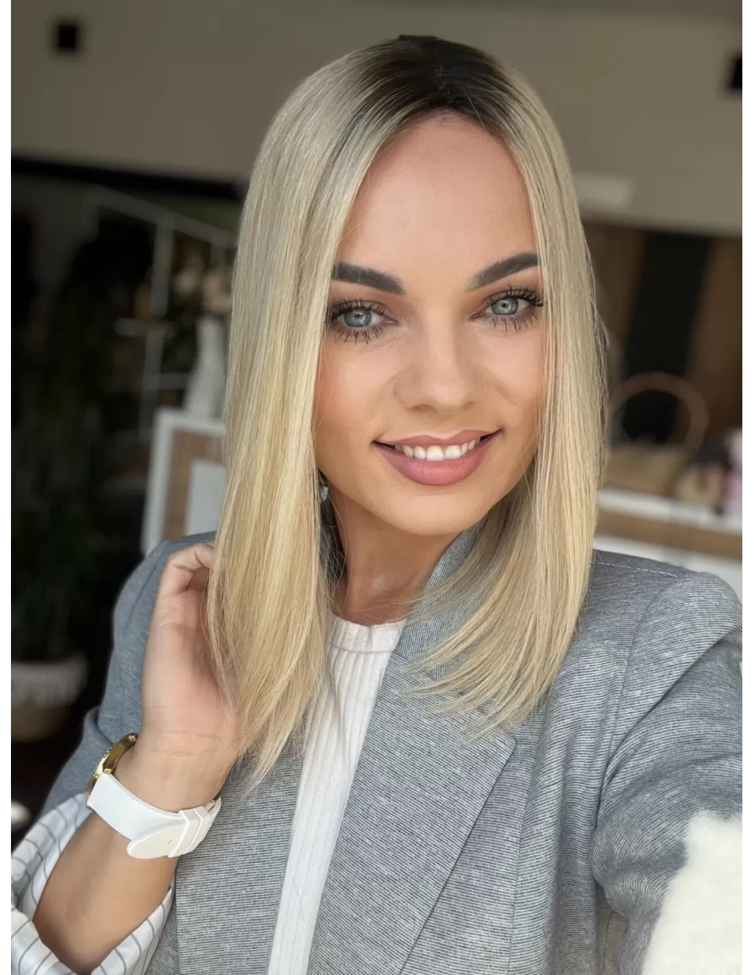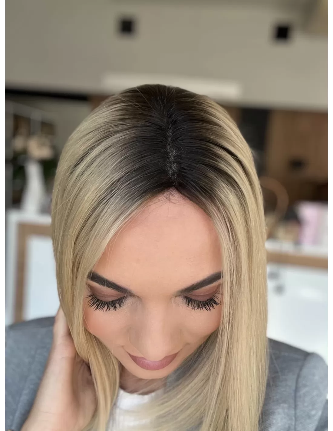 Topper "Joni35LOll" w kolorze słonecznego blondu z kontrastowym ciemnym odrostem to nasza propozycja dla Ciebie!