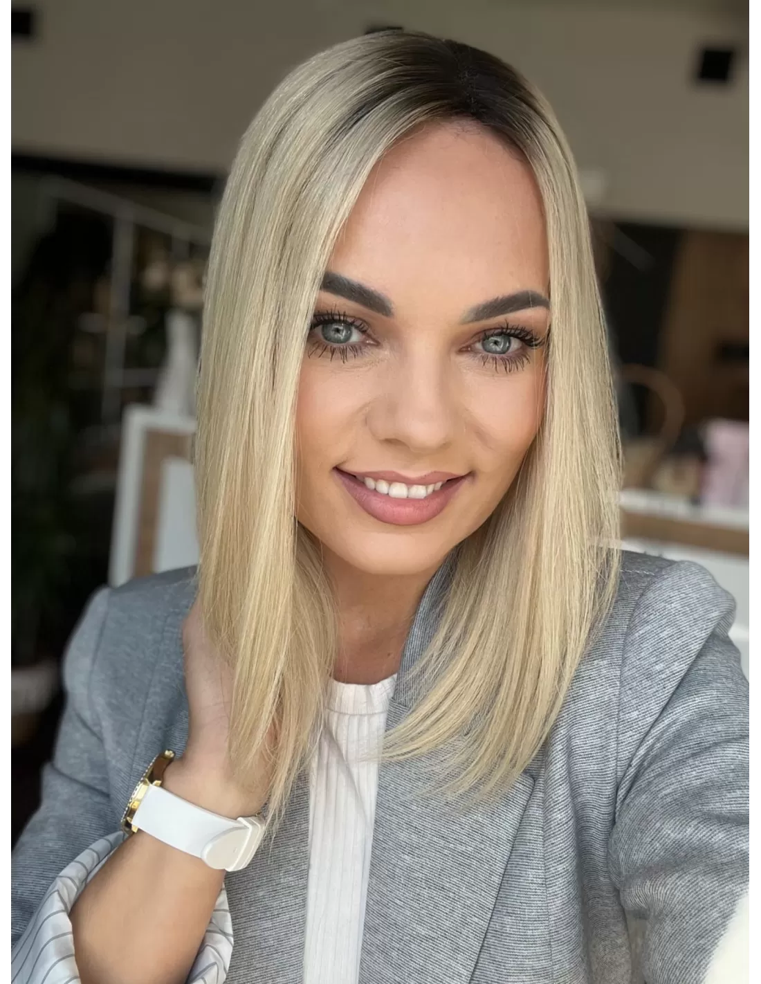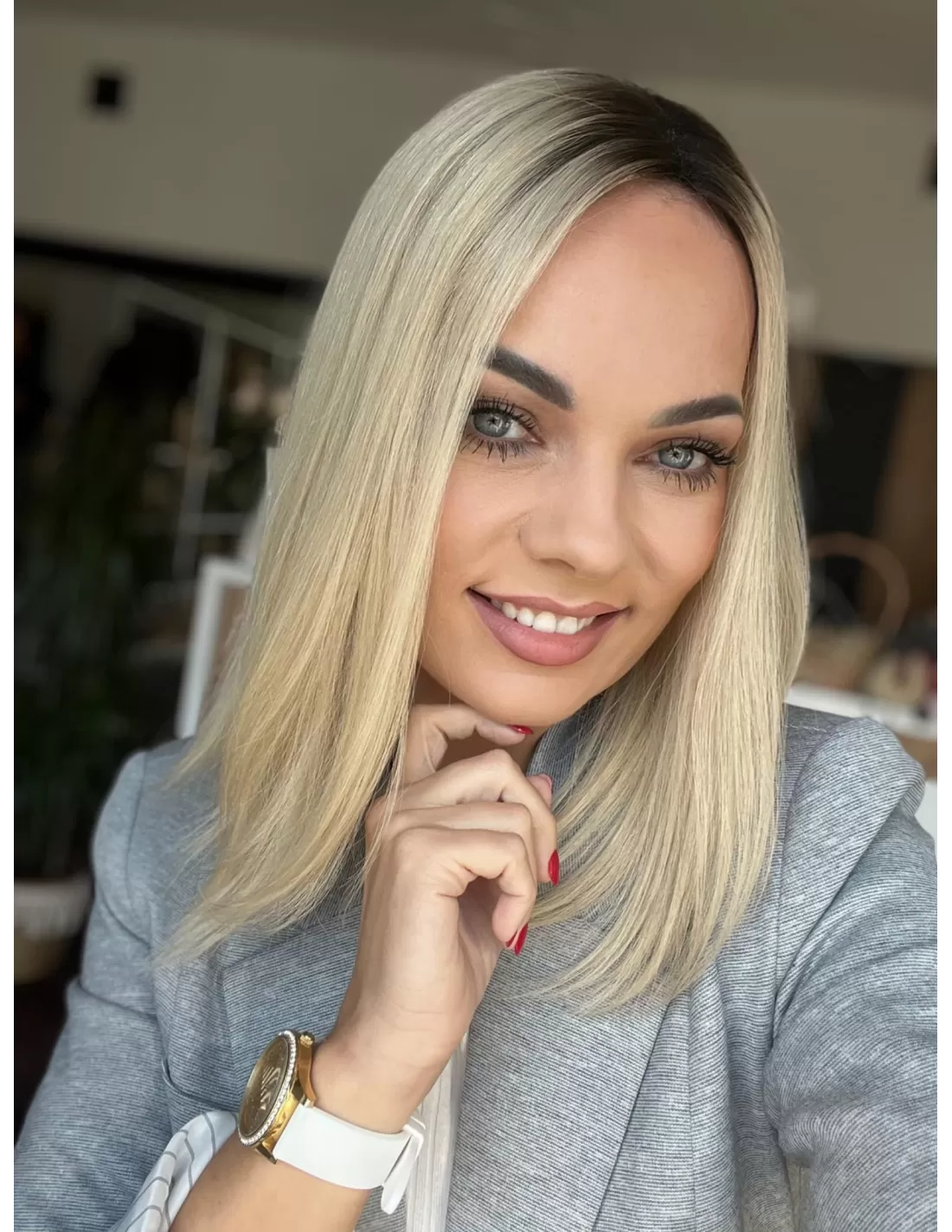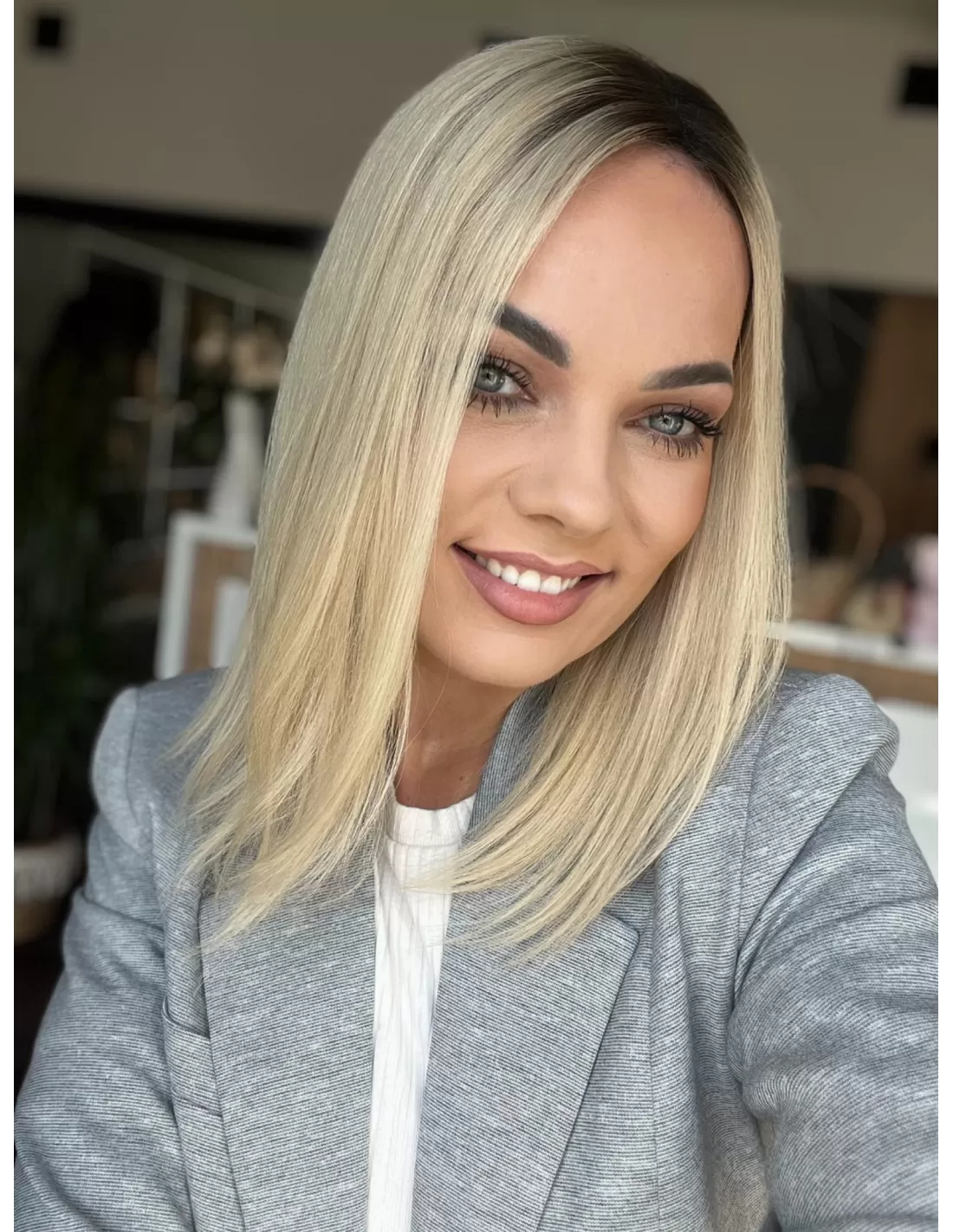 Topper "Joni35LOll" w kolorze słonecznego blondu z kontrastowym ciemnym odrostem to nasza propozycja dla Ciebie!