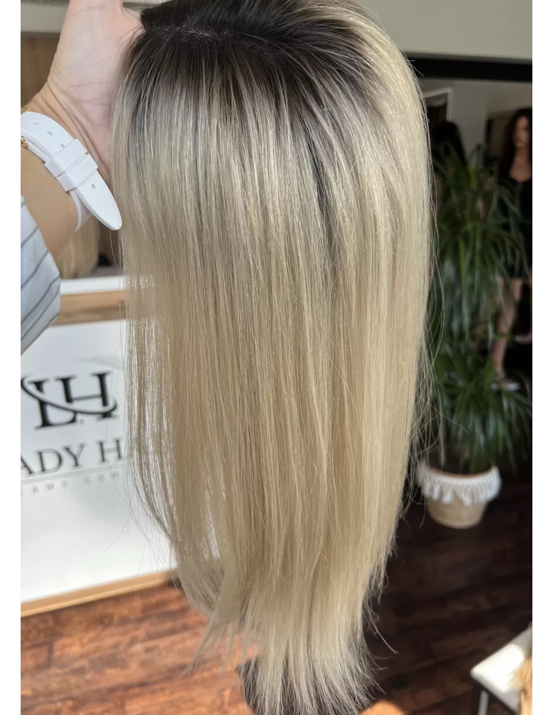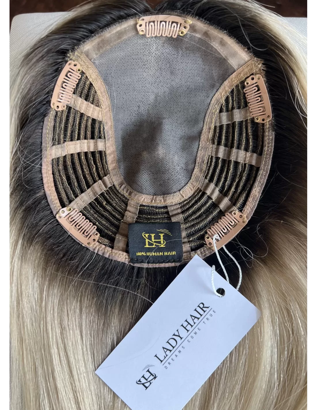 Konstrukcja bazująca na mono: Topper ten wyposażony jest w bazę mono, co oznacza, że włosy są ręcznie tkane do delikatnej siateczki, co zapewnia doskonałe naturalne wykończenie. Mono baza jest niezwykle delikatna dla skóry głowy i zapewnia efekt "scalp-like", co sprawia, że topper jest trudny do odróżnienia od własnych włosów.