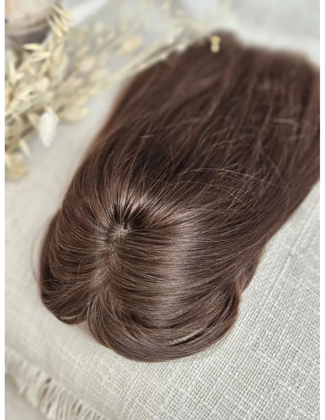 Lady HairTopper Alice wykonany został z najwyższej jakości naturalnych włosów słowiańskich o naturalnym średnim odcieniu brązu. Dzięki temu, nie tylko struktura włosów, ale także kolor są absolutnie zgodne z naturalnym wyglądem. To oznacza, że możesz cieszyć się piękną fryzurą, która jest w pełni spersonalizowana do twojego stylu i koloru włosów. Naturalny średni brąz to odcień, który sprawia, że topper wygląda niezwykle autentycznie, a jednocześnie nadaje ci pewność siebie, wiedząc, że twoja fryzura zawsze prezentuje się doskonale.
