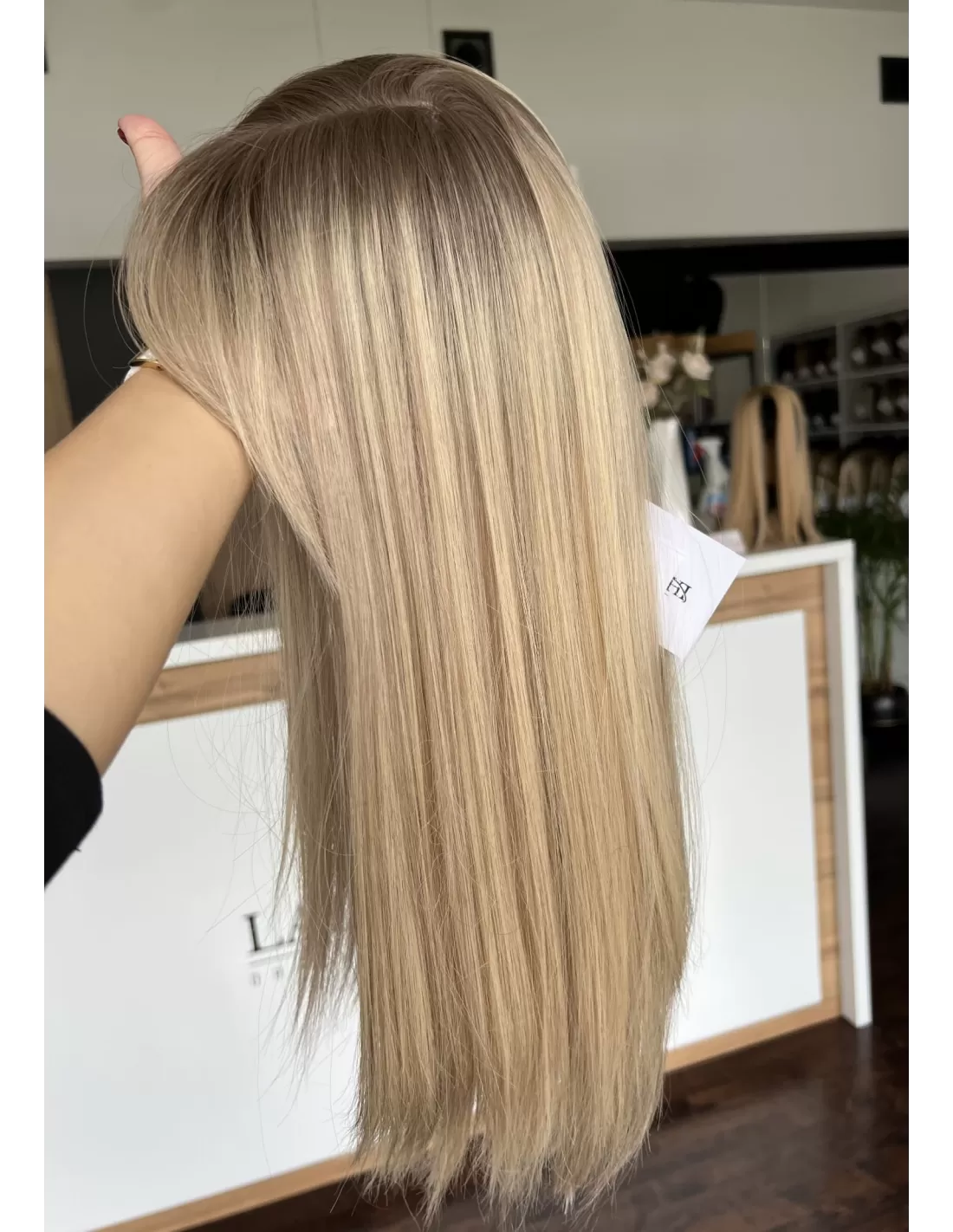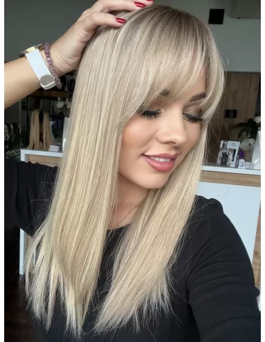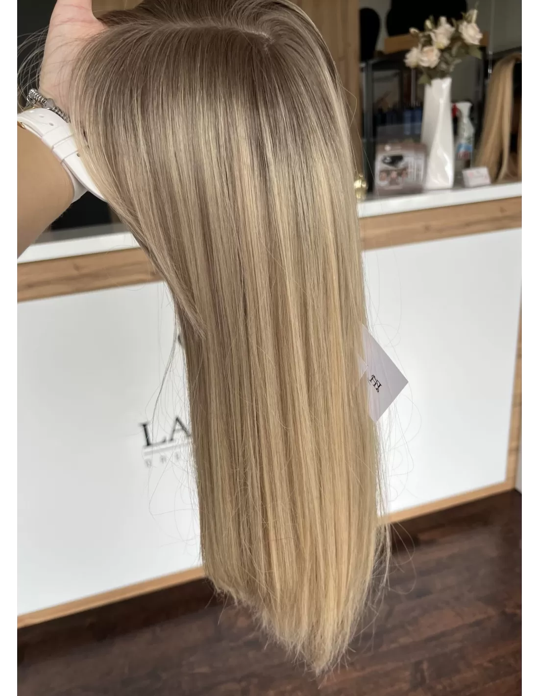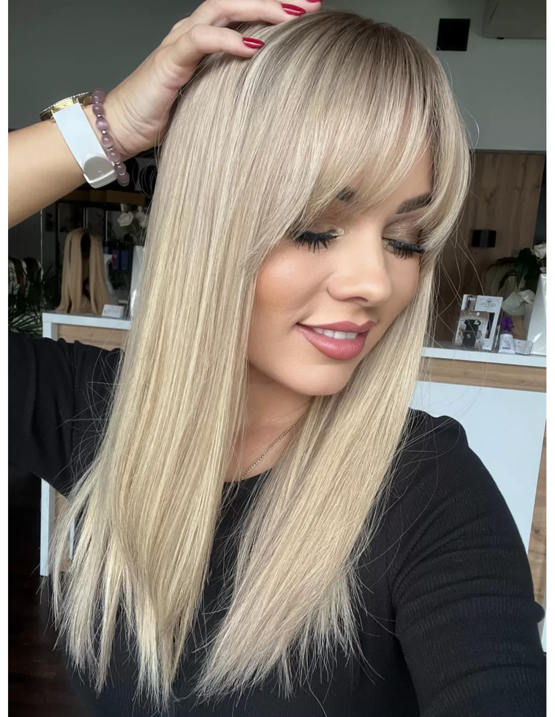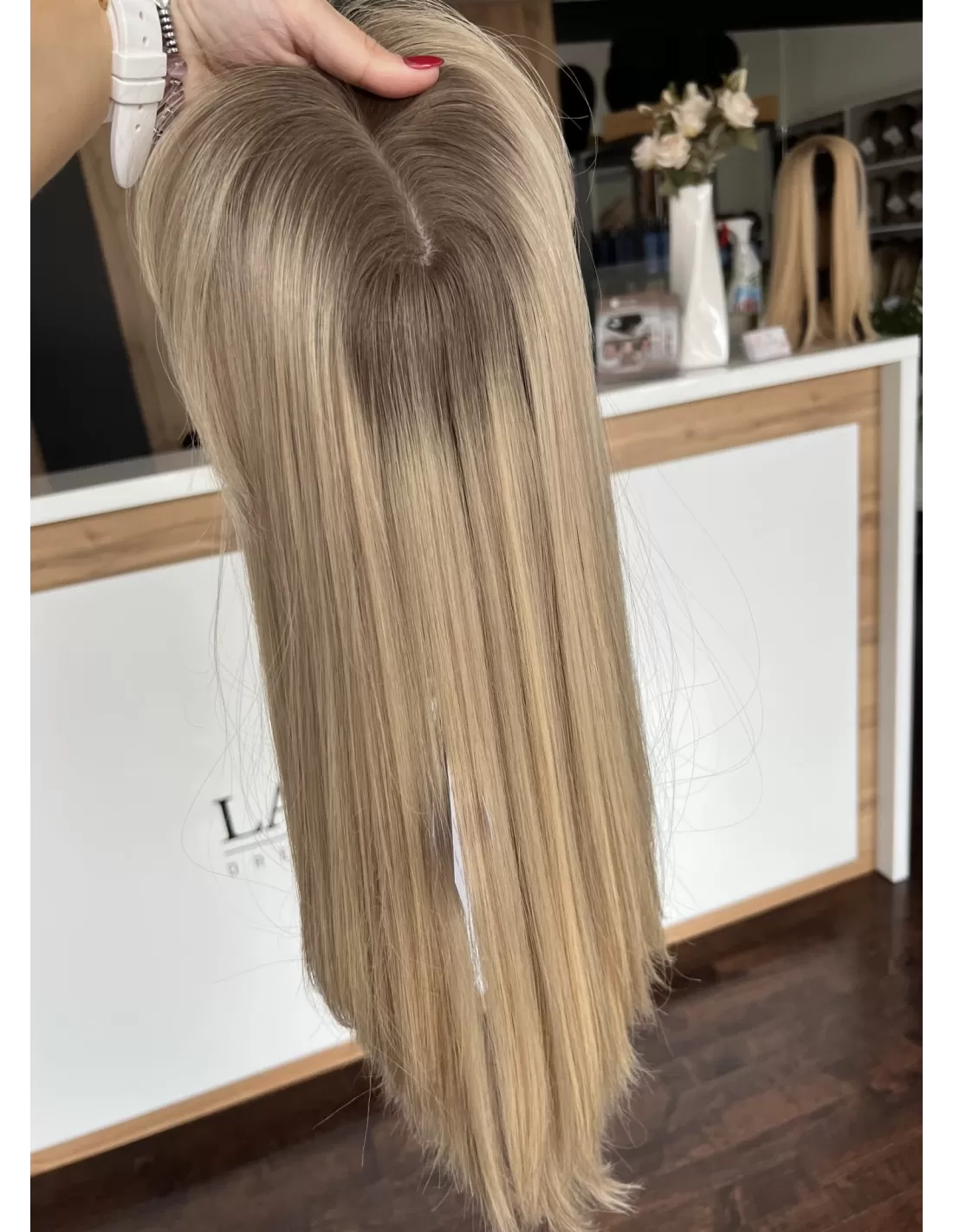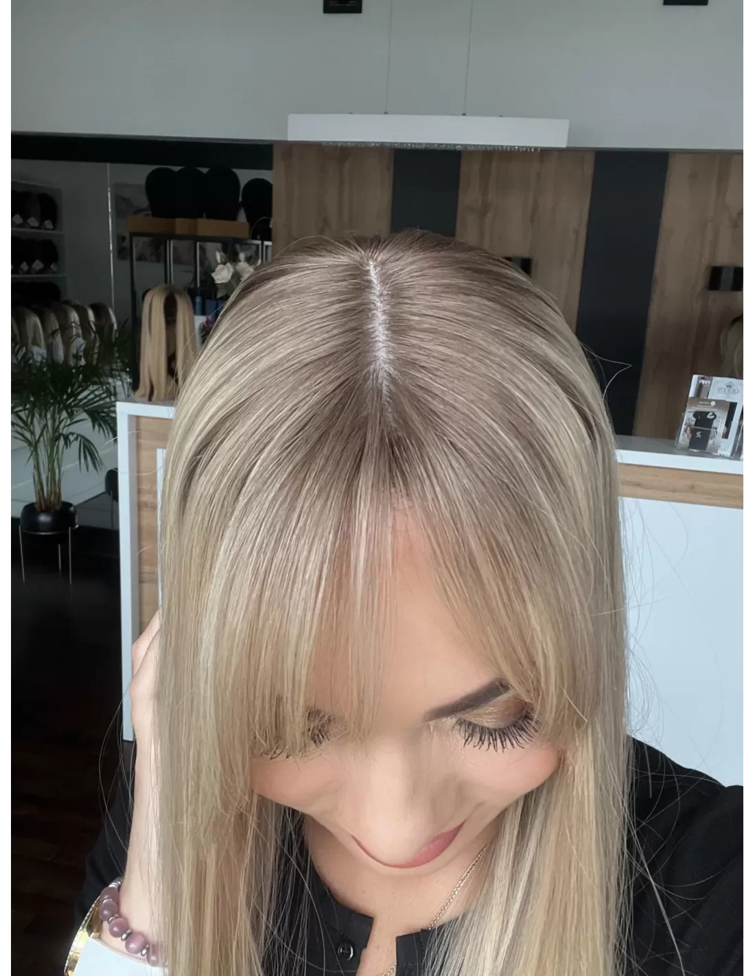 Przedstawiamy wyjątkowy topper, który nie tylko podkreśli Twoją urodę, ale także dostarczy niezapomnianych doświadczeń stylizacyjnych. Wykonany został z najwyższej jakości włosów naturalnych europejskich. Topper Ania w odcieniach pastelowego baleyage blond z odrostem w chłodnym odcieniu średniego blondu to prawdziwa perełka w świecie fryzur.