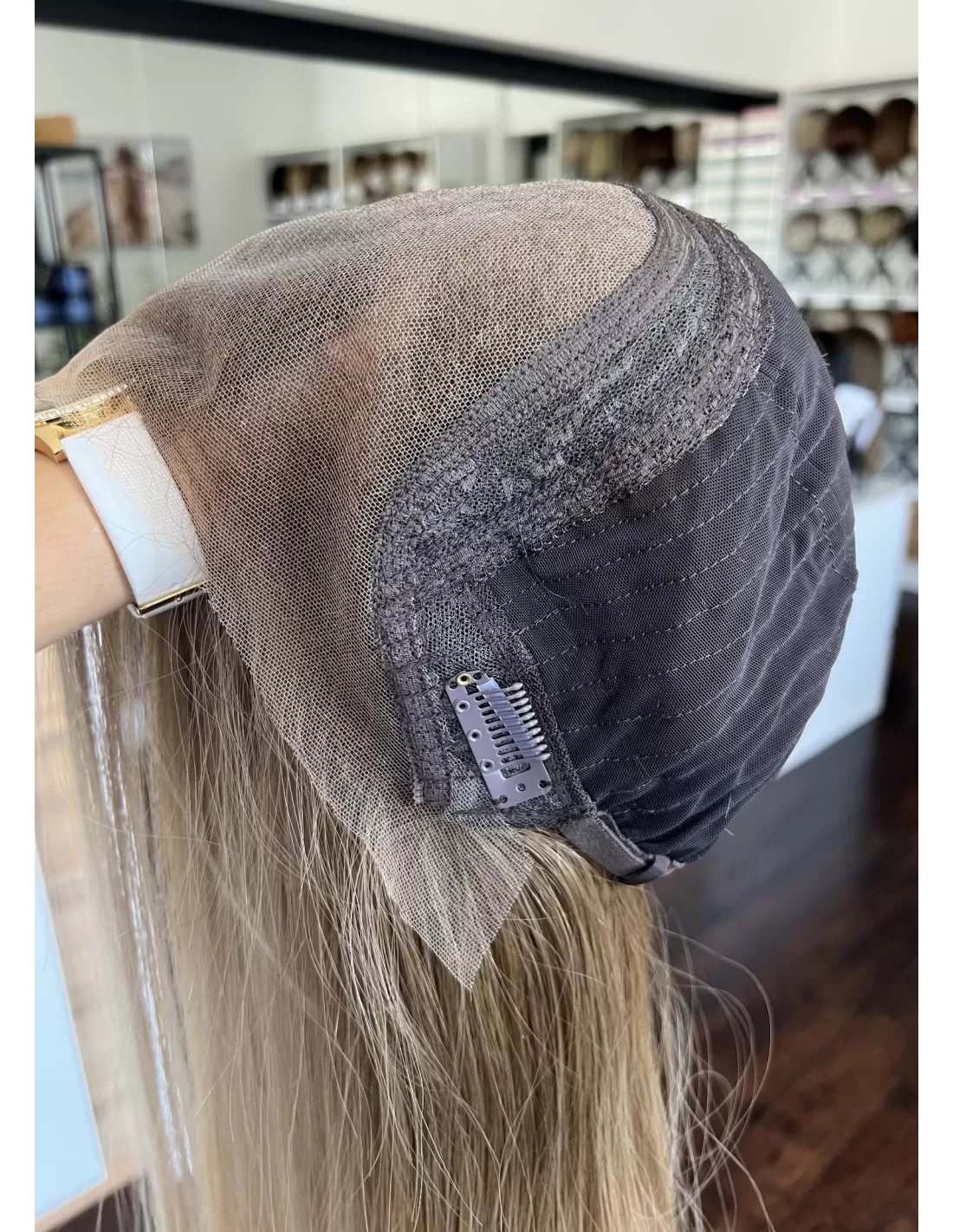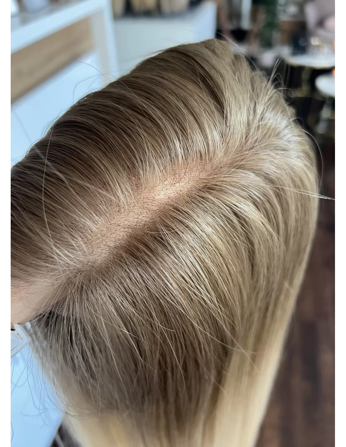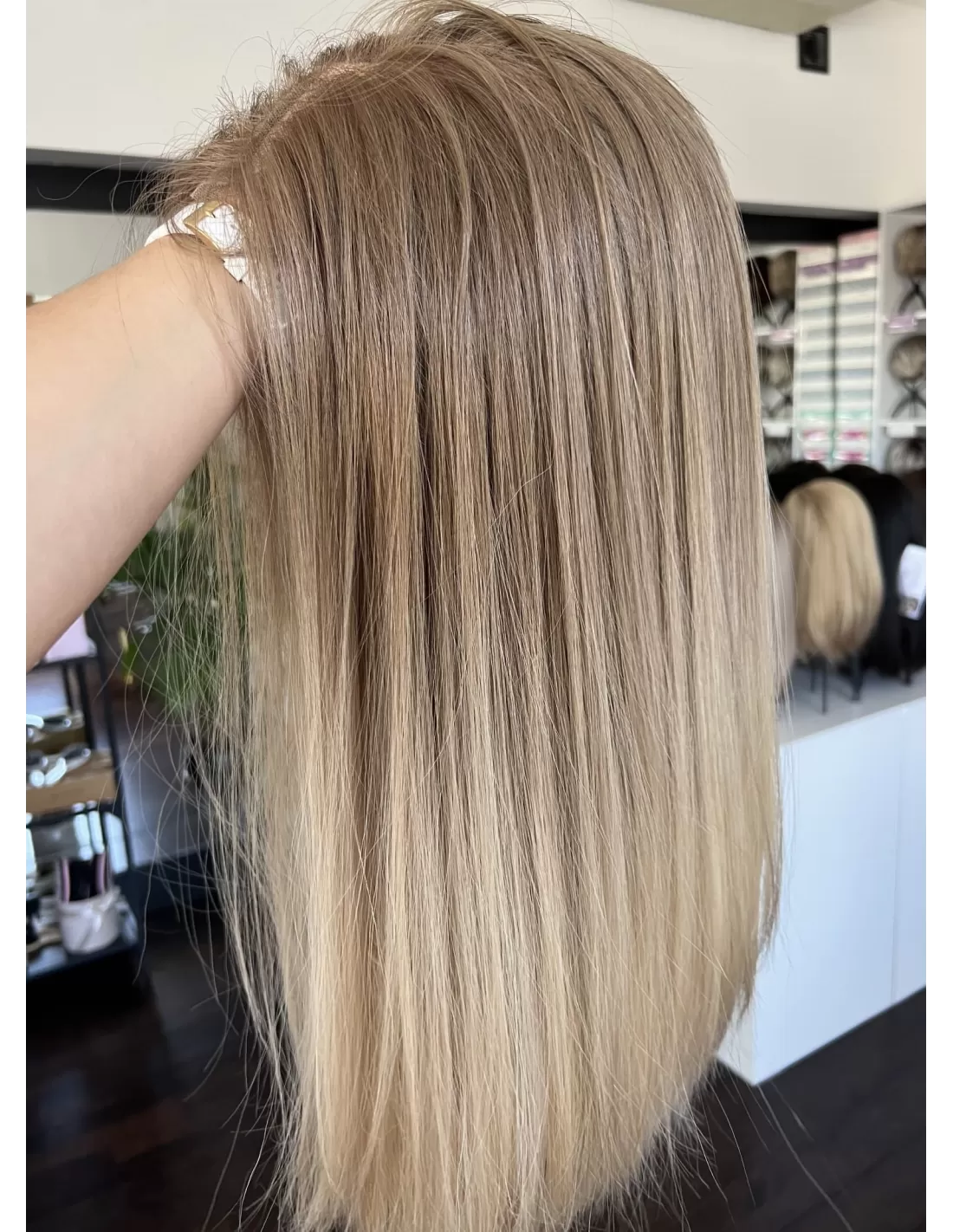 Najważniejszym atutem peruki Beti jest jej kolor. To delikatne ombre, które prezentuje się wyjątkowo subtelnie i stylowo. U nasady peruki znajduje się średni blond w chłodnym odcieniu, który stopniowo przechodzi w ciepłe tony blondu po długości. Te stonowane kolory doskonale komponują się ze sobą, nadając peruce wyjątkowego uroku.