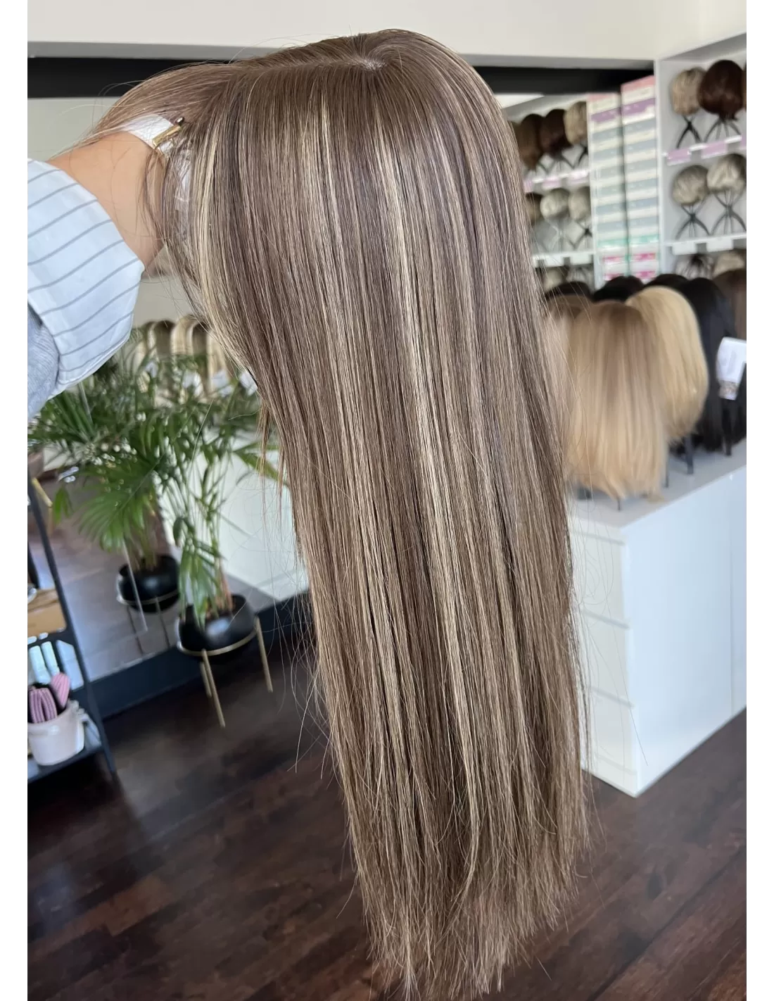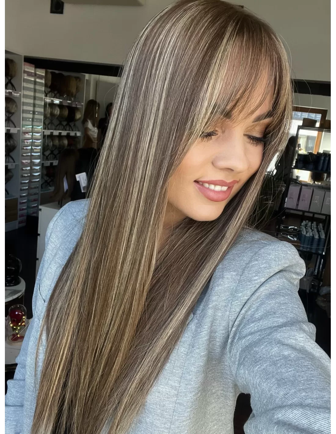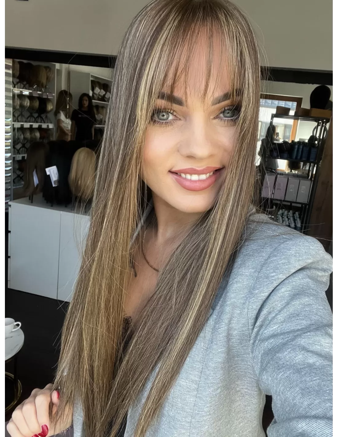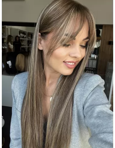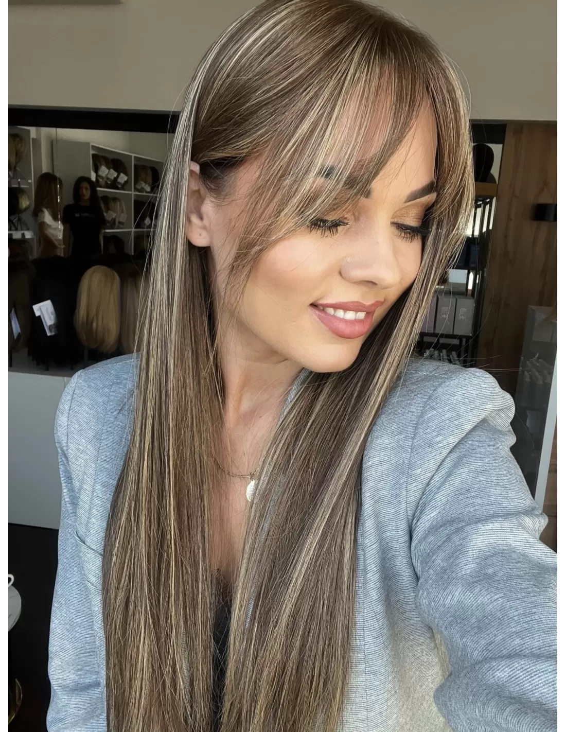 -Przedstawiamy wyjątkowy topper, który nie tylko podkreśli Twoją urodę, ale także dostarczy niezapomnianych doświadczeń stylizacyjnych. Wykonany został z najwyższej jakości włosów naturalnych europejskich. Topper Lola w kolorze baleyage blond z odrostem w chłodnym odcieniu średniego brązu to prawdziwa perełka w świecie fryzur.