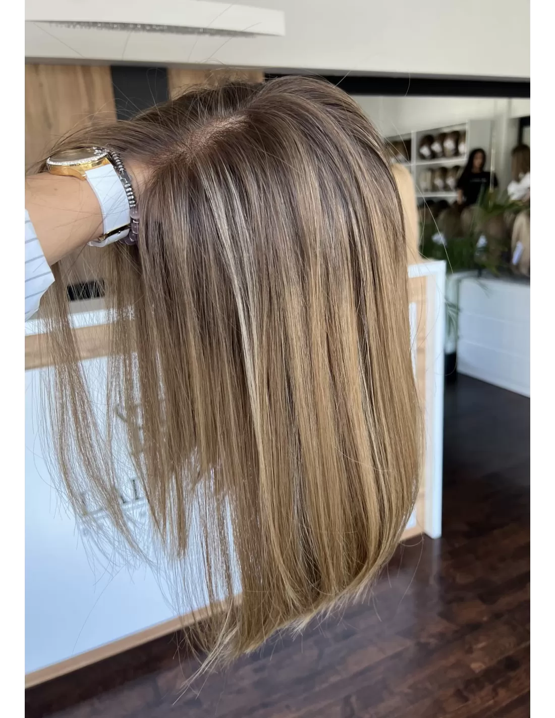 Peruka AMANDA 40 cm Przedstawiamy wyjątkową perukę Lace Front wykonaną z najwyższej jakości włosów naturalnych europejskich. Odrost w kolorze średniego brązu dodaje charakteru, tworząc subtelny kontrast. Różnorodne odcienie brązu i ciepłych odcieni blondu po długości peruki nadają jej elegancji,. To doskonały wybór dla tych, którzy pragną oryginalności i naturalności w jednym. Elastyczny czepek i możliwość regulacji zapewniają idealne dopasowanie do kształtu głowy .